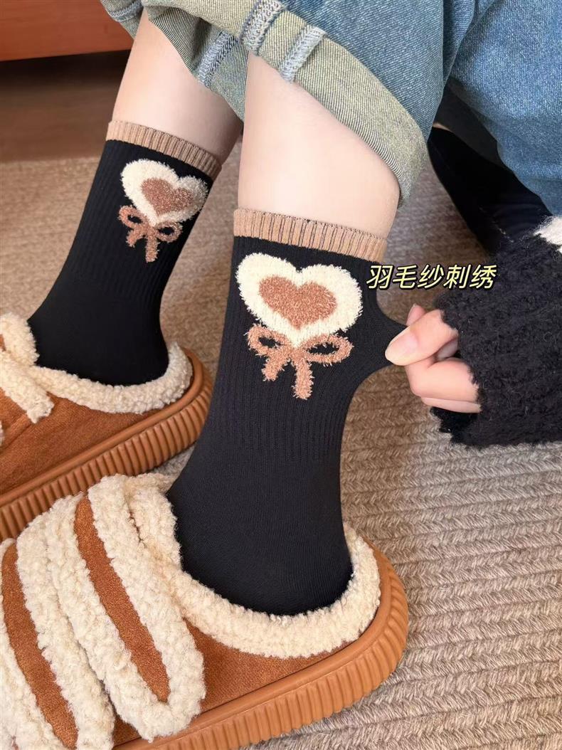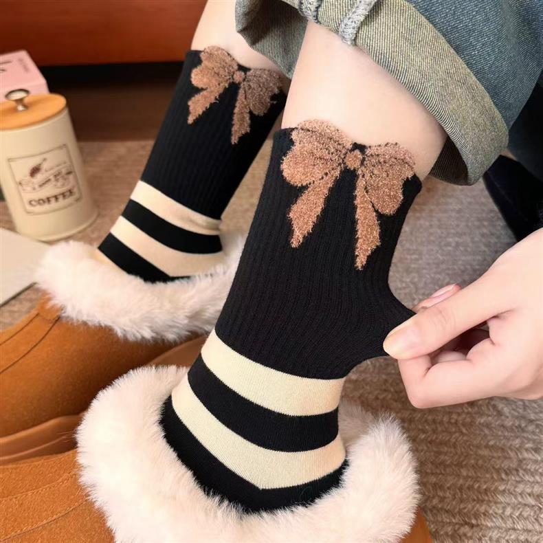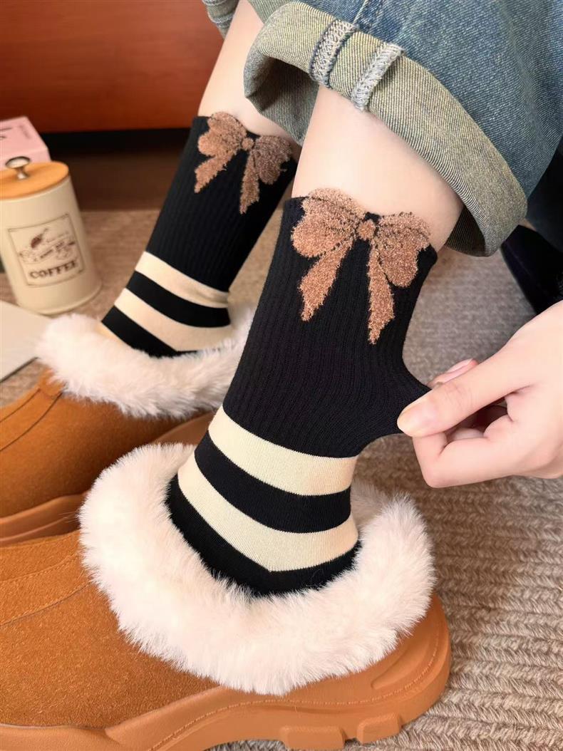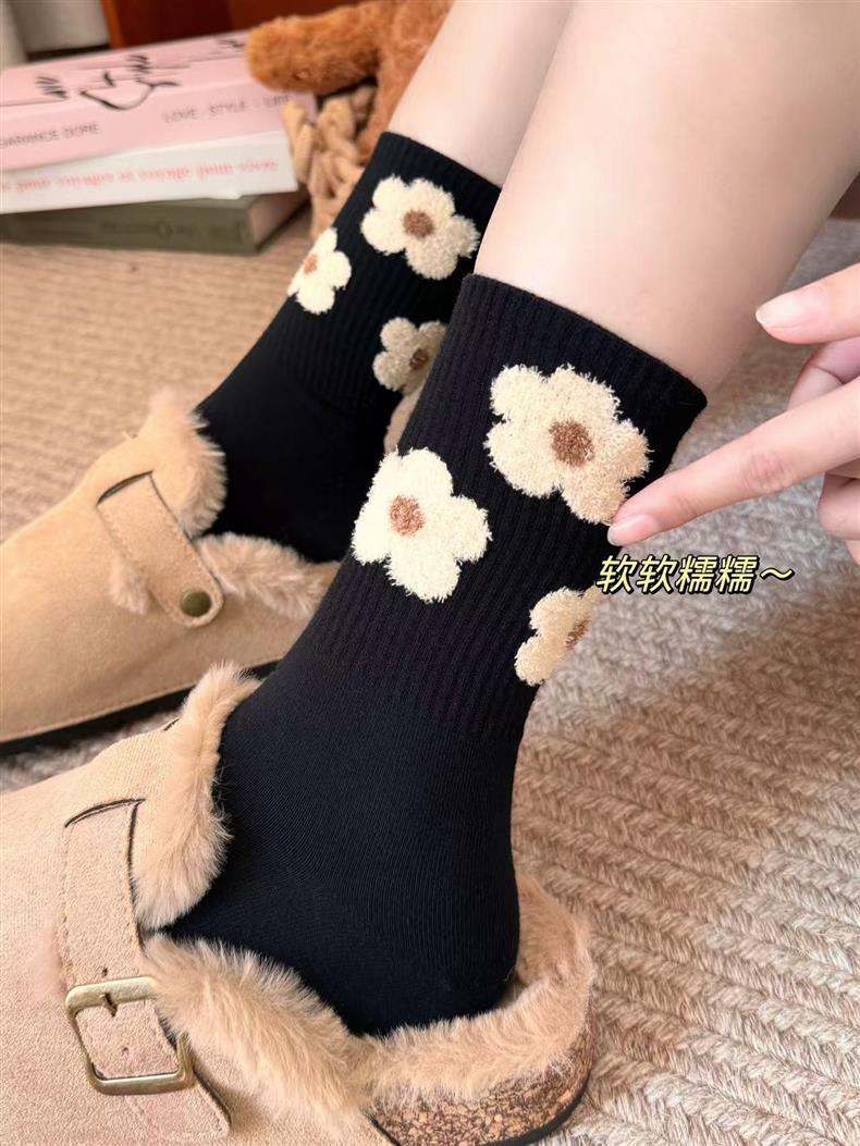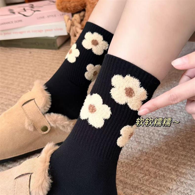 袜子女四季款可爱笑脸小花中高筒少女透气小熊美拉德条纹韩版袜子