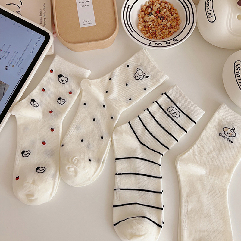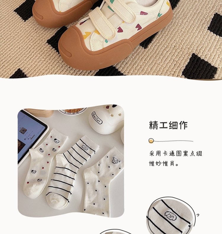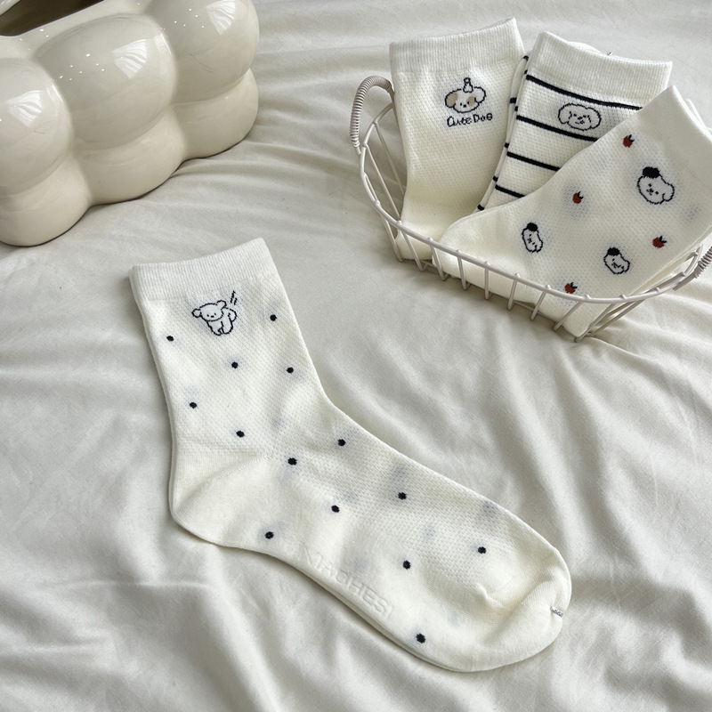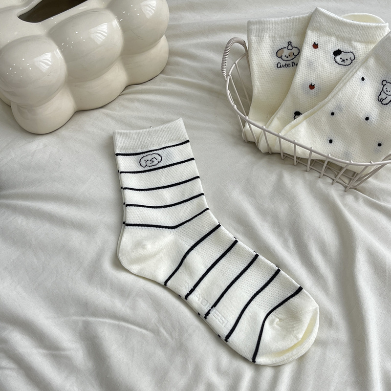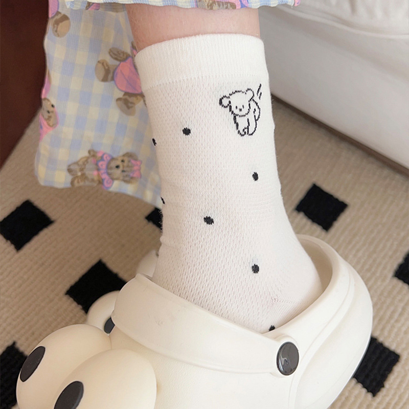白色袜子女纯棉春秋季薄款波点可爱卡通日系韩版ins潮夏天中筒袜