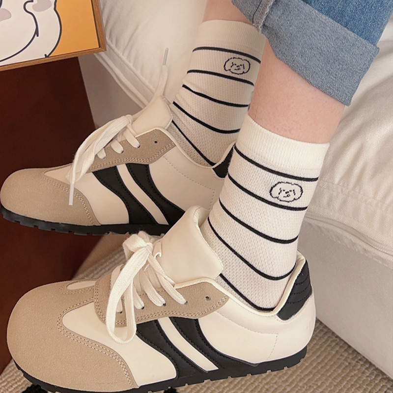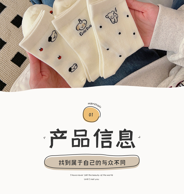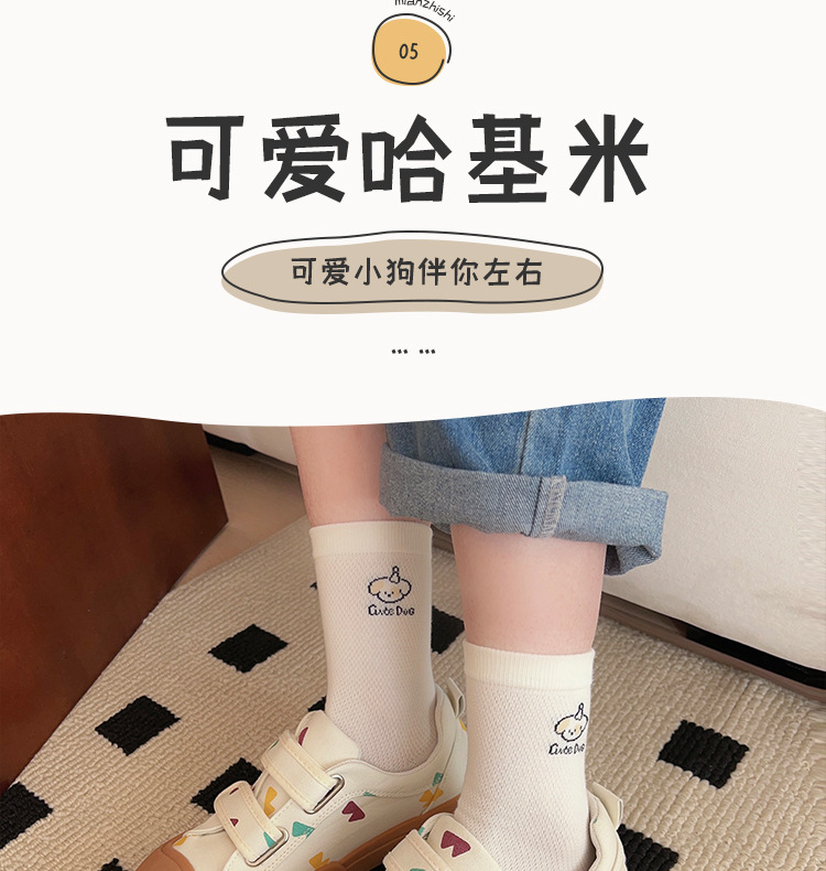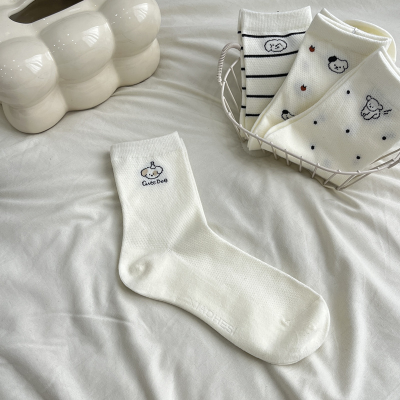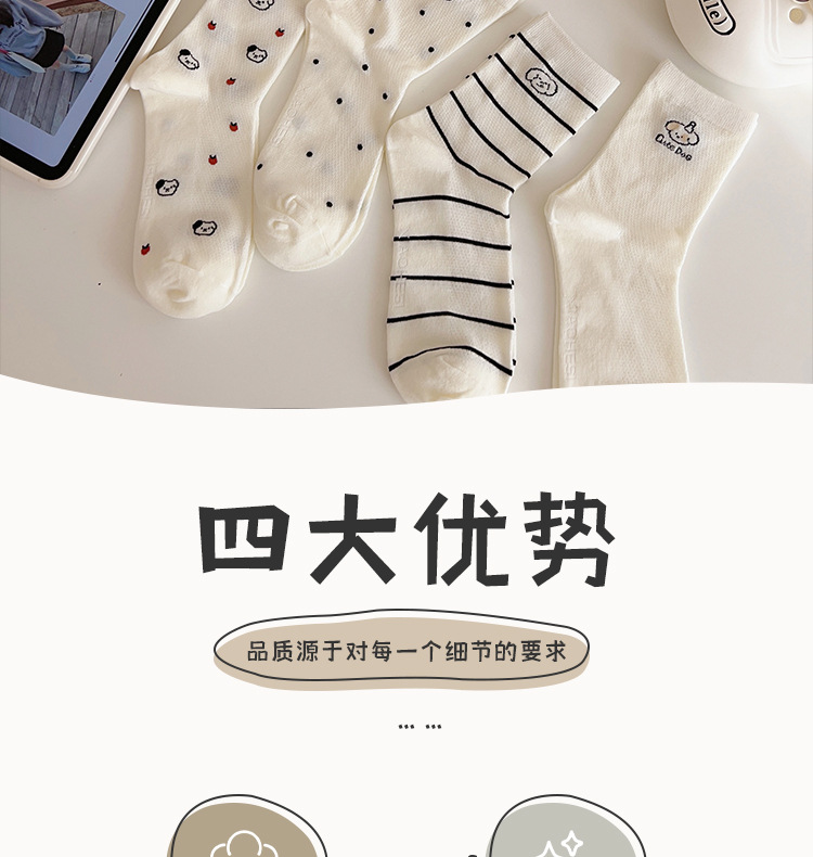 白色袜子女纯棉春秋季薄款波点可爱卡通日系韩版ins潮夏天中筒袜