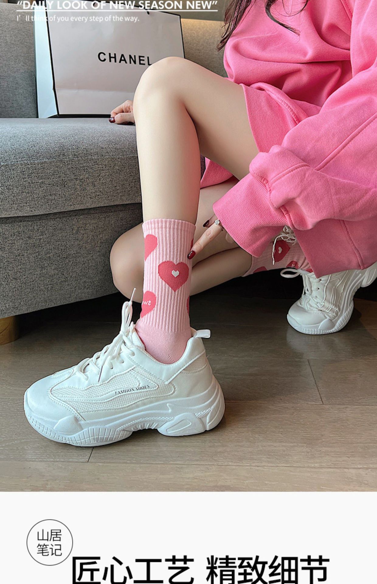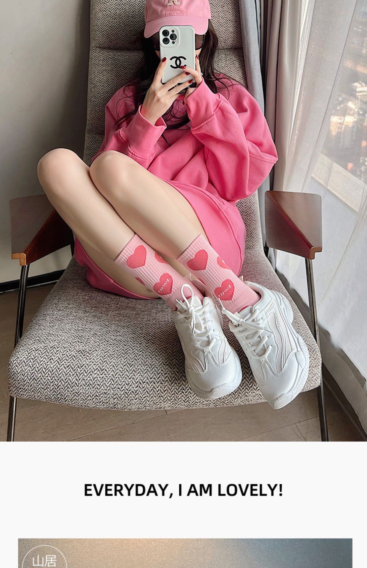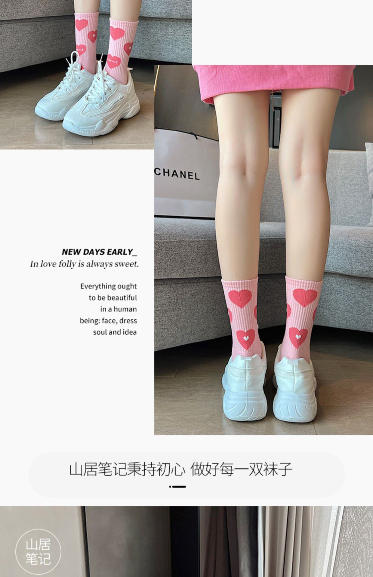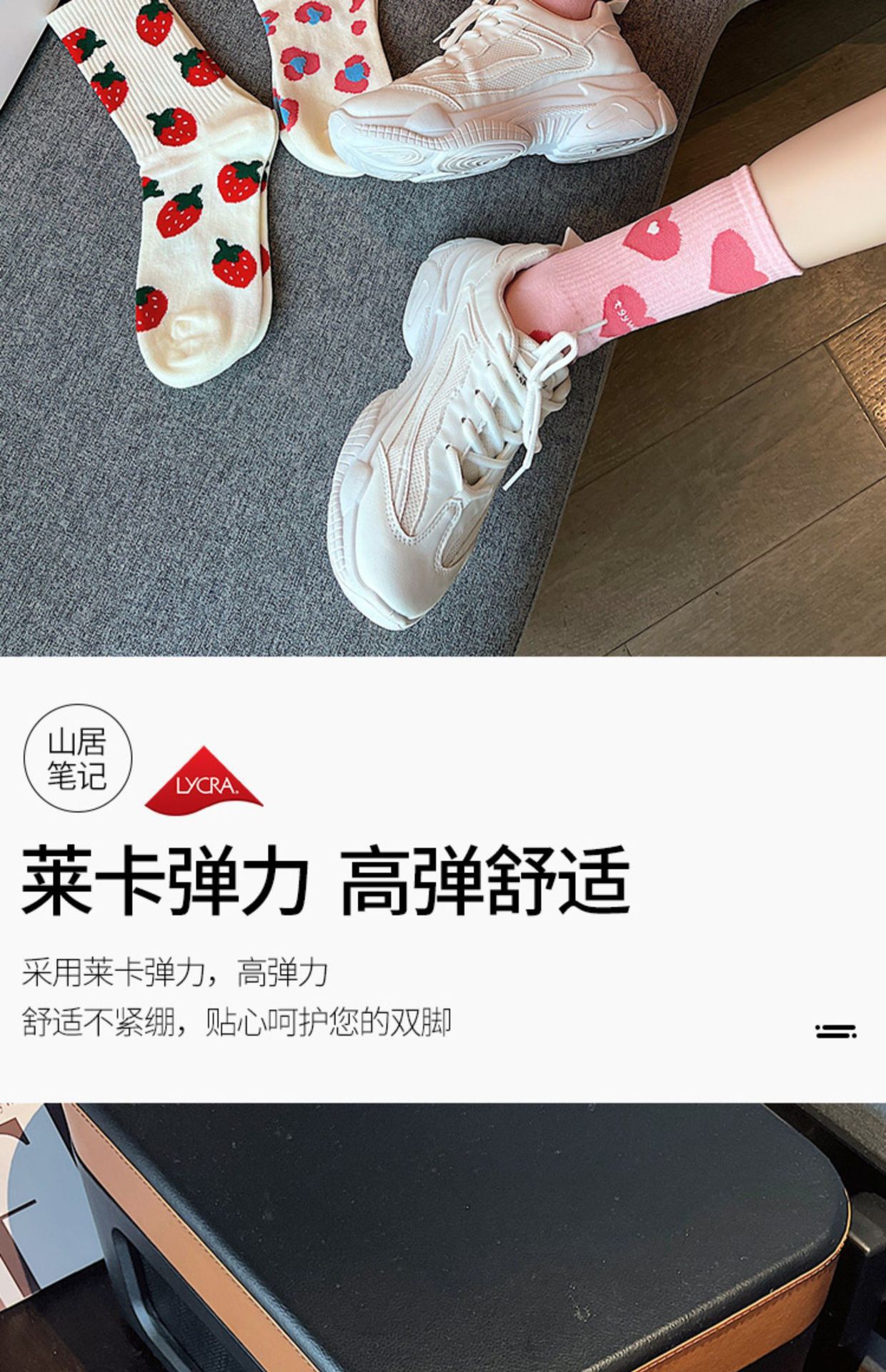 春秋款粉色字母爱心草莓袜子女时尚百搭日系可爱ins潮长袜中筒袜