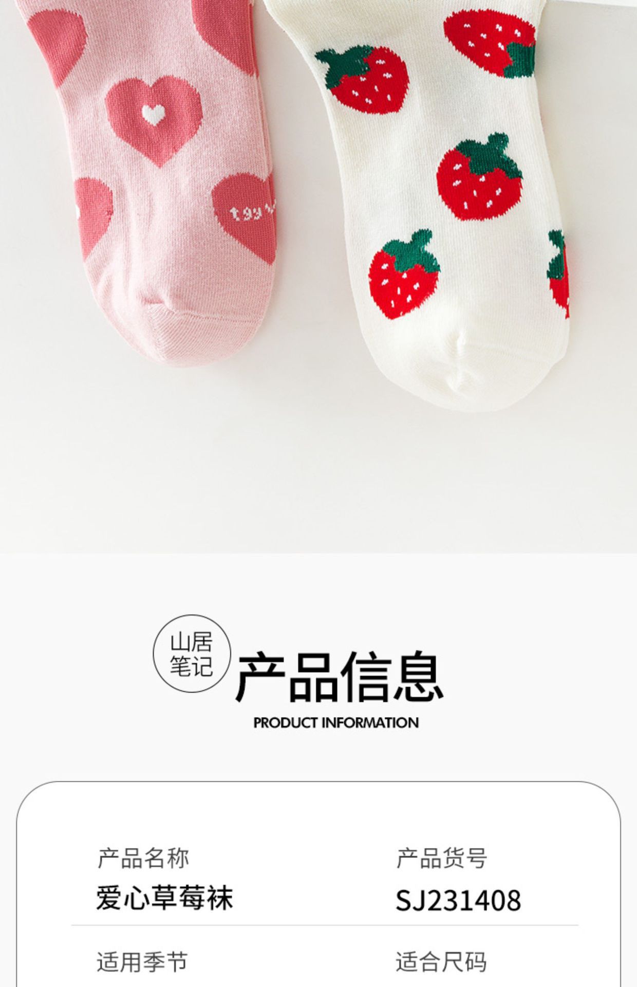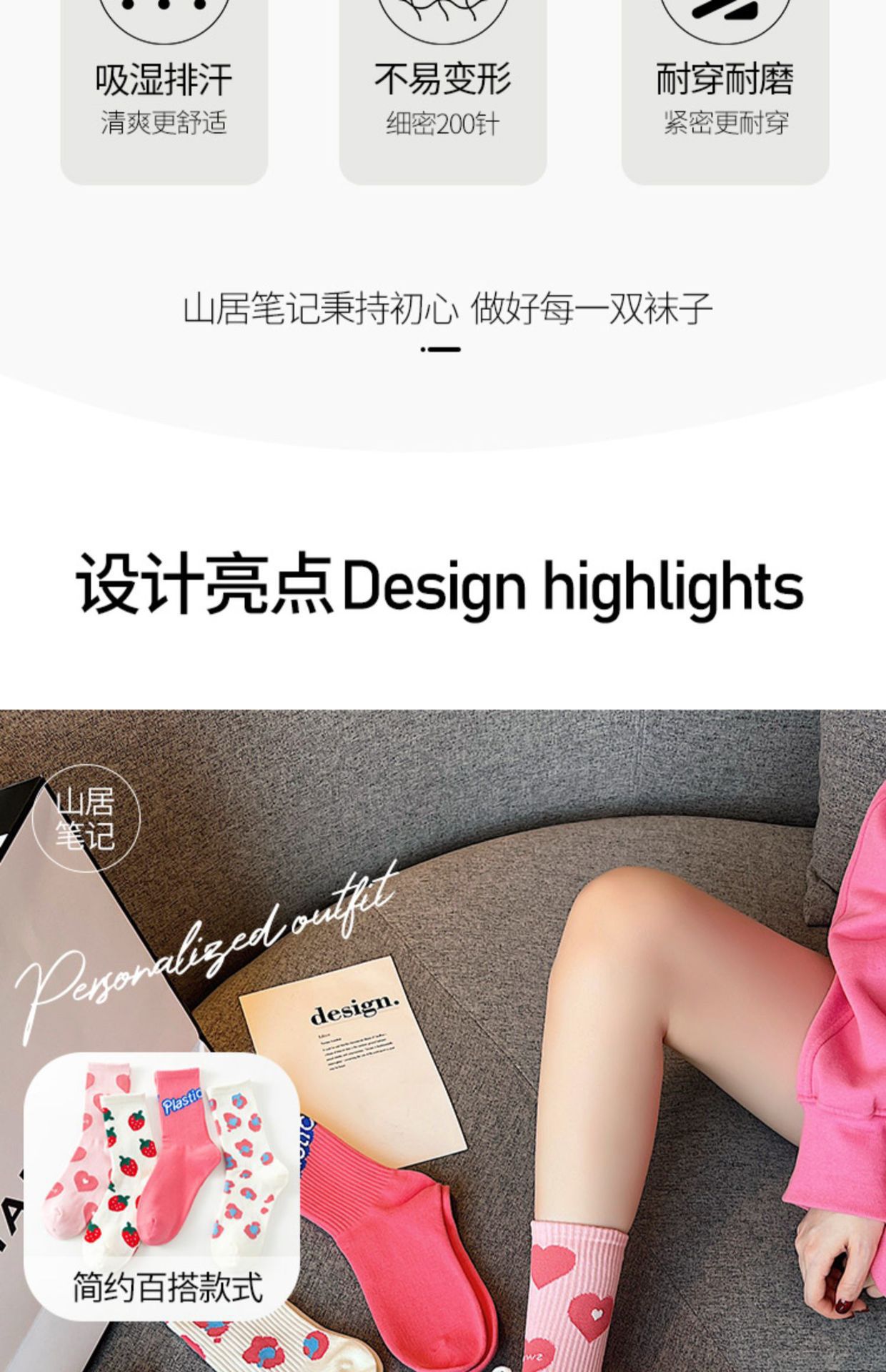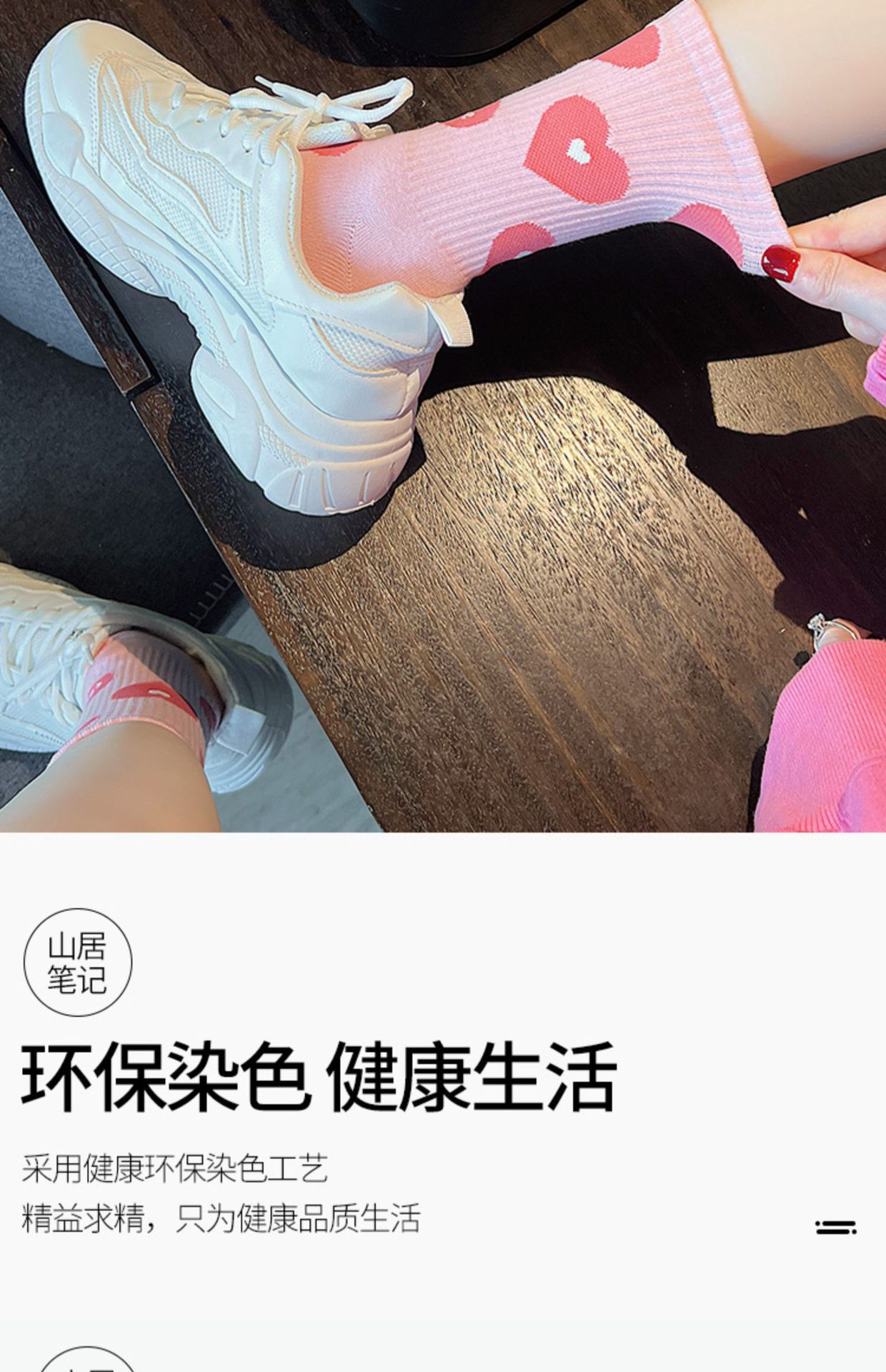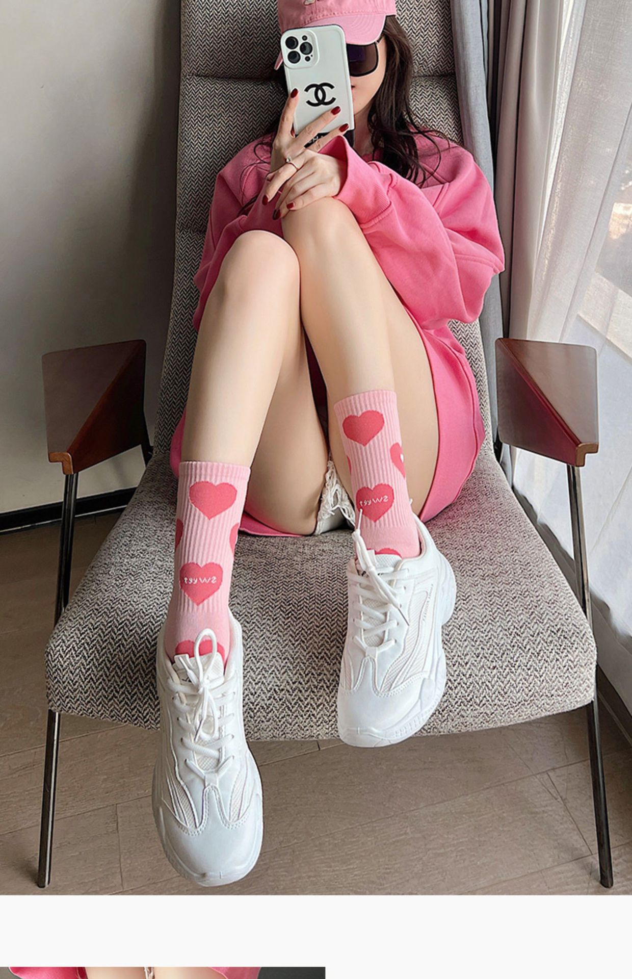 春秋款粉色字母爱心草莓袜子女时尚百搭日系可爱ins潮长袜中筒袜