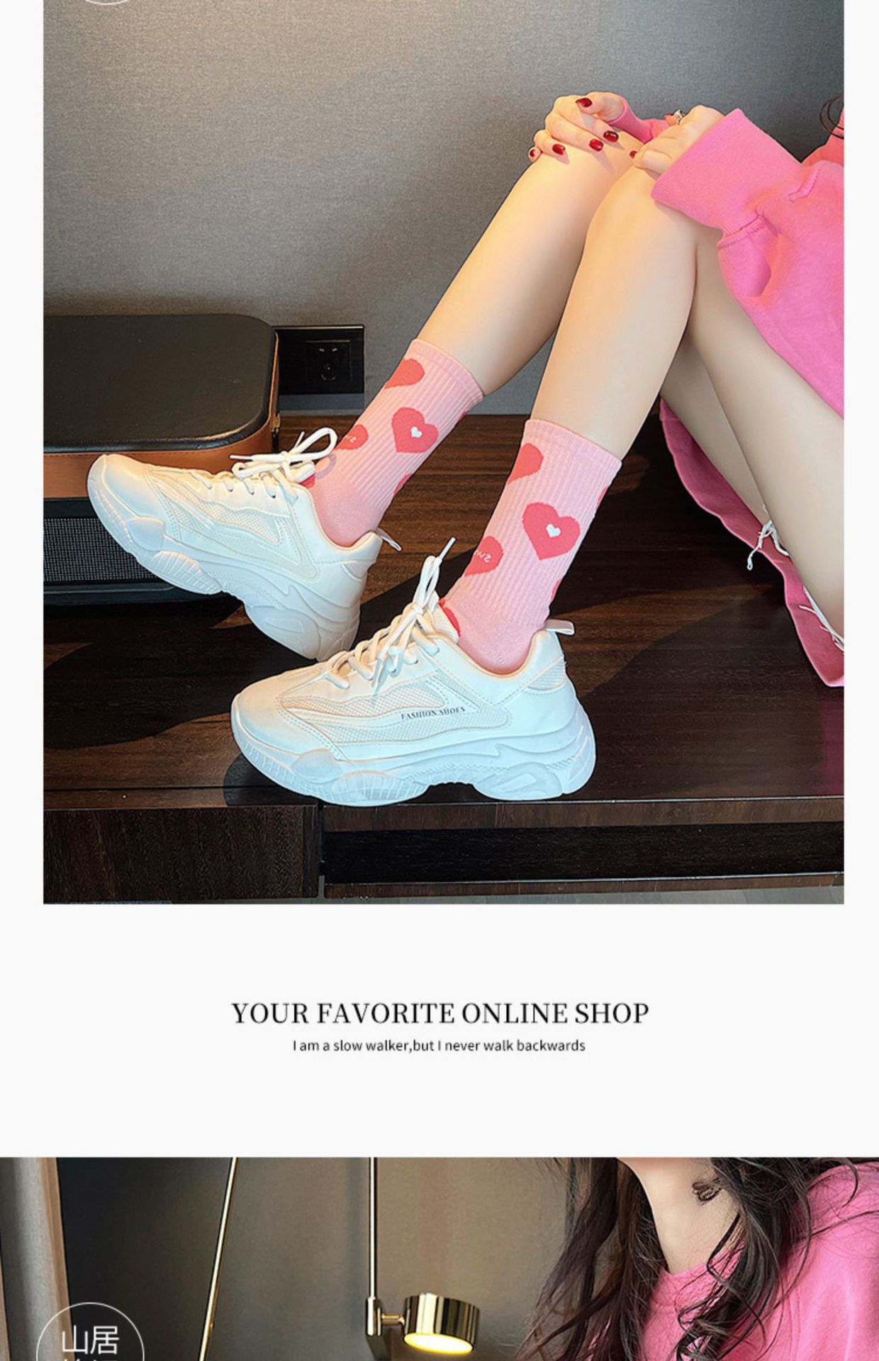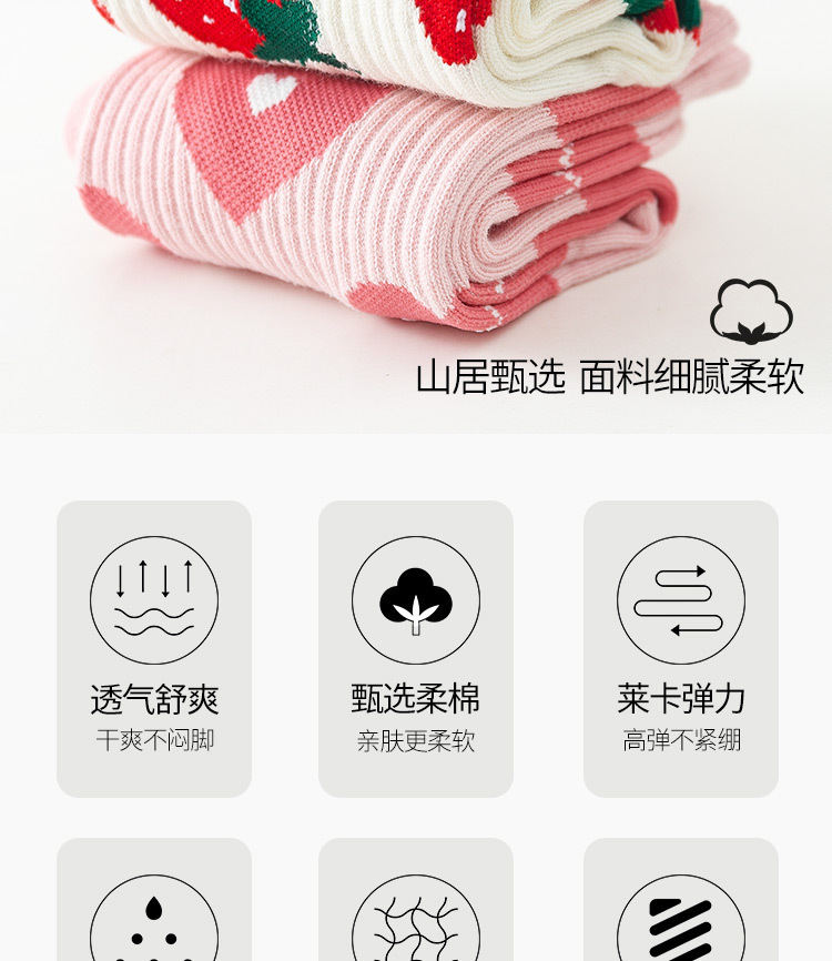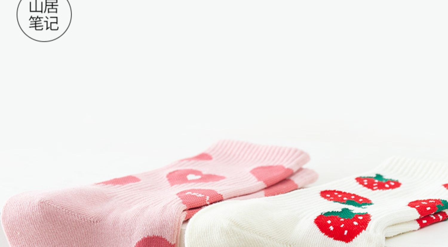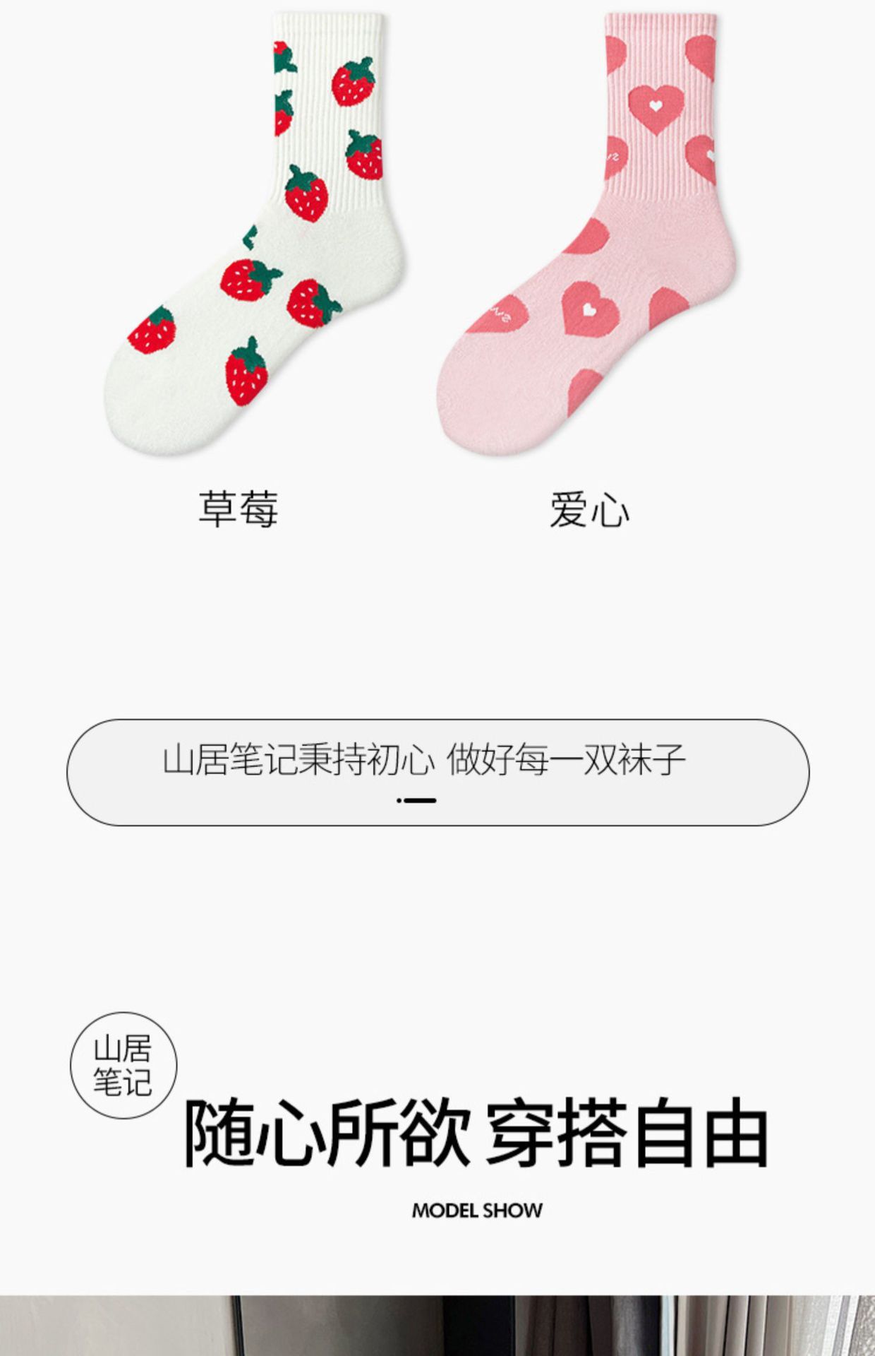 春秋款粉色字母爱心草莓袜子女时尚百搭日系可爱ins潮长袜中筒袜