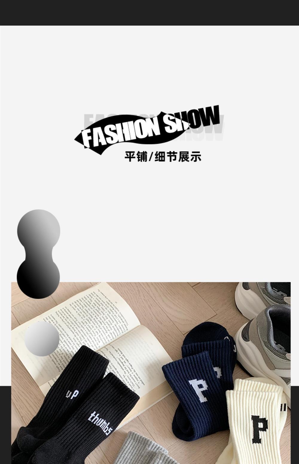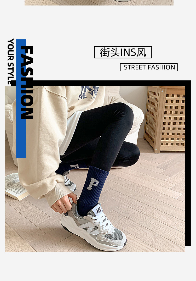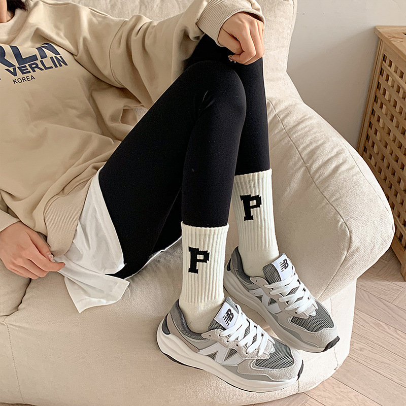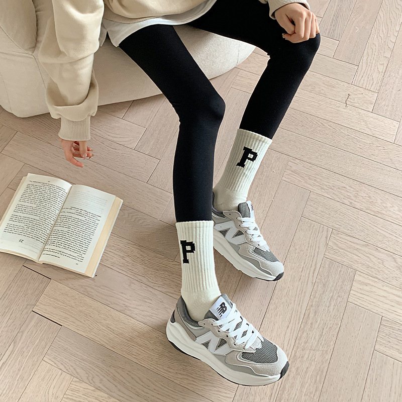 袜子女男中筒秋冬季薄厚ins潮流鲨鱼裤网红款P字母篮球运动休闲袜