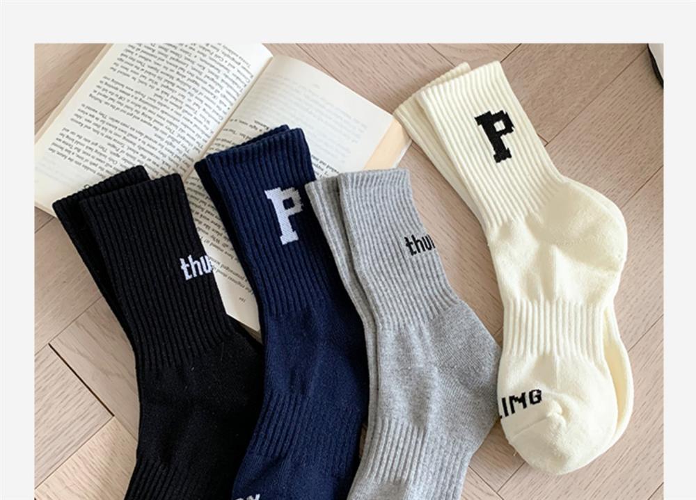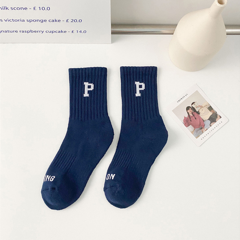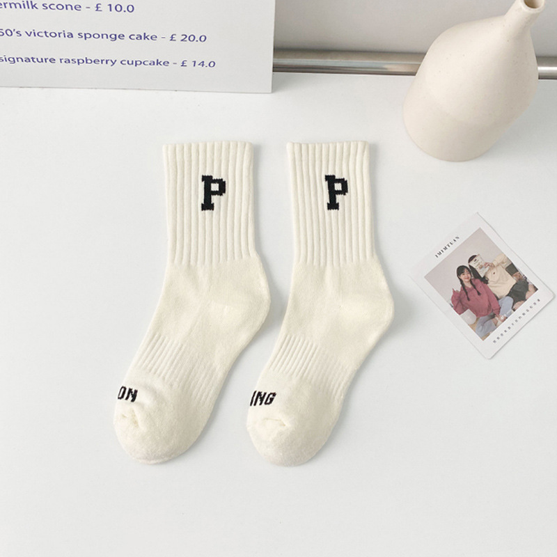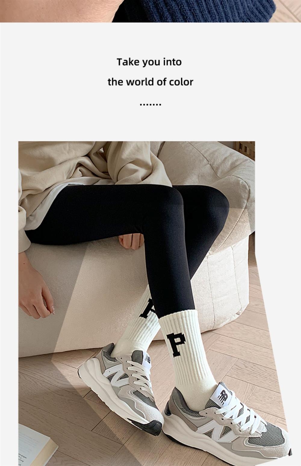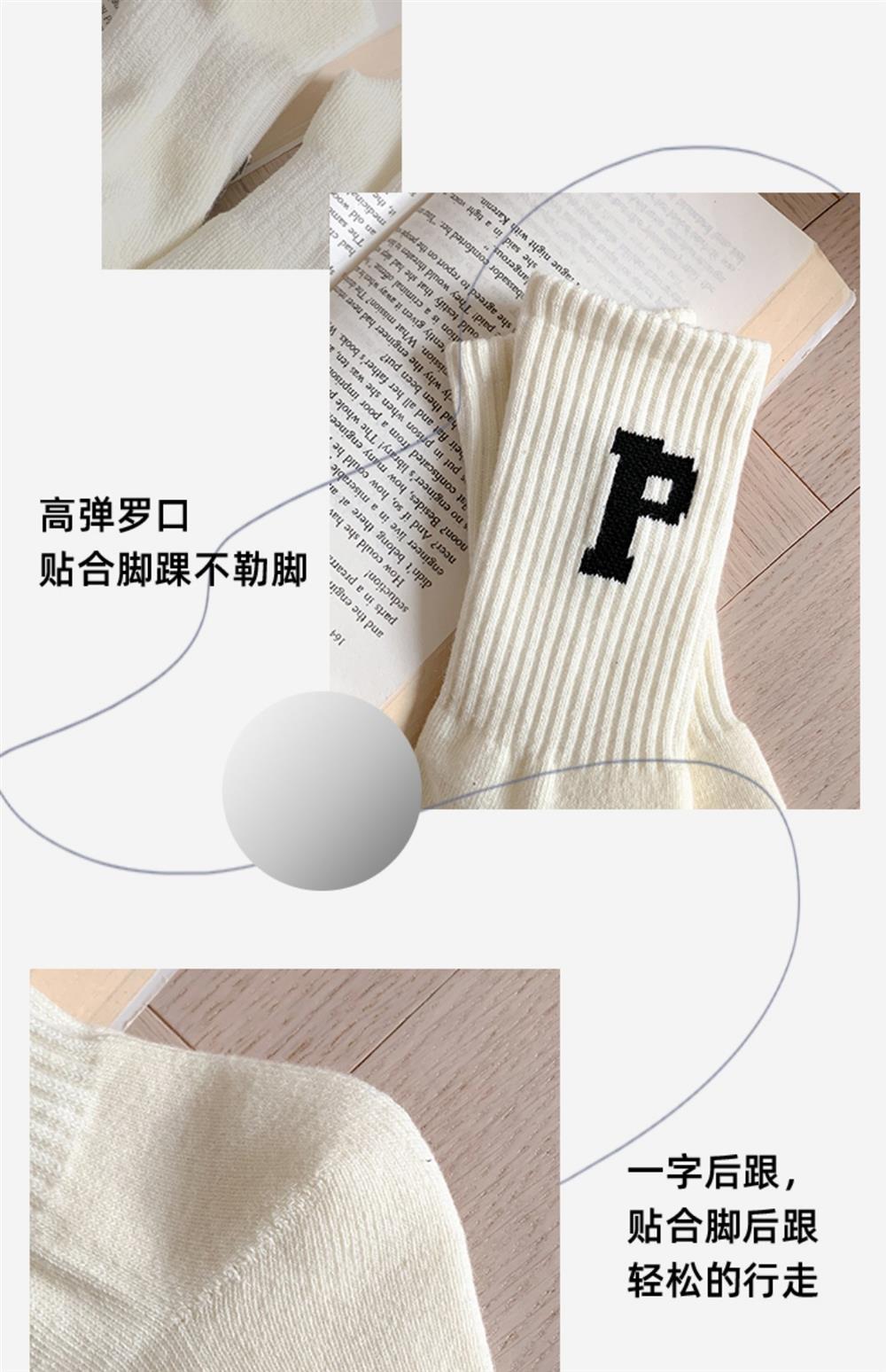 袜子女男中筒秋冬季薄厚ins潮流鲨鱼裤网红款P字母篮球运动休闲袜
