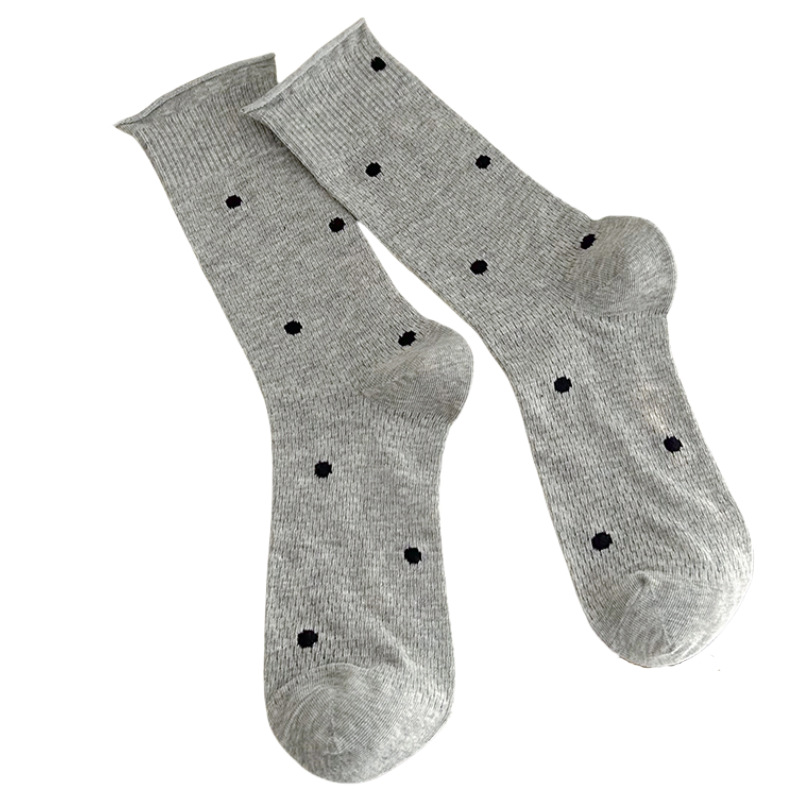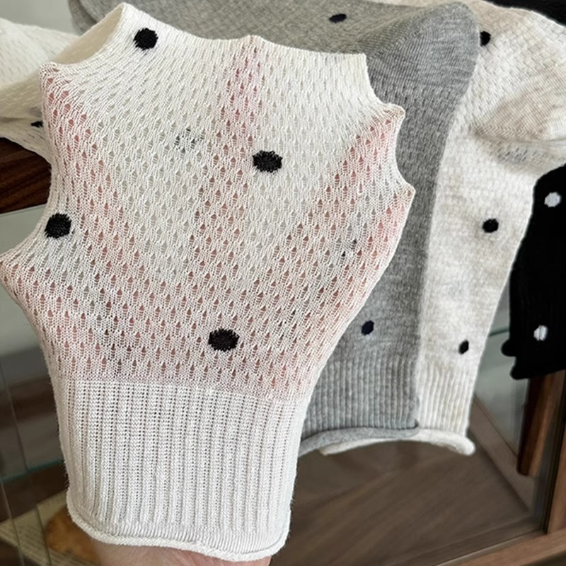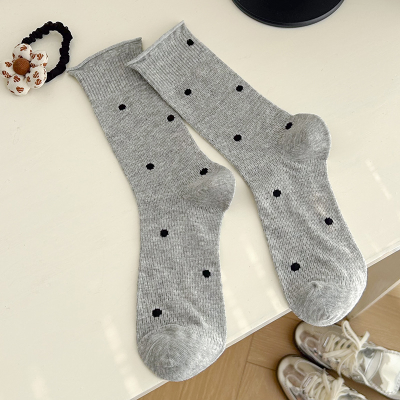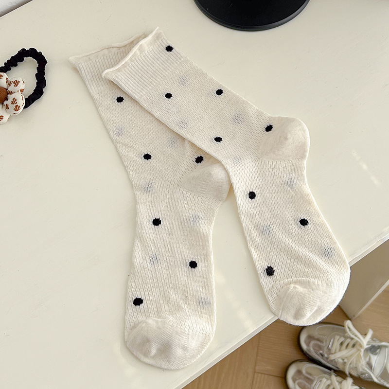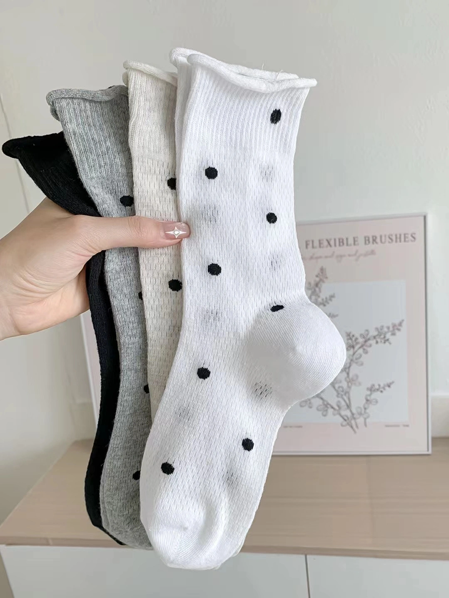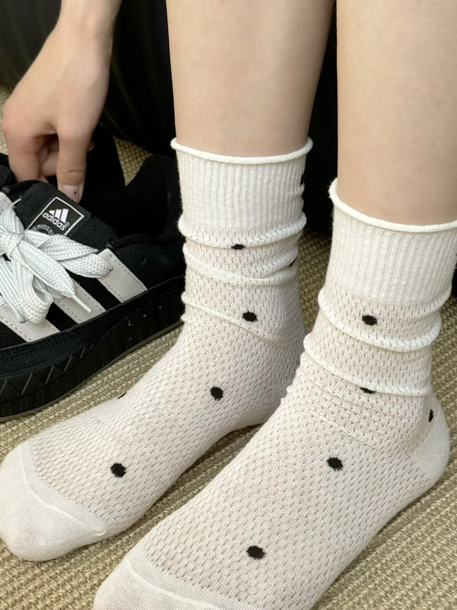 袜子女纯棉薄款波点网眼透气卷边中筒袜夏天芭蕾风长袜夏季堆堆袜