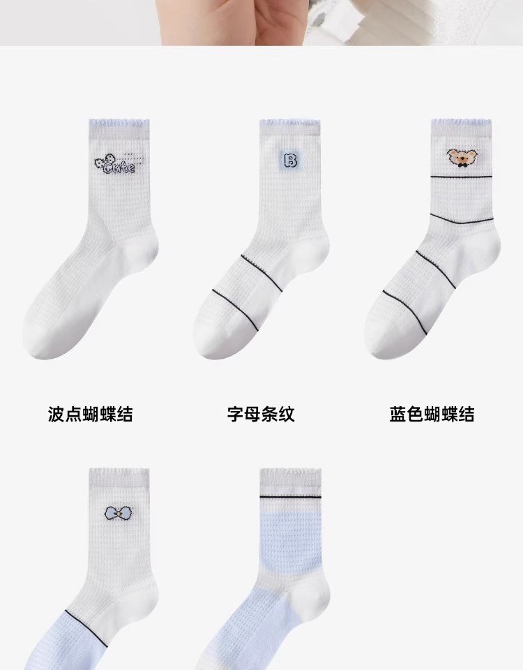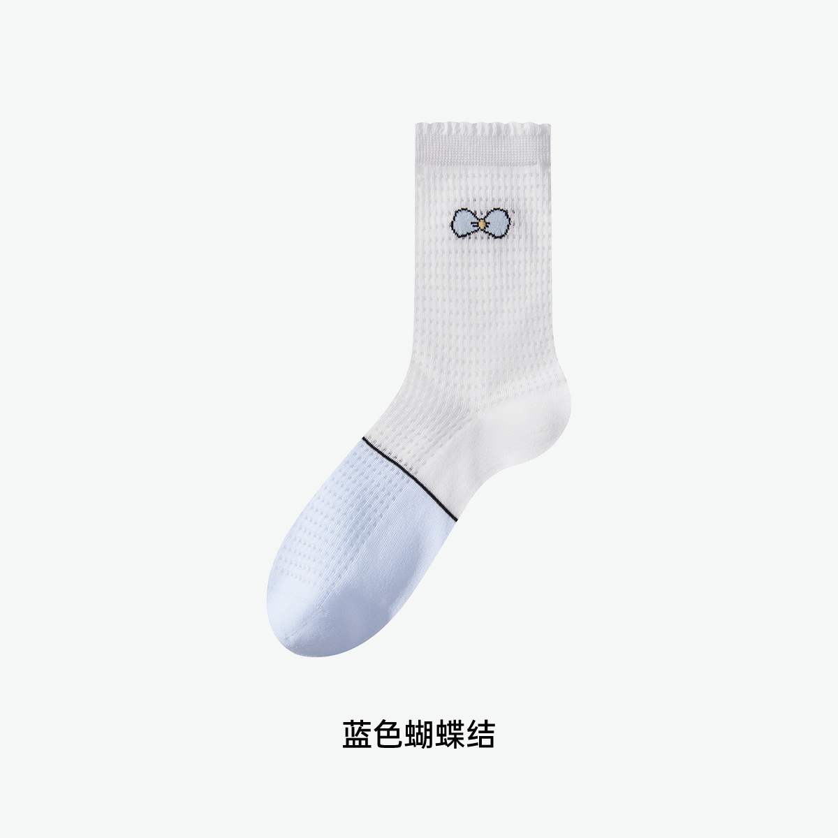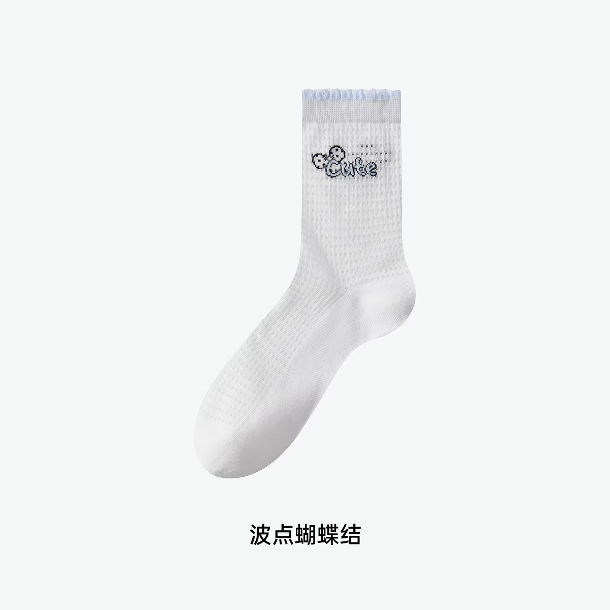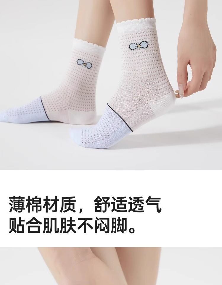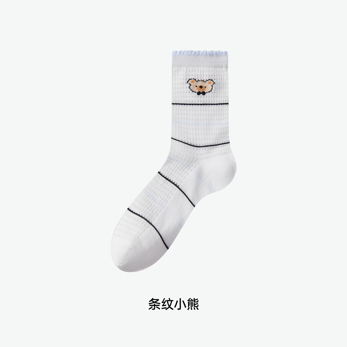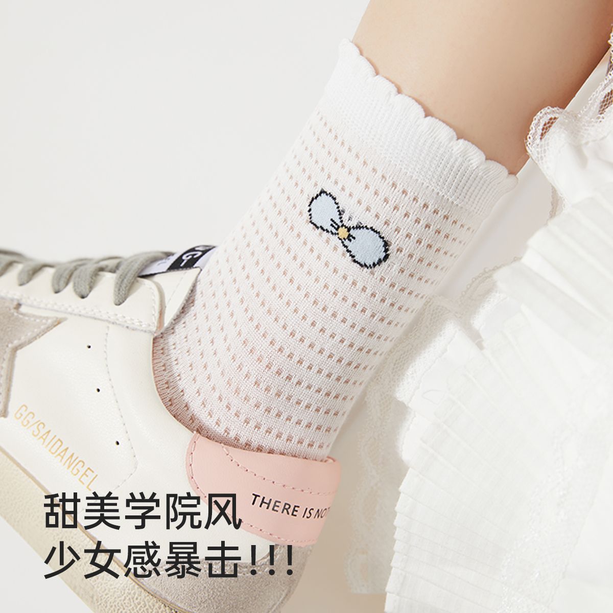 袜子女超薄款纯棉夏季网眼透气无骨中筒袜卡通少女学院风舒适女袜