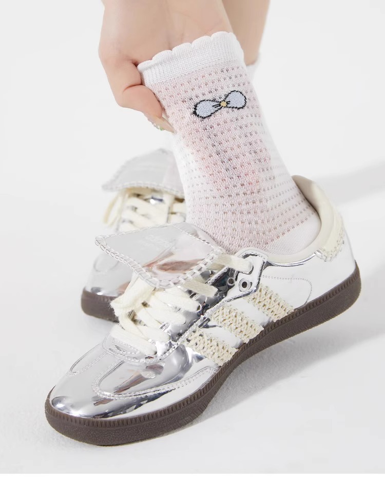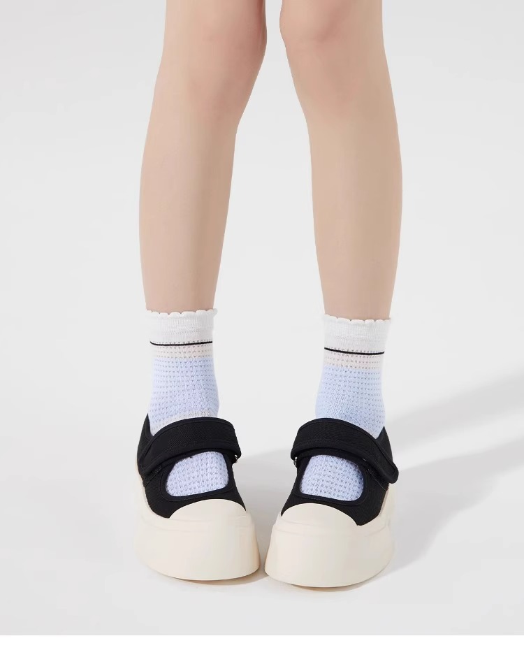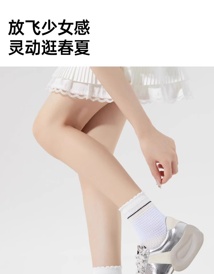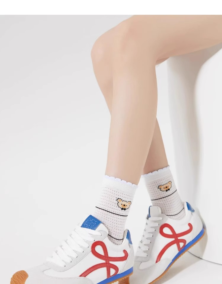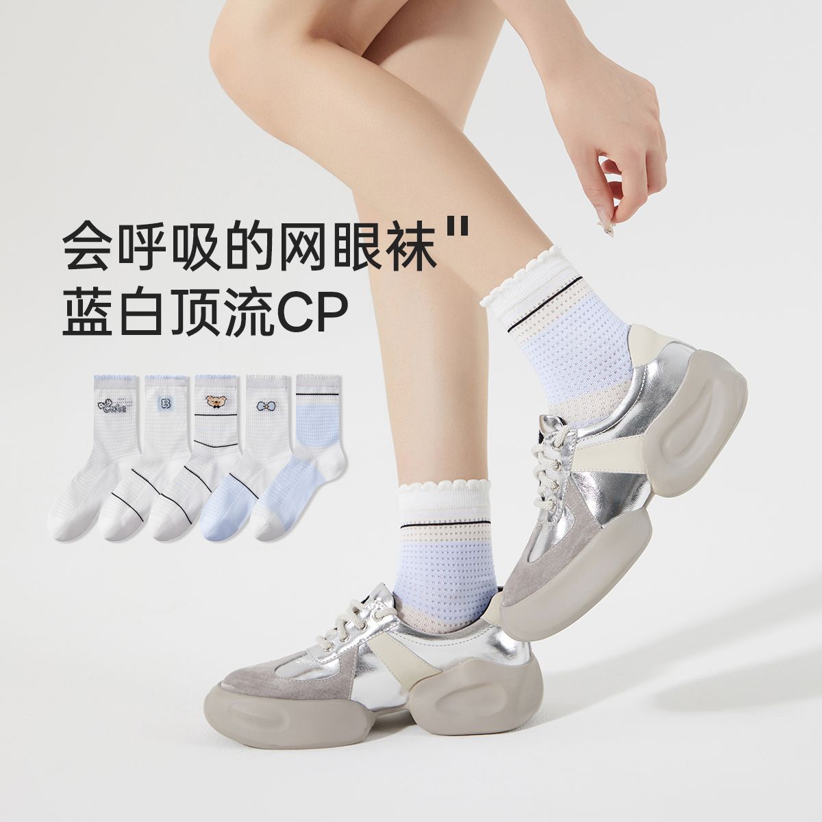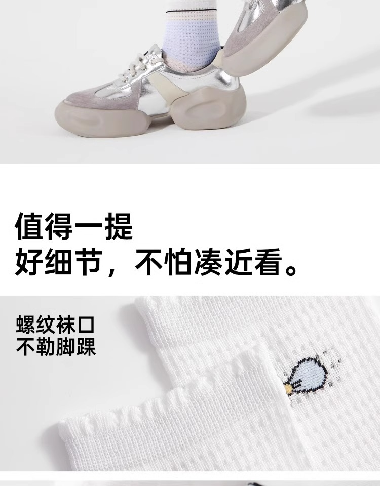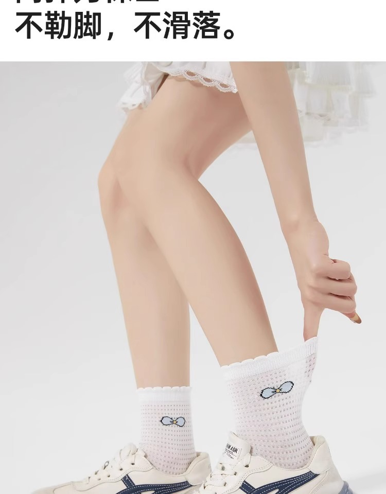 袜子女超薄款纯棉夏季网眼透气无骨中筒袜卡通少女学院风舒适女袜
