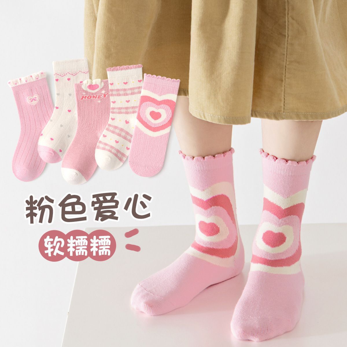 诸暨2025儿童袜子秋季棉袜甜美爱心袜宝宝中大童袜子透气女童袜子