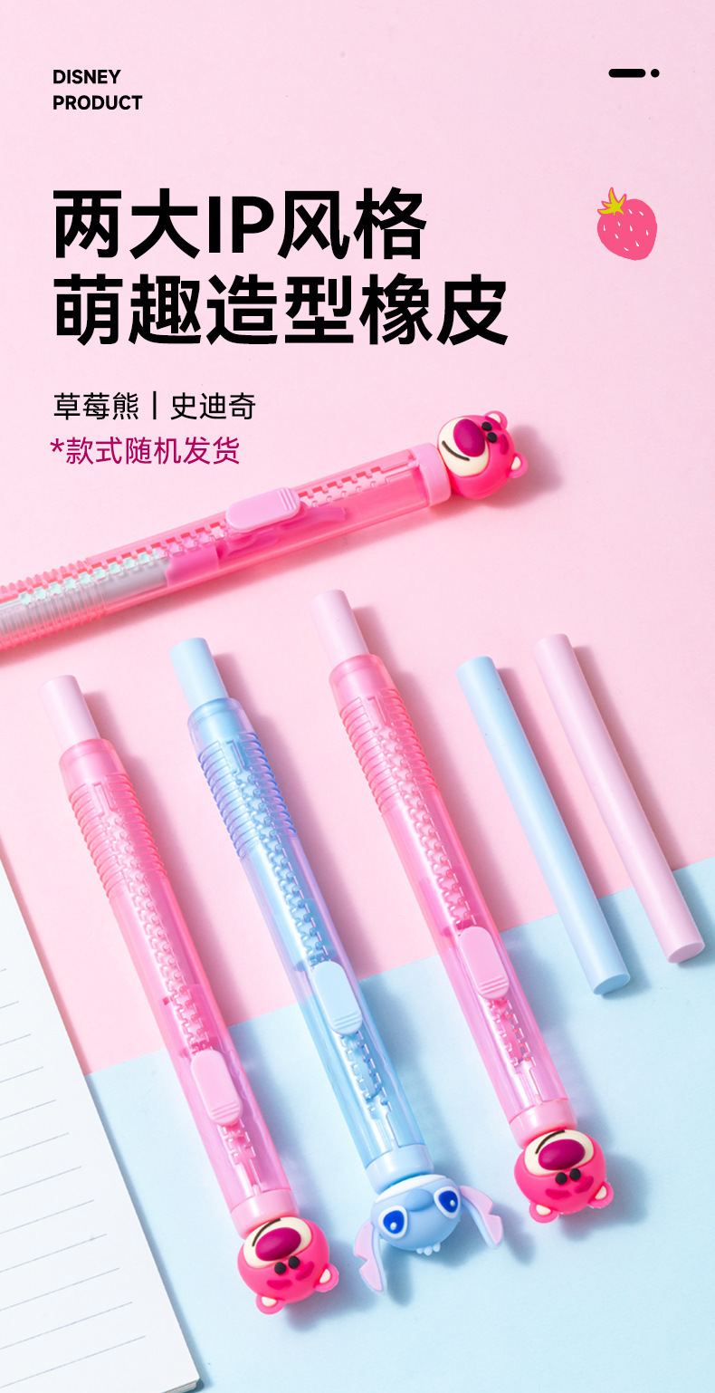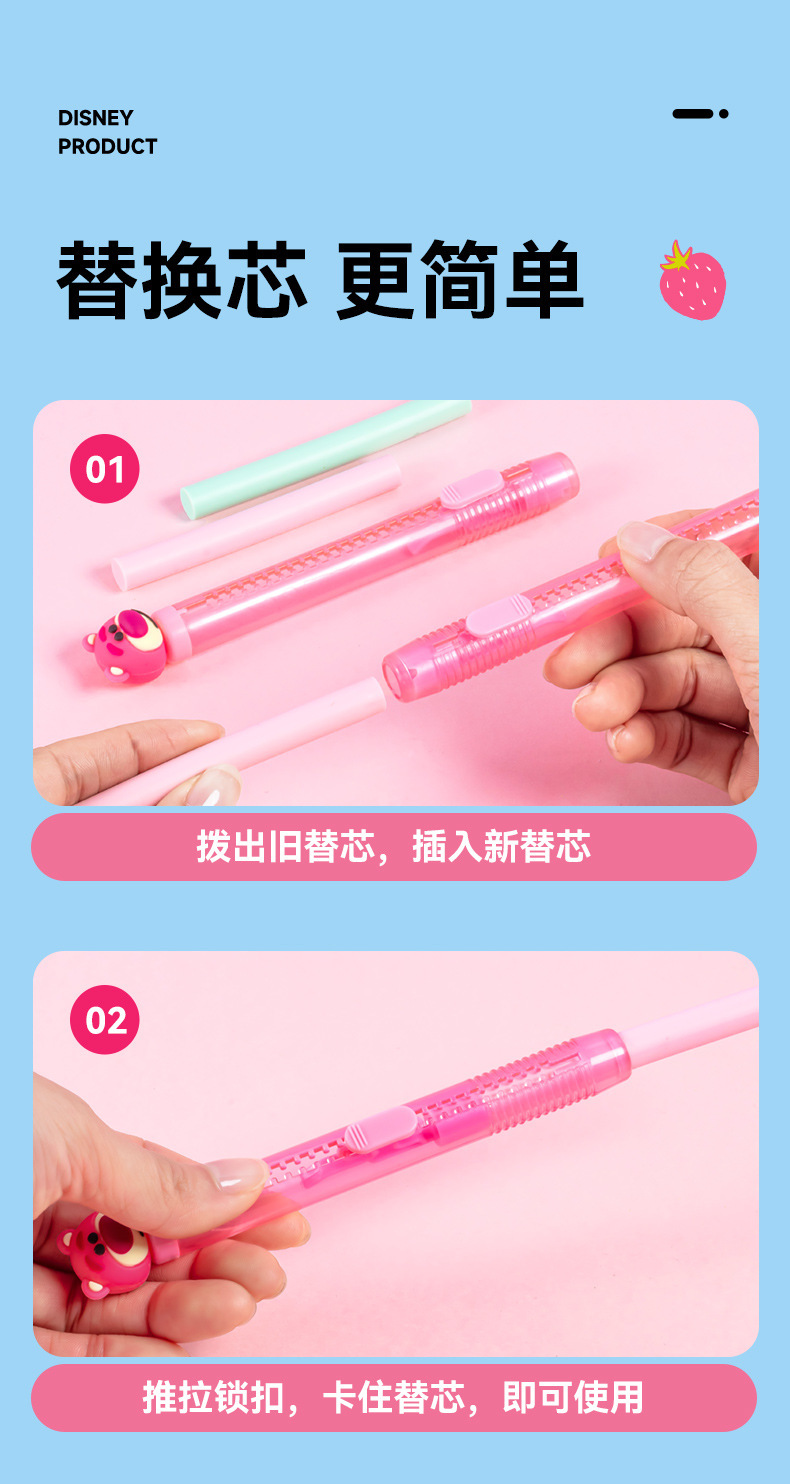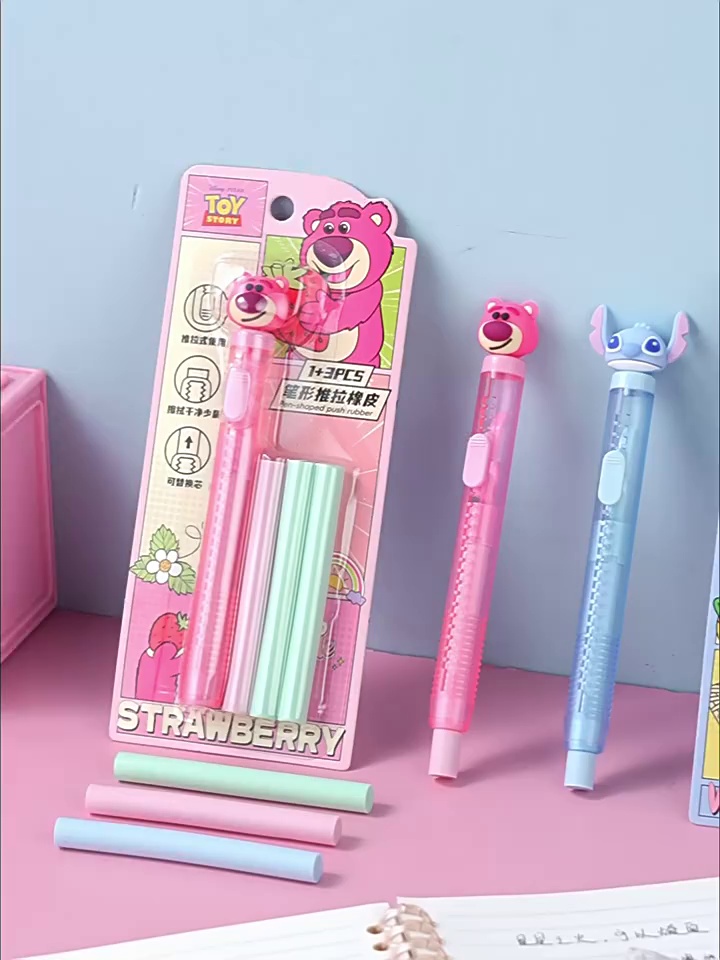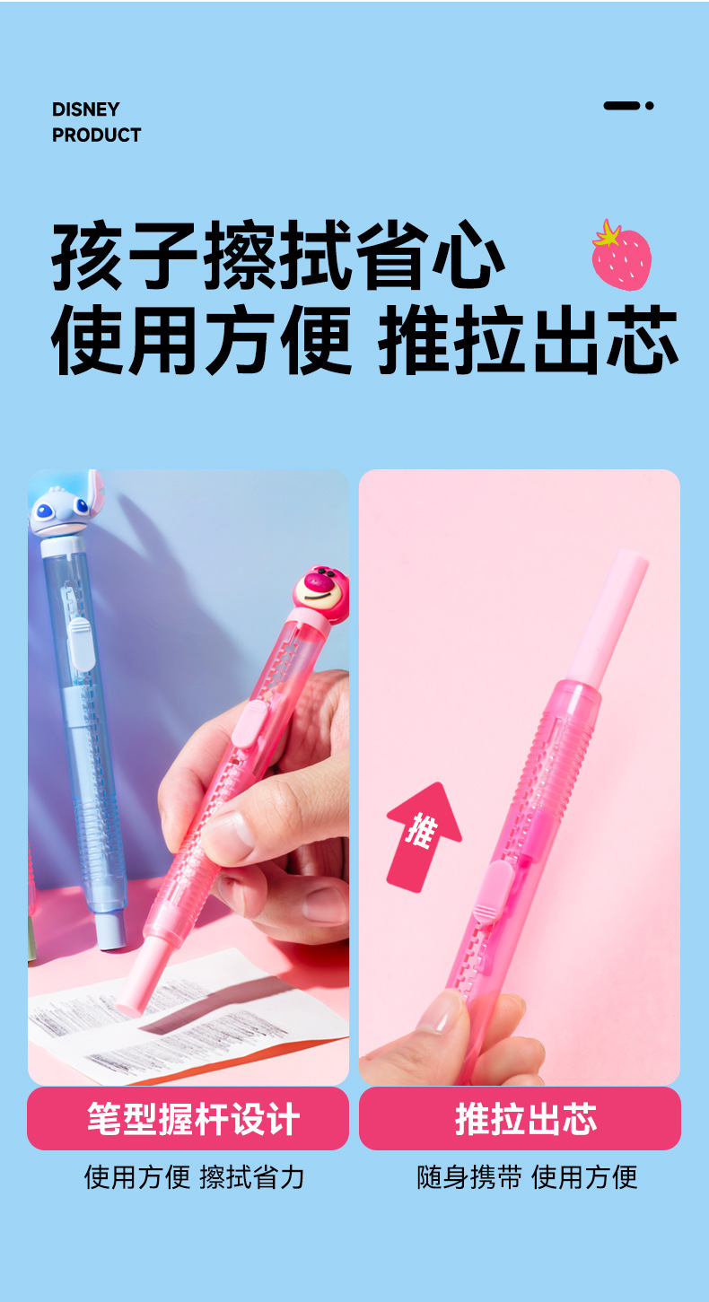 笔形推拉橡皮 儿童卡通可爱橡皮檫替换装 橡皮擦无痕不掉渣