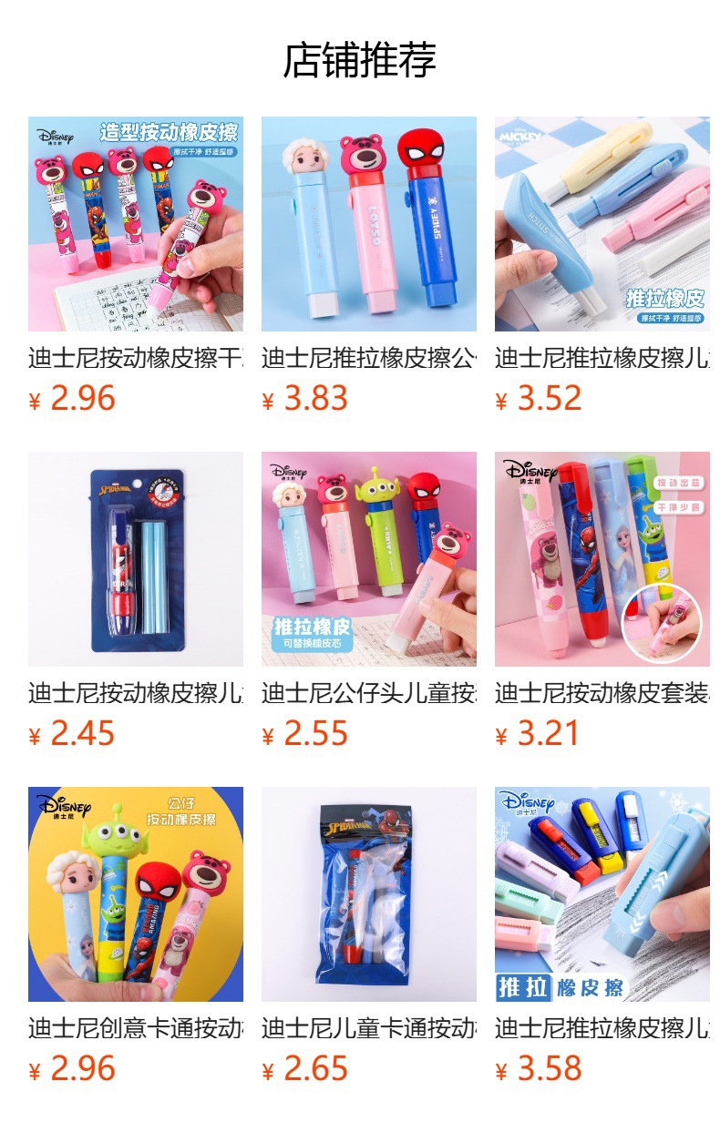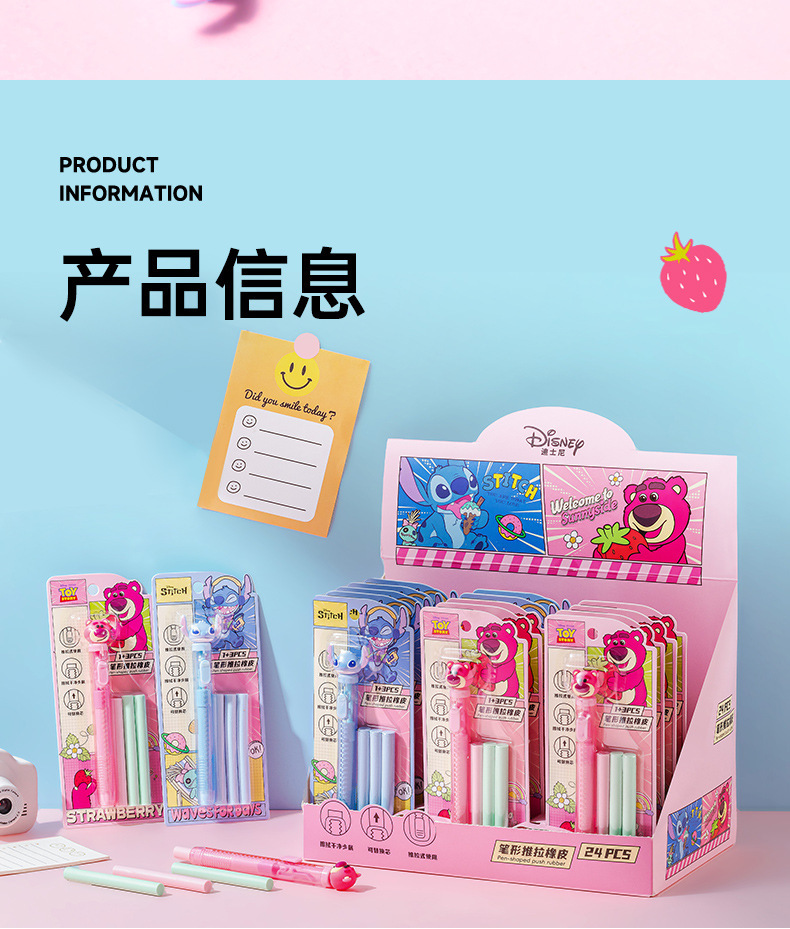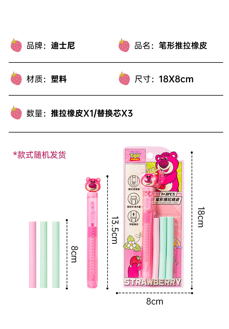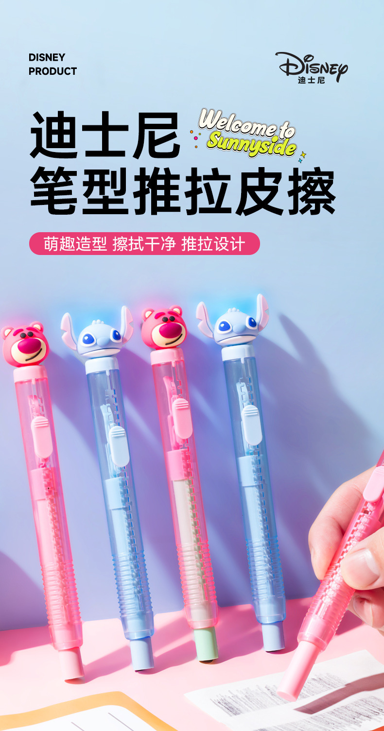 笔形推拉橡皮 儿童卡通可爱橡皮檫替换装 橡皮擦无痕不掉渣