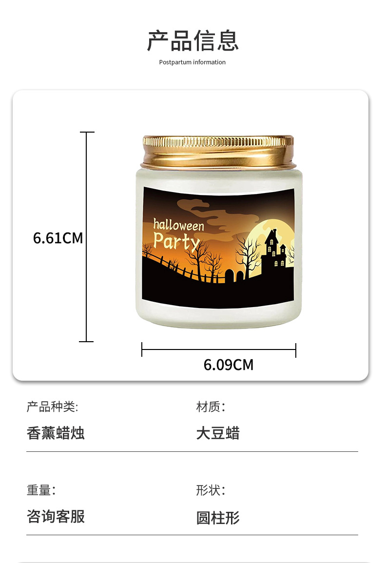 香薰蜡烛磨砂杯大豆蜡卧室香氛万圣节蜡烛伴手礼物创意摆件