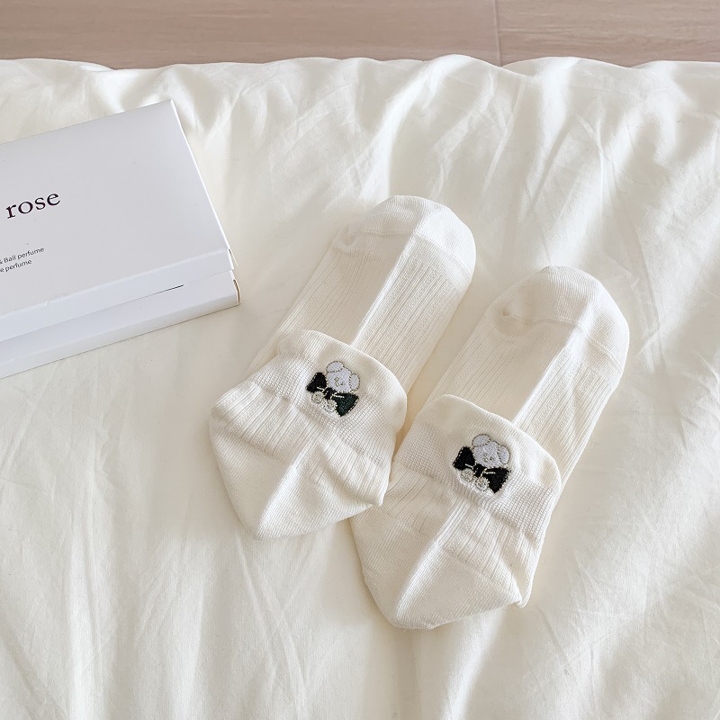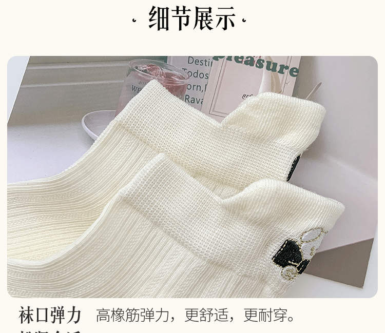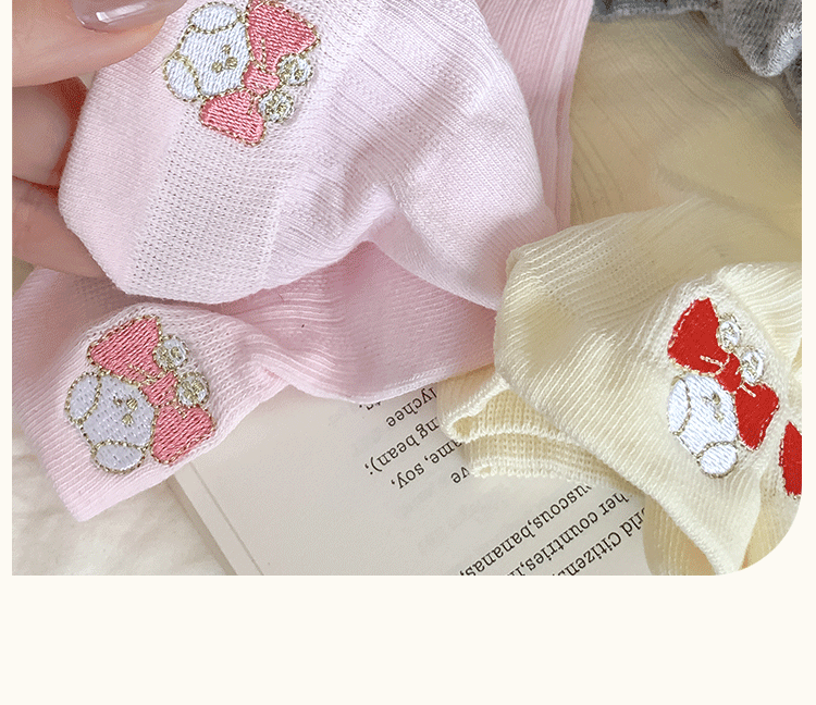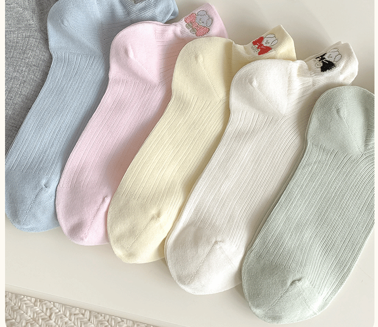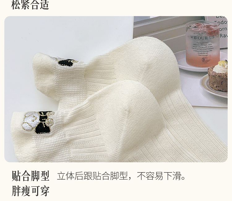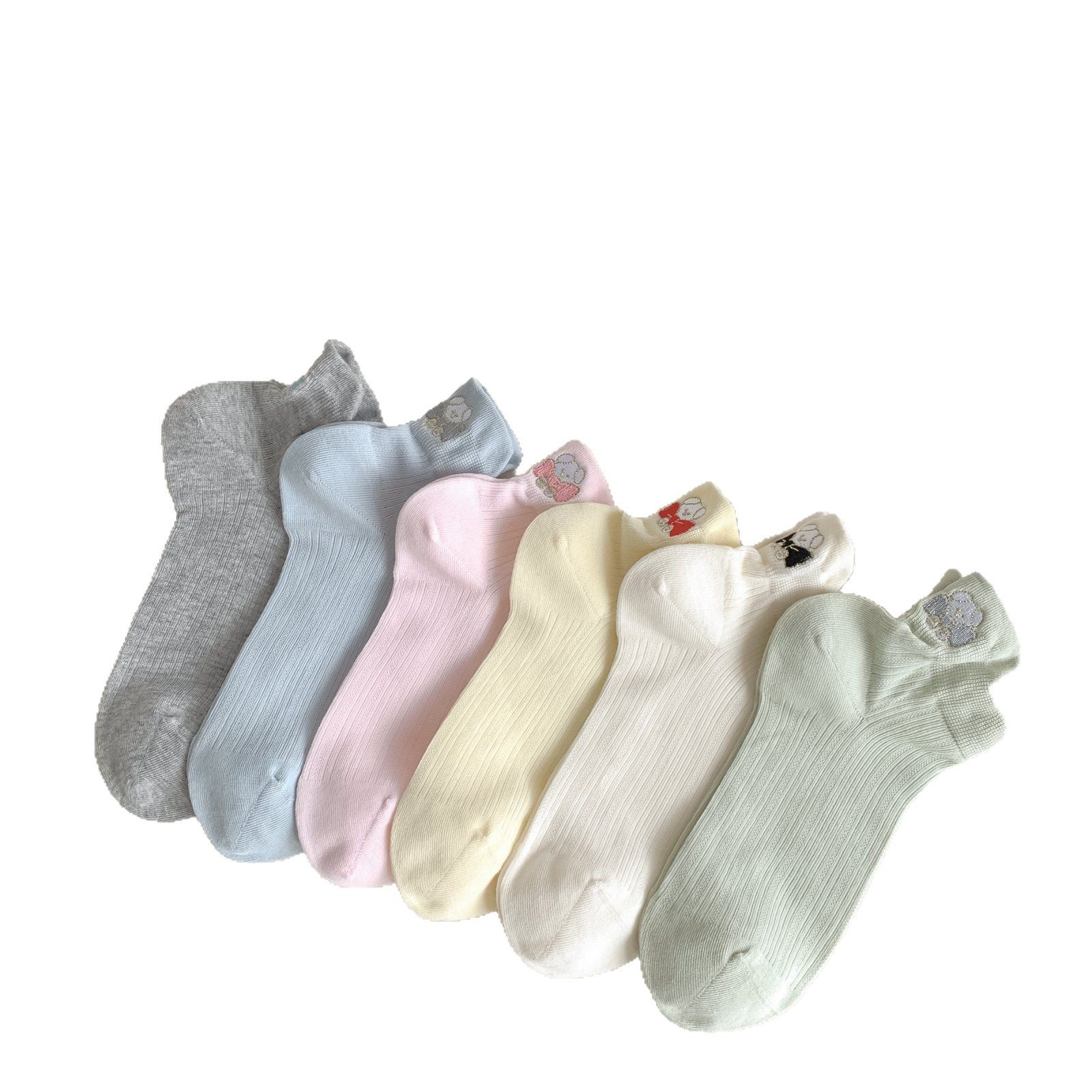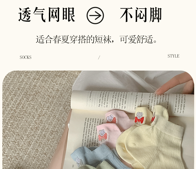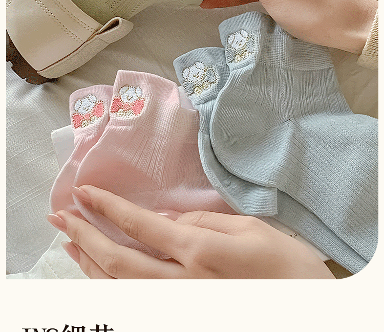 袜子女春夏薄款网眼透气纯棉船袜蝴蝶结小熊刺绣短筒夏天日系短袜