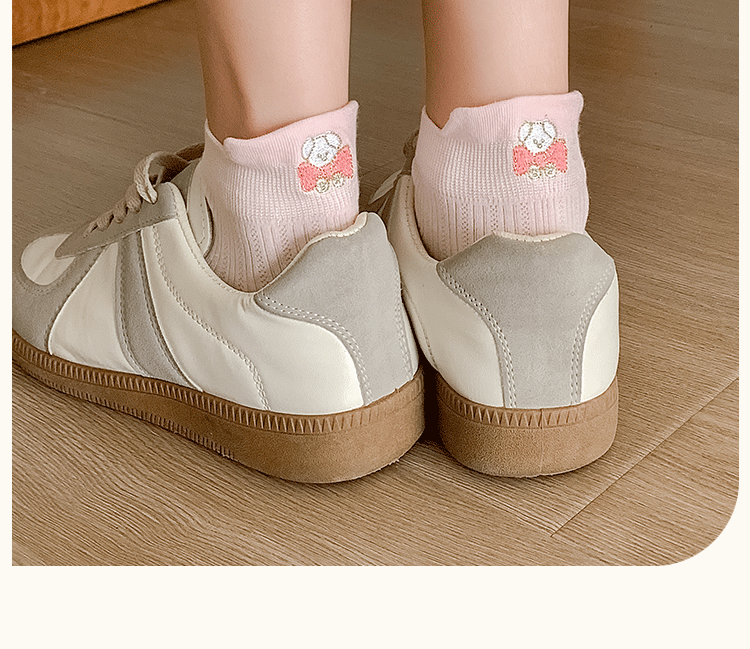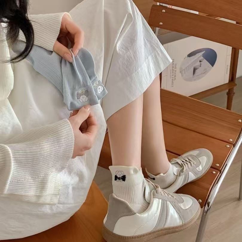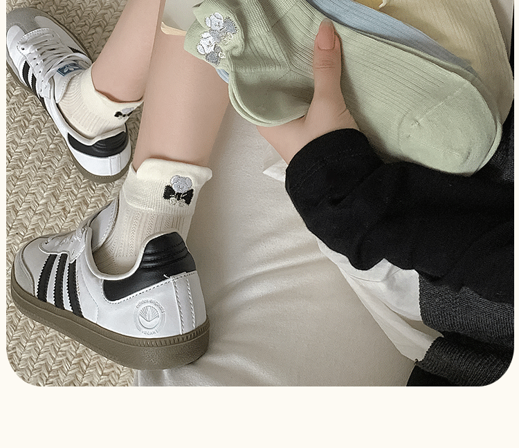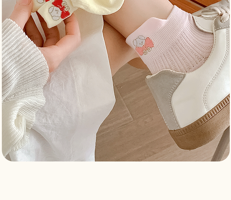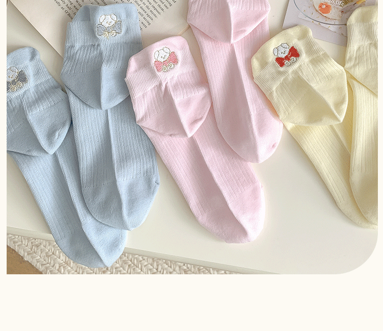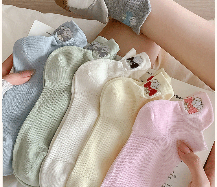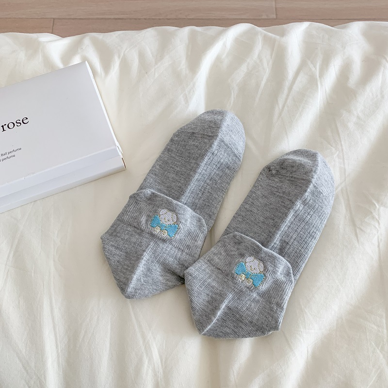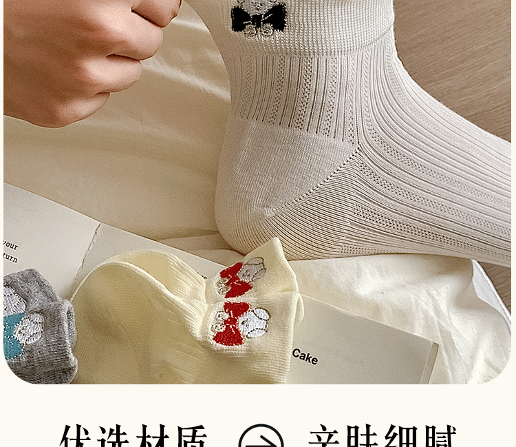袜子女春夏薄款网眼透气纯棉船袜蝴蝶结小熊刺绣短筒夏天日系短袜