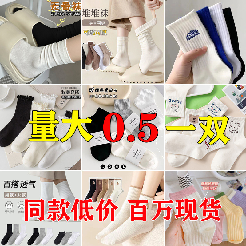 月子袜女中筒堆堆袜日系韩版纯色ins潮涤棉袜无骨袜女士中筒袜子