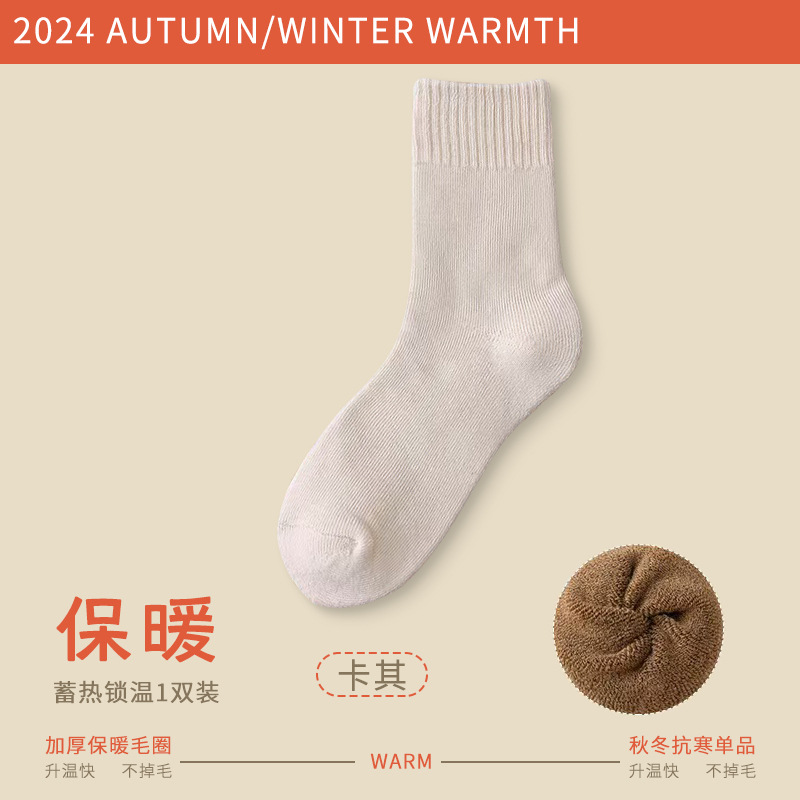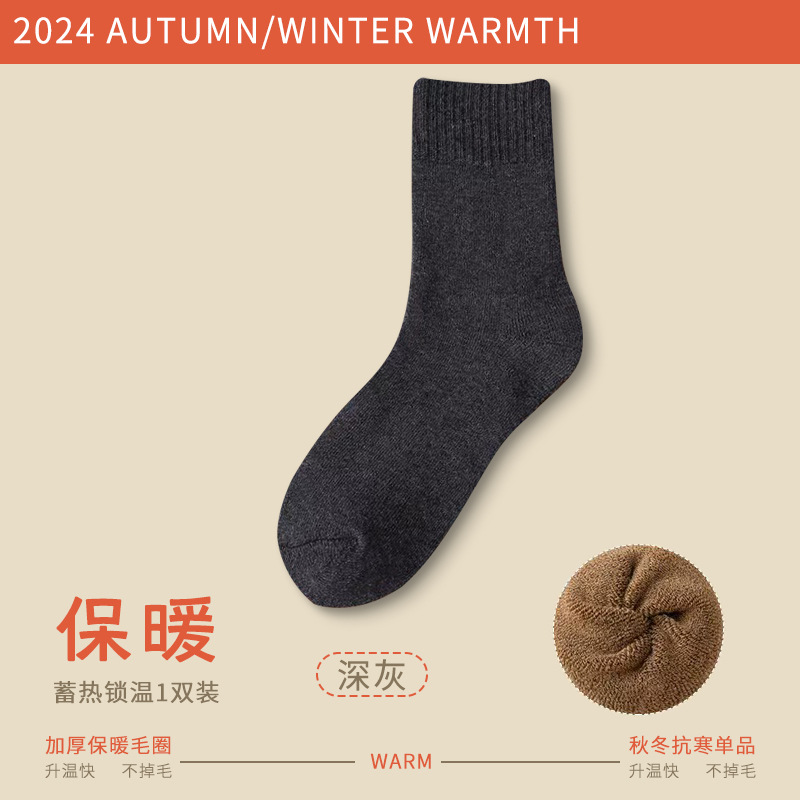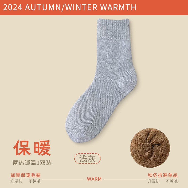 袜子男中筒袜男士秋冬季加绒加厚保暖毛圈毛巾袜冬天纯色长筒棉袜