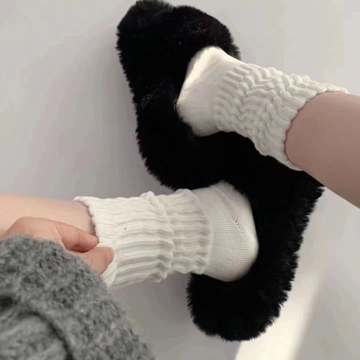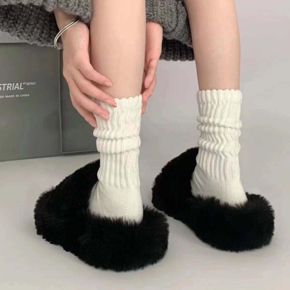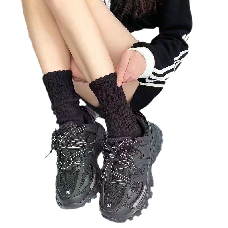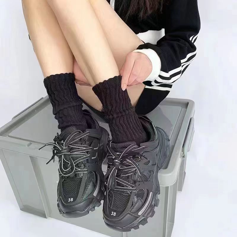 透气双针松口高筒女士春秋款堆堆直筒潮袜白色长筒女袜子 纯色针