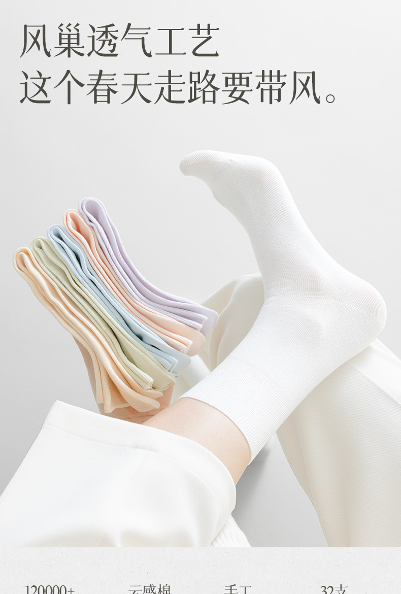 袜子女士夏季全棉无骨月子袜日系薄款吸汗透气纯棉松口中筒堆堆袜
