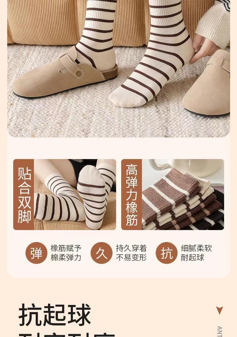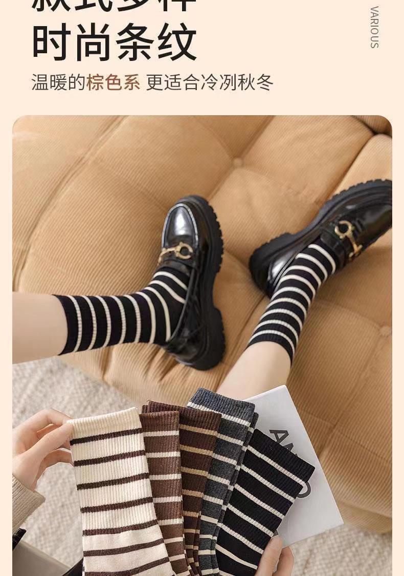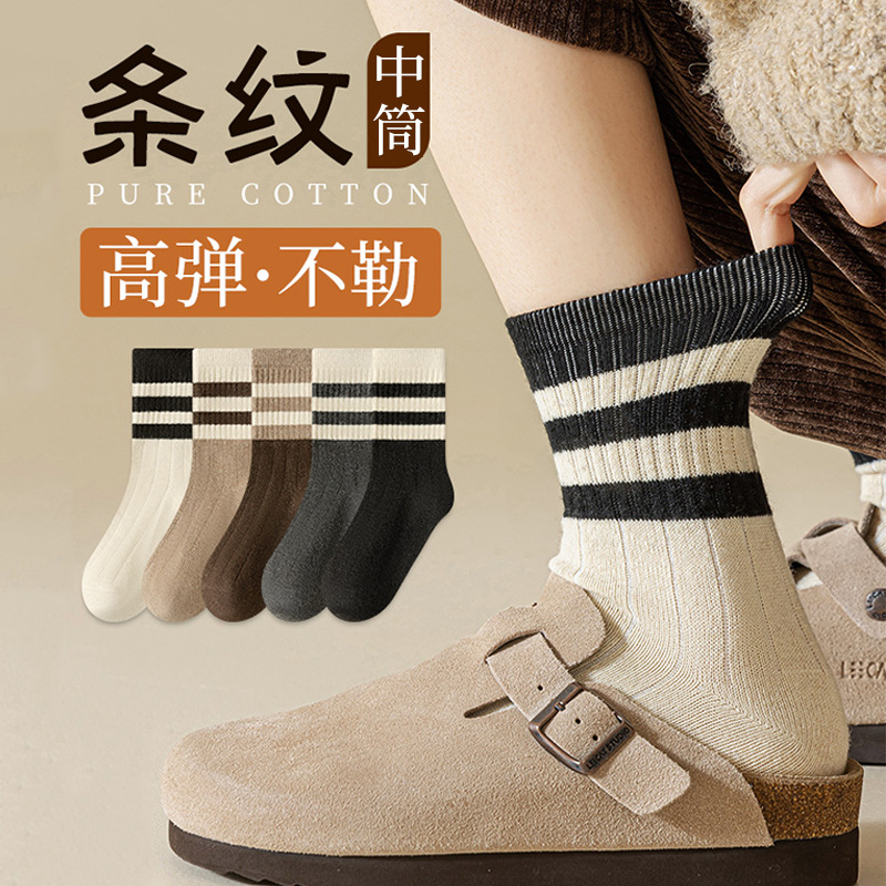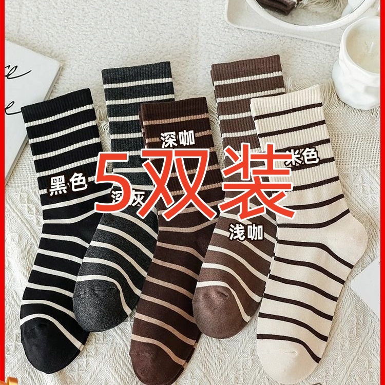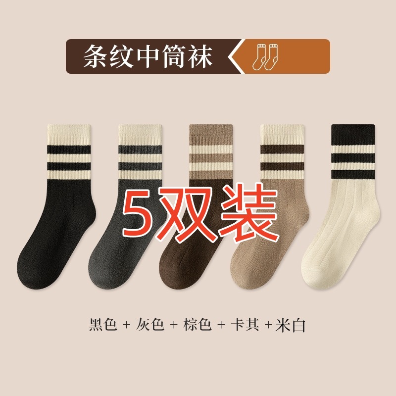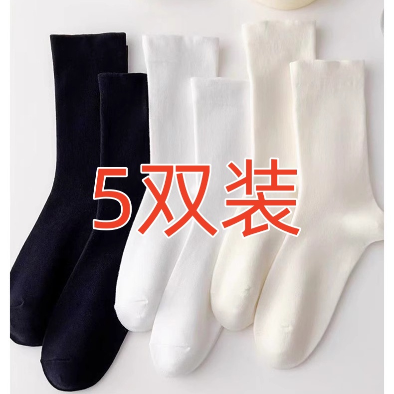 清仓5双装袜子女堆堆袜春秋男中筒条纹运动纯色棉袜短筒诸暨袜子