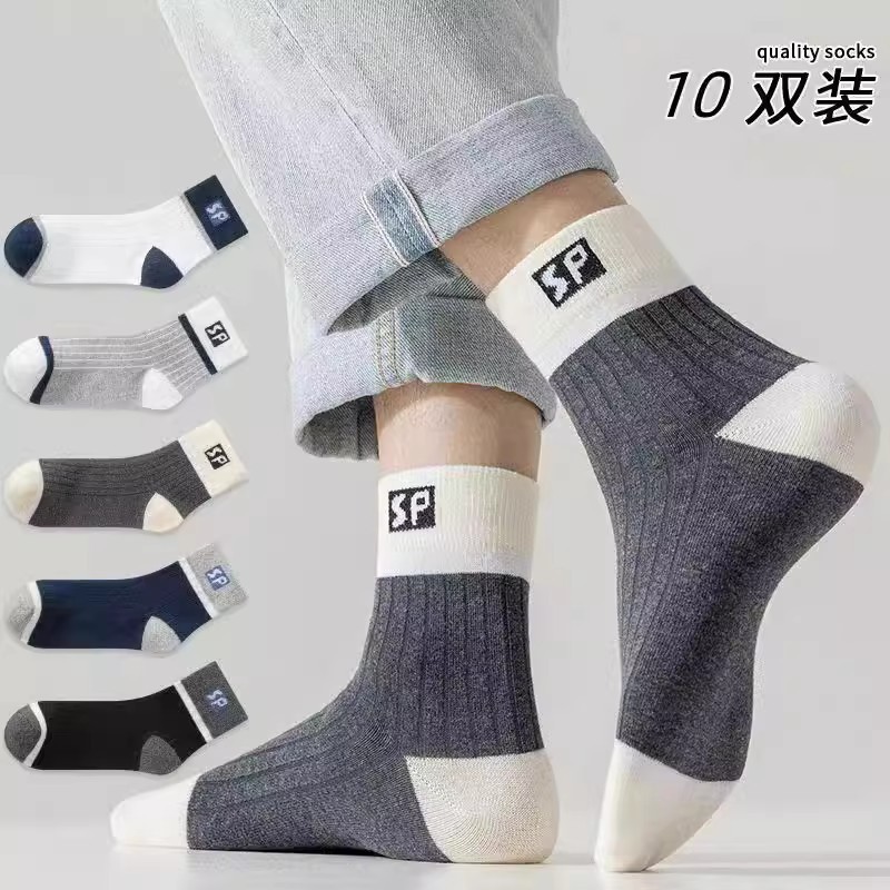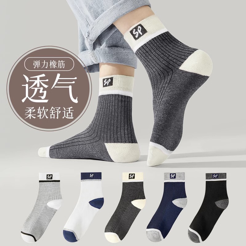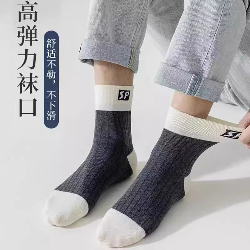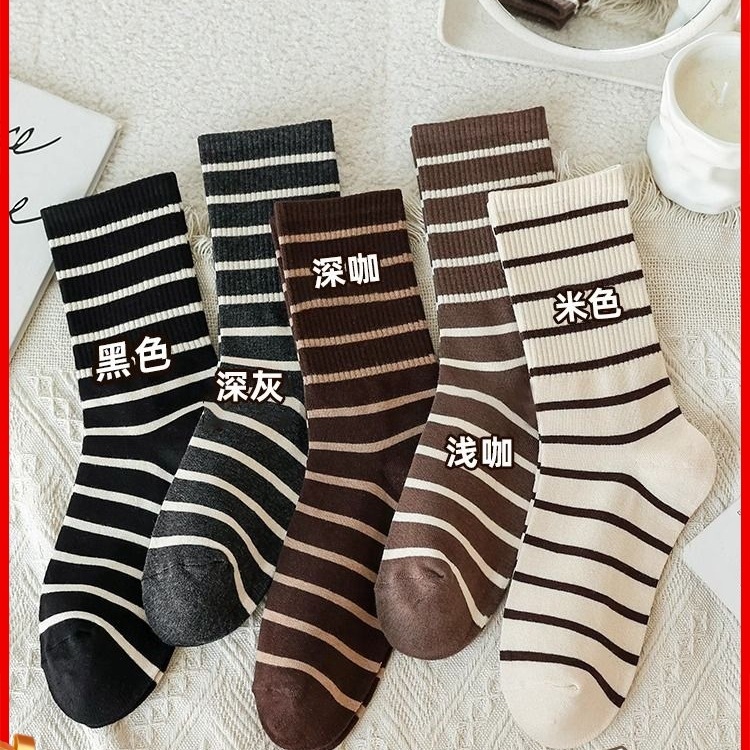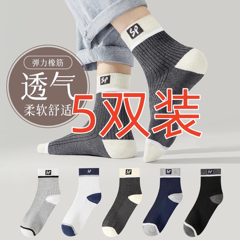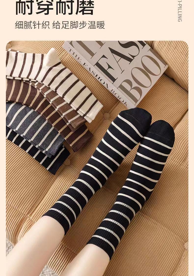 清仓5双装袜子女堆堆袜春秋男中筒条纹运动纯色棉袜短筒诸暨袜子