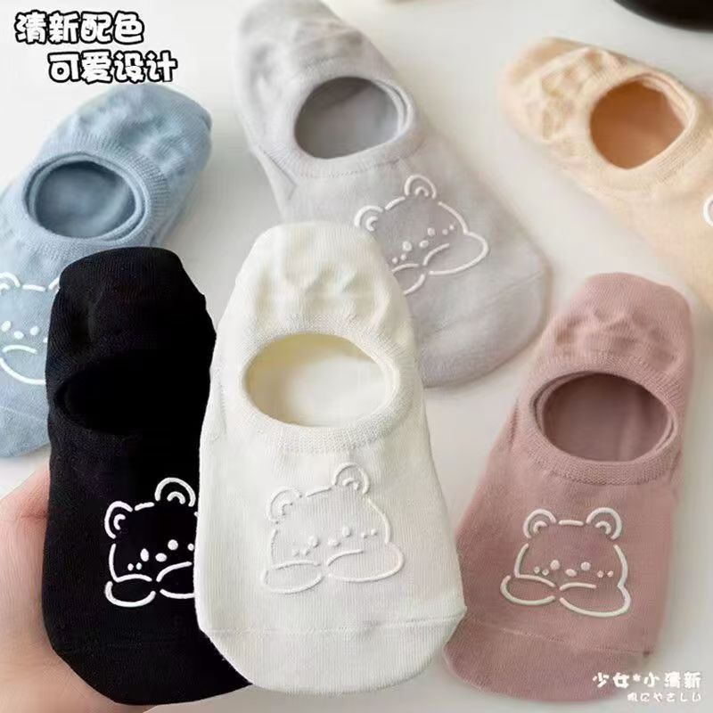 小熊笑脸袜子女船袜纯棉夏季薄ins潮网红浅口短袜硅胶防滑隐形袜