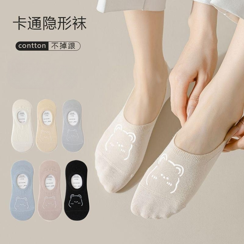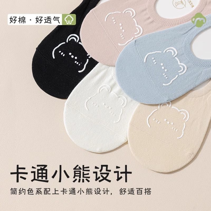 袜子女船袜夏季薄款浅口短袜纯色可爱小熊防滑隐形袜女士卡通短袜