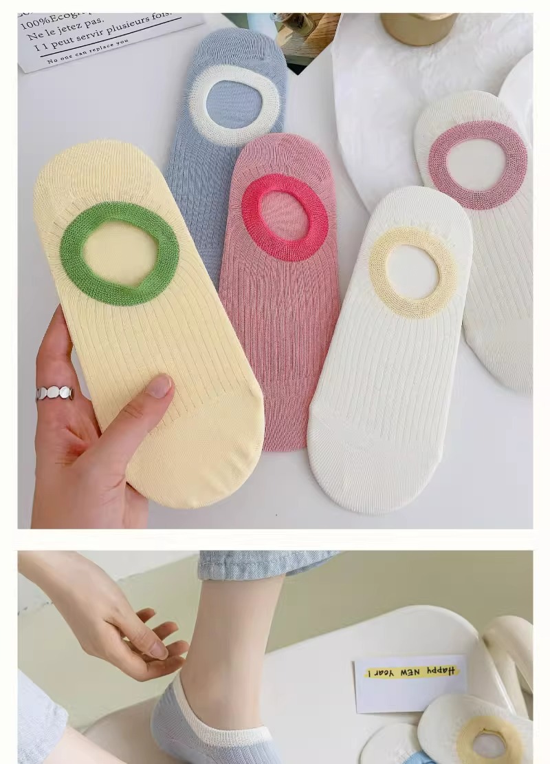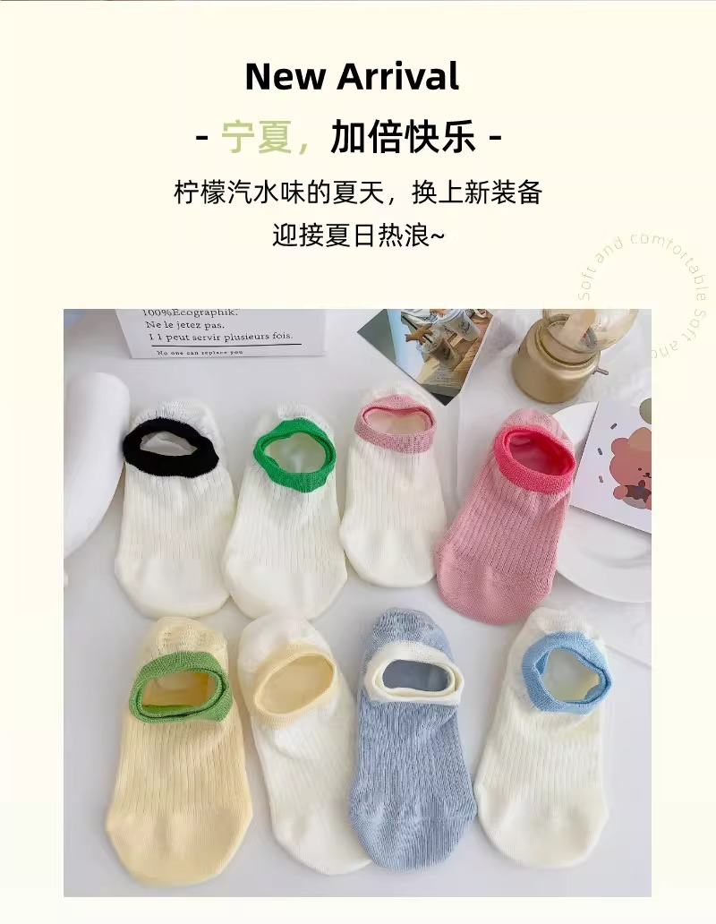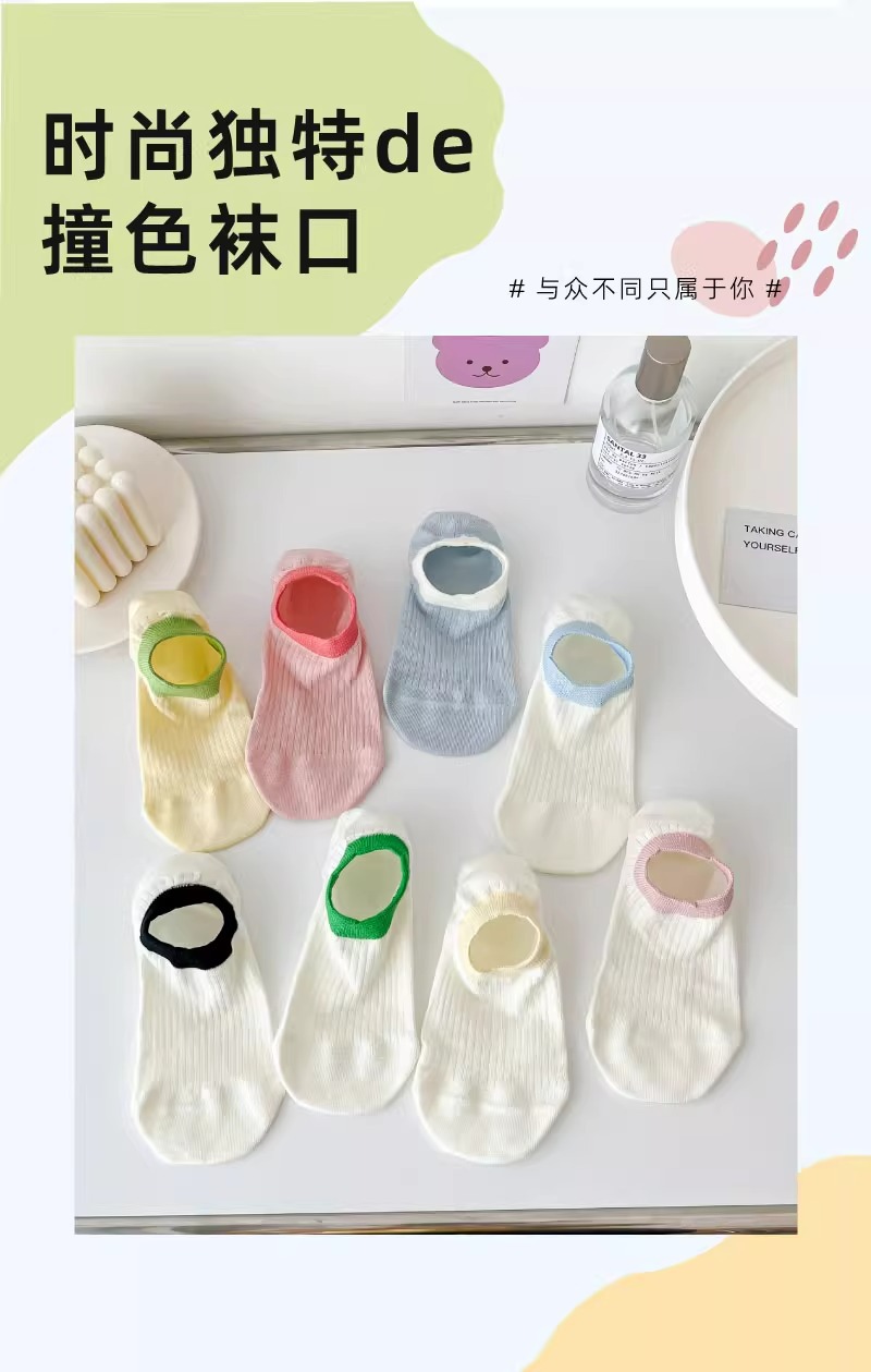 袜子女船袜夏季薄款防滑不掉跟棉袜拼色浅口多巴胺ins短袜隐形袜