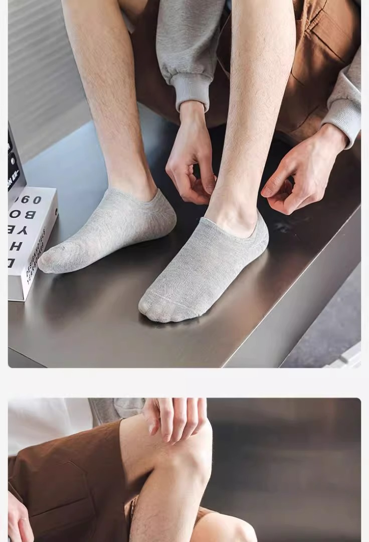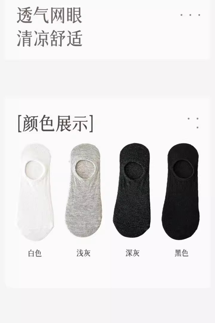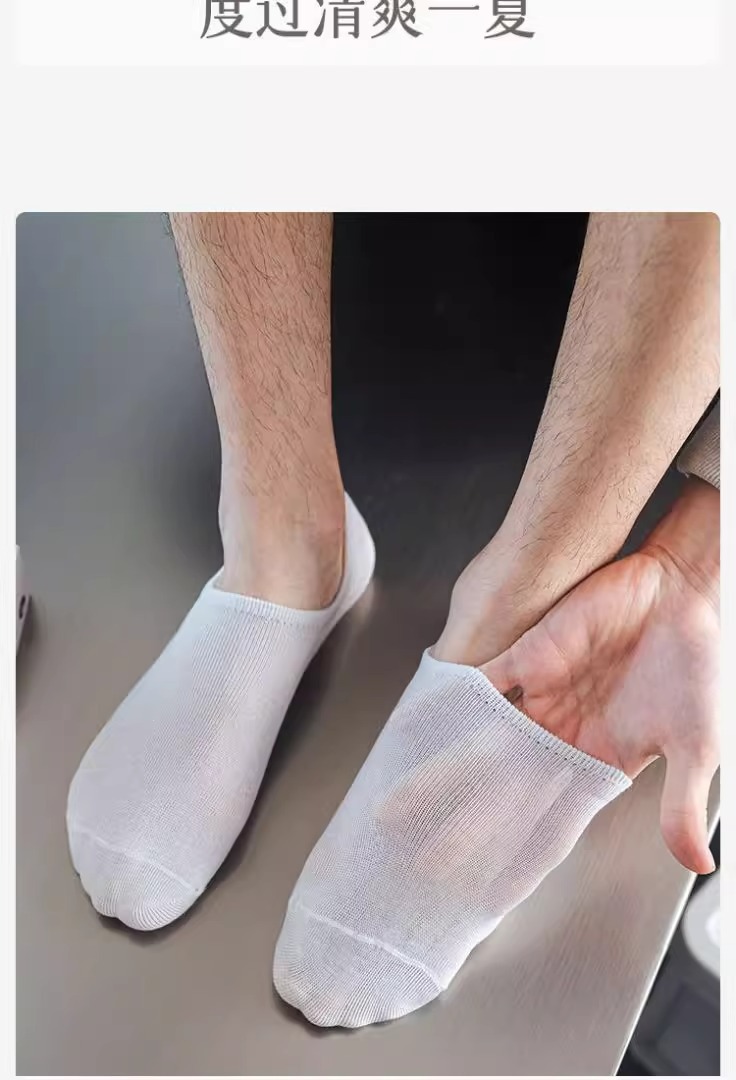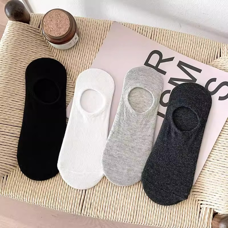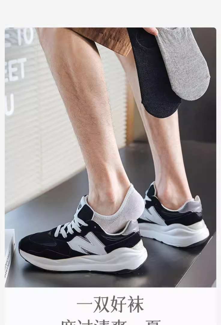 袜子男短筒男士休闲吸汗透气短袜夏季薄款防滑隐形船袜黑白灰男袜