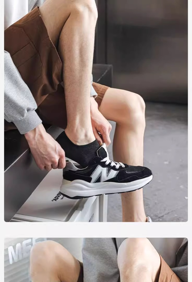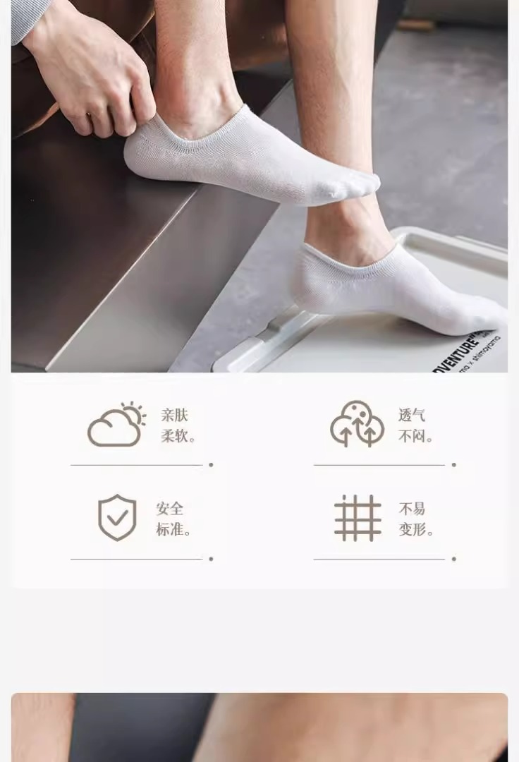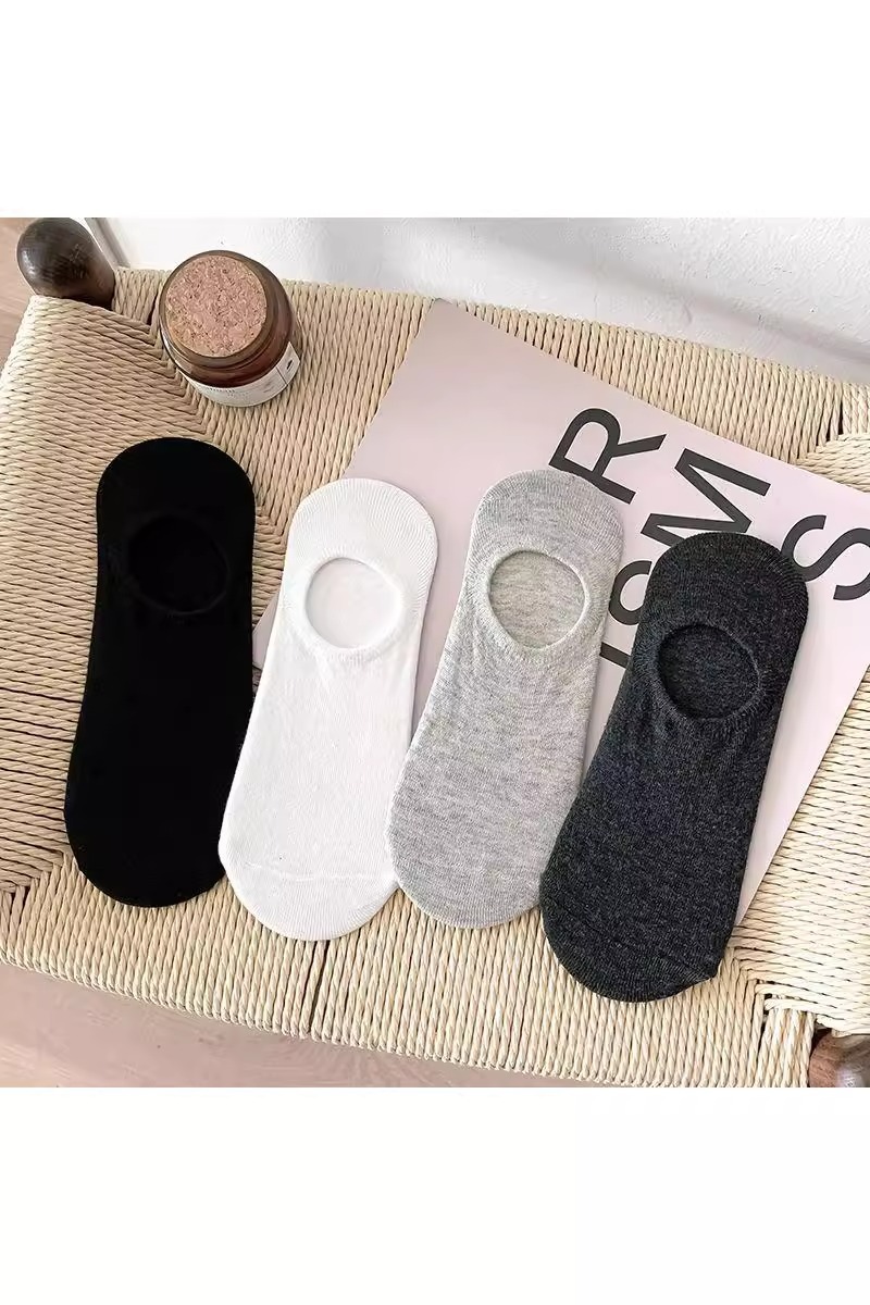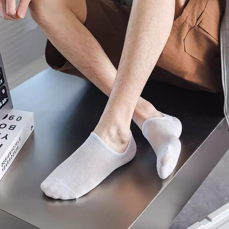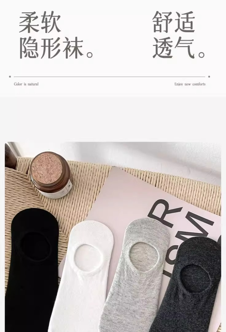 袜子男短筒男士休闲吸汗透气短袜夏季薄款防滑隐形船袜黑白灰男袜