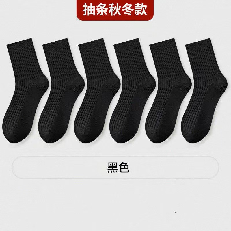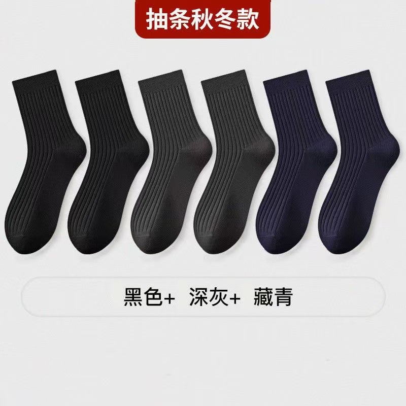 陆冬袜藏青色秋冬中筒袜诸暨袜厂批发商务简约竖条袜子防臭吸汗袜