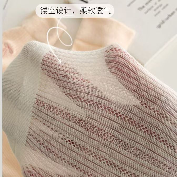袜子女春夏季薄款纯棉jk网眼中筒袜miu系芭蕾风蝴蝶结夏天堆堆袜