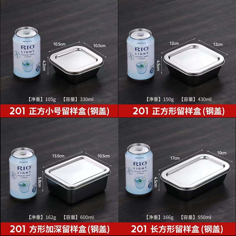 304不锈钢留样盒幼儿园学校食品留样碗厨房留样瓶带盖长方形盒子