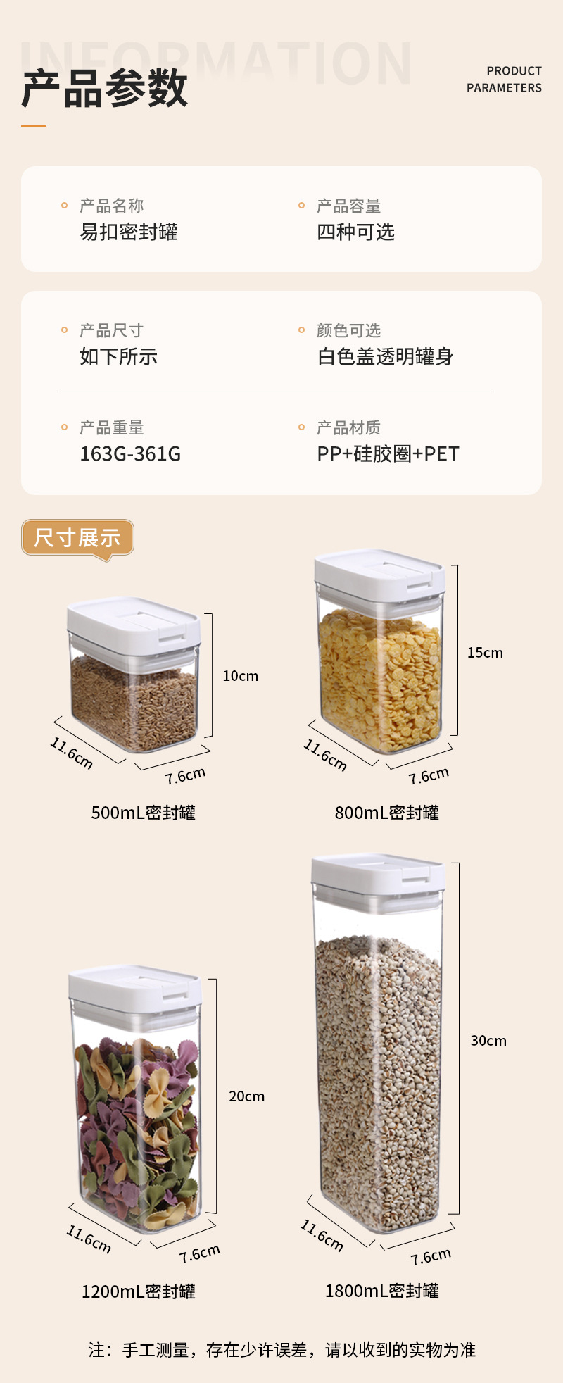密封罐食品用五谷杂粮收纳盒密封盒储物罐厨房陈皮面条收纳罐容器