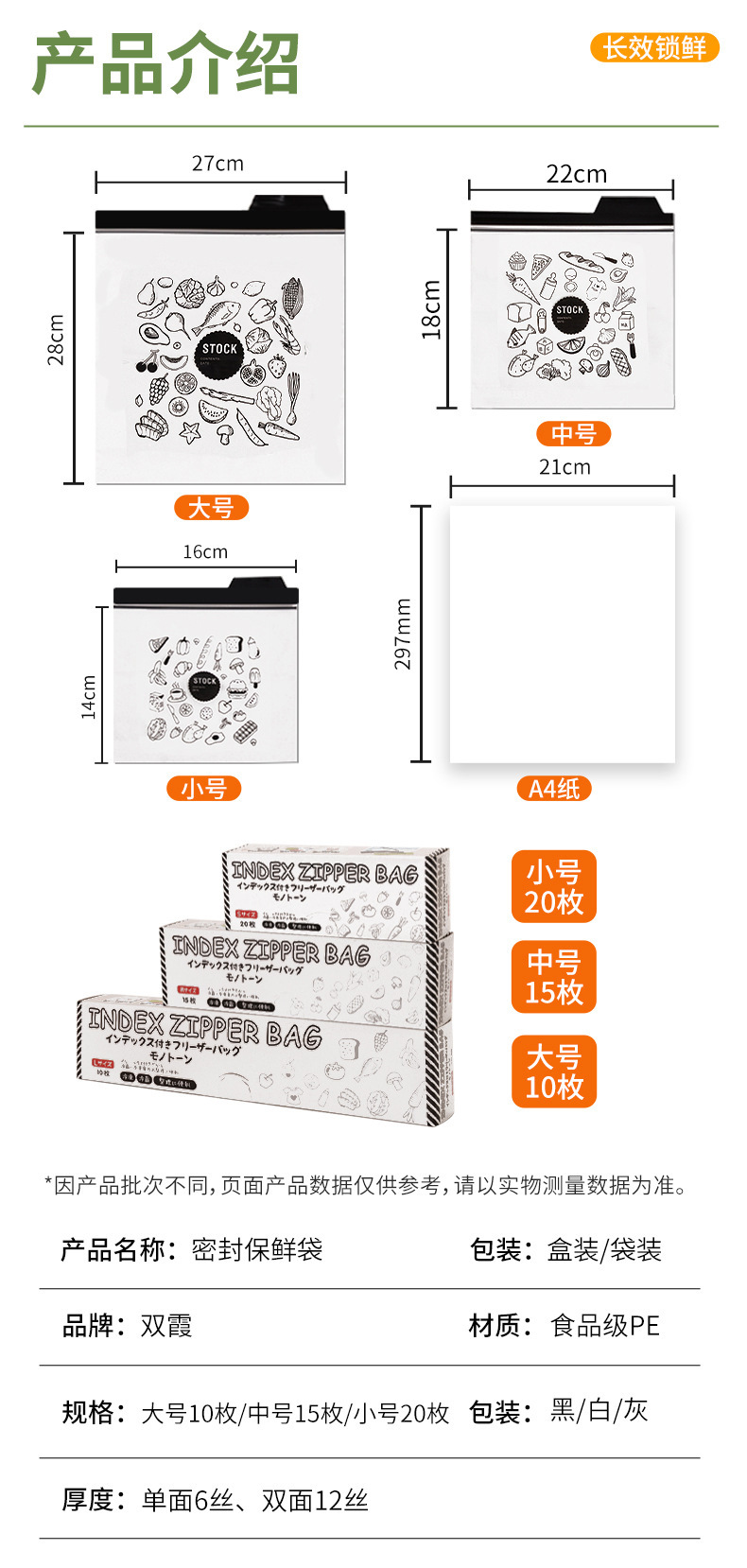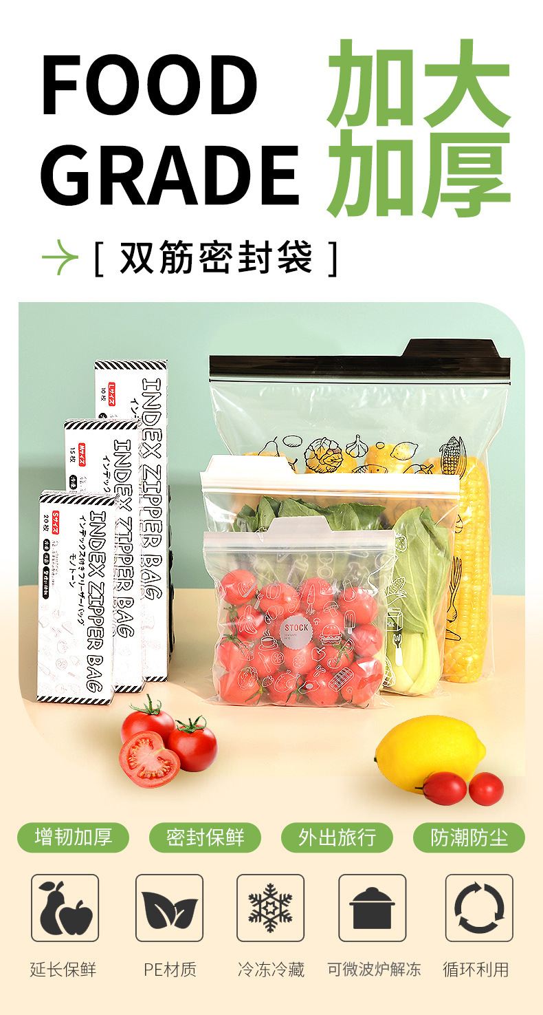 双筋密封保鲜袋食品级抽取式自封袋家用食品密实袋加厚冰箱密封袋