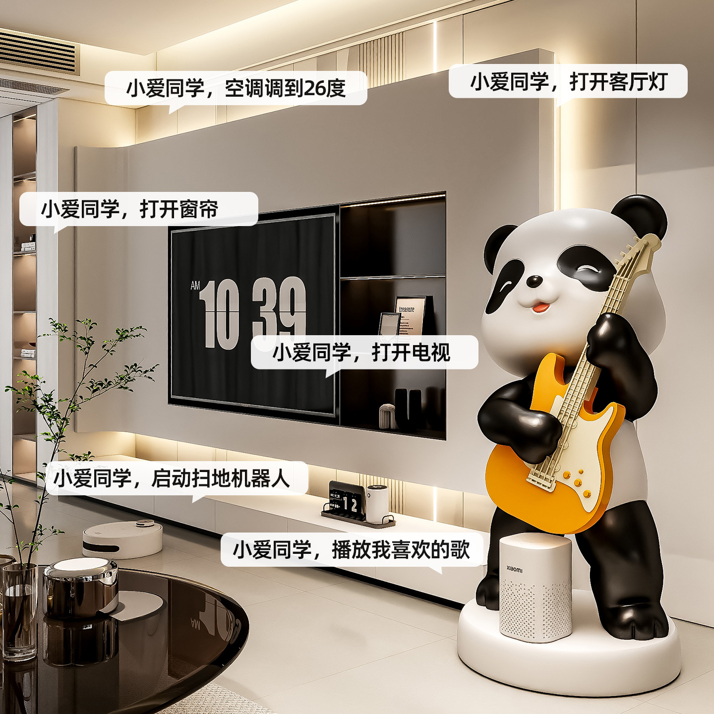 小爱智能音响熊猫吉他摆件音乐艺术客厅大型落地装饰设计师原创
