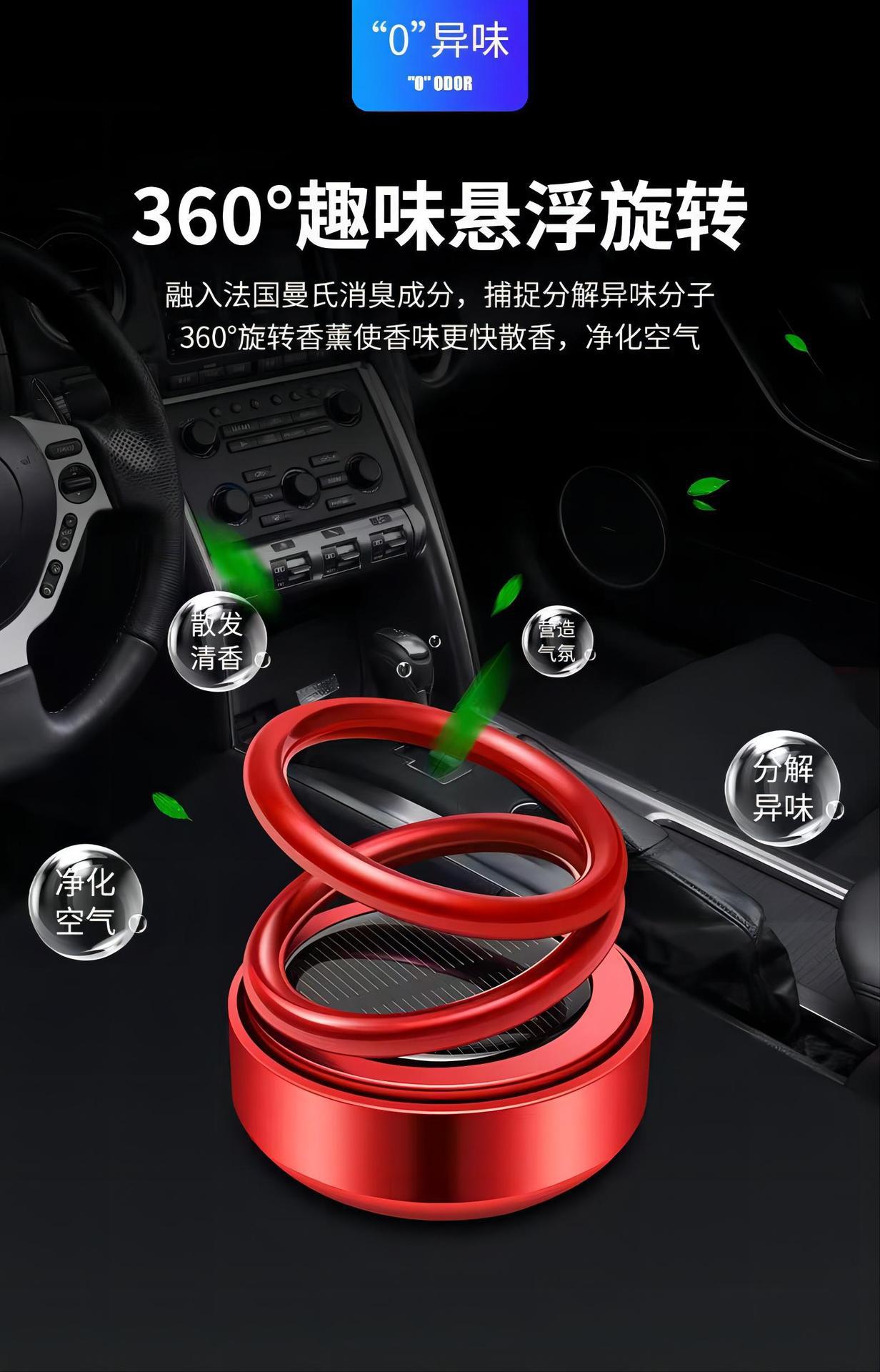 汽车车载悬浮旋转双环香薰太阳能香薰车载饰品摆件香水高端典雅品