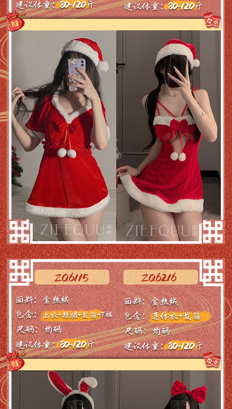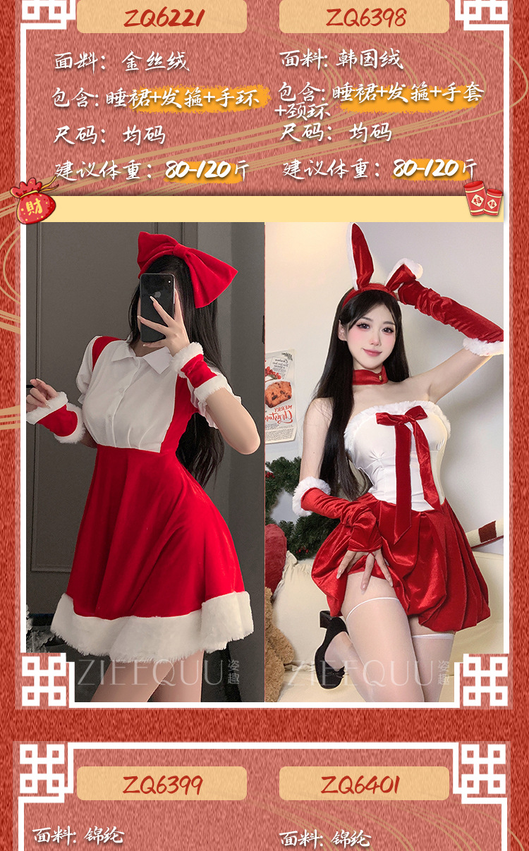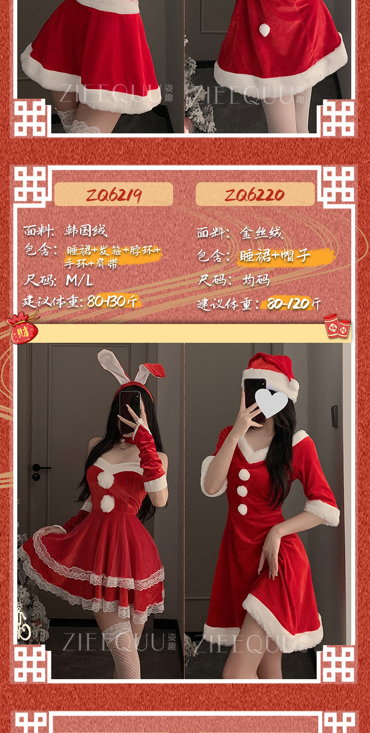 姿趣情趣内衣性感圣诞兔女郎制服诱惑激情元旦套装新年战袍短外袍
