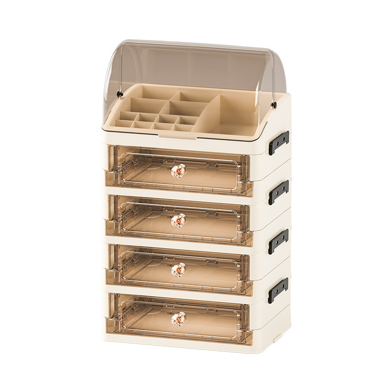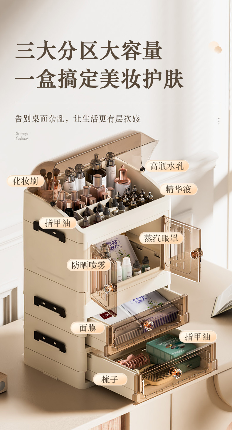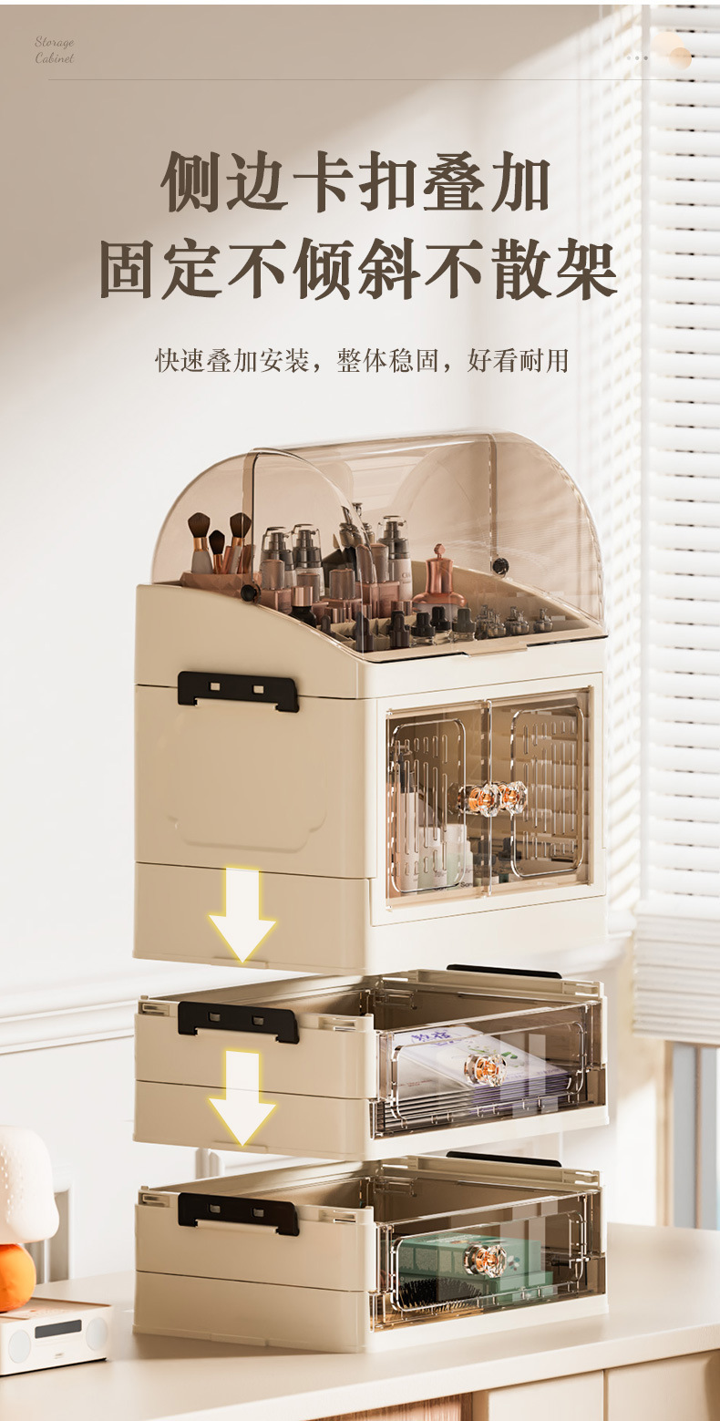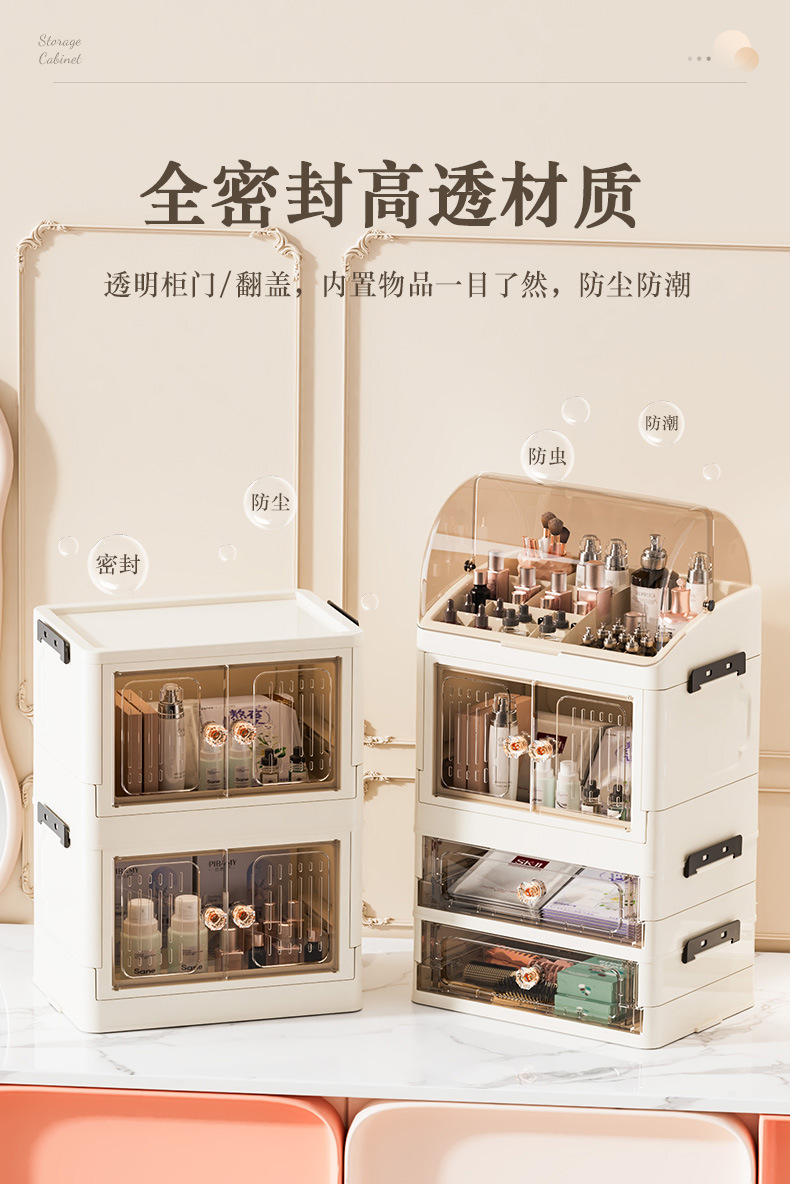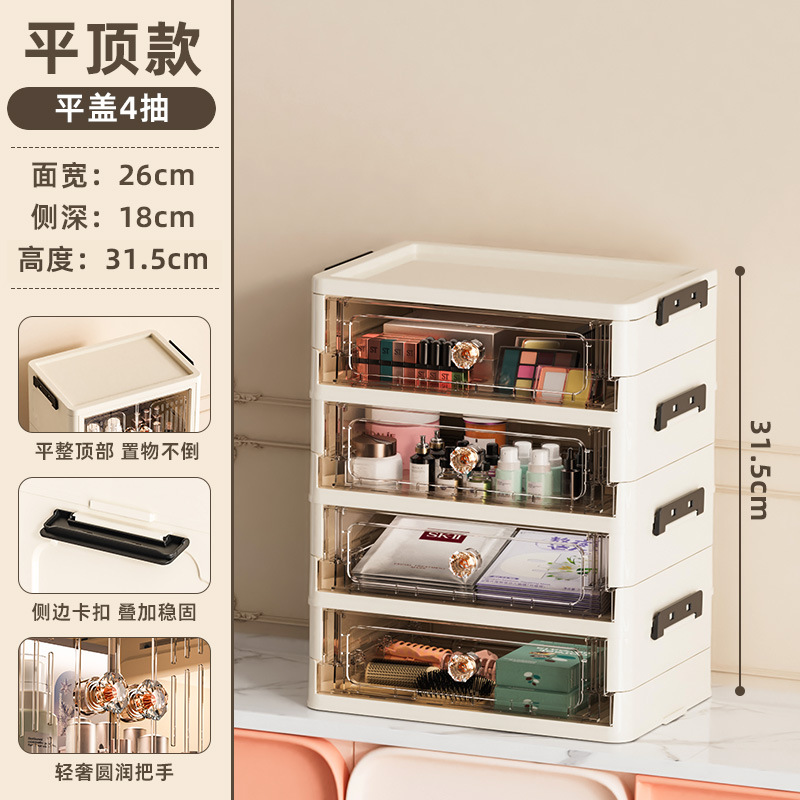折叠透明抽屉式收纳盒化妆品面膜收纳柜盒子桌面梳妆台防尘置物架