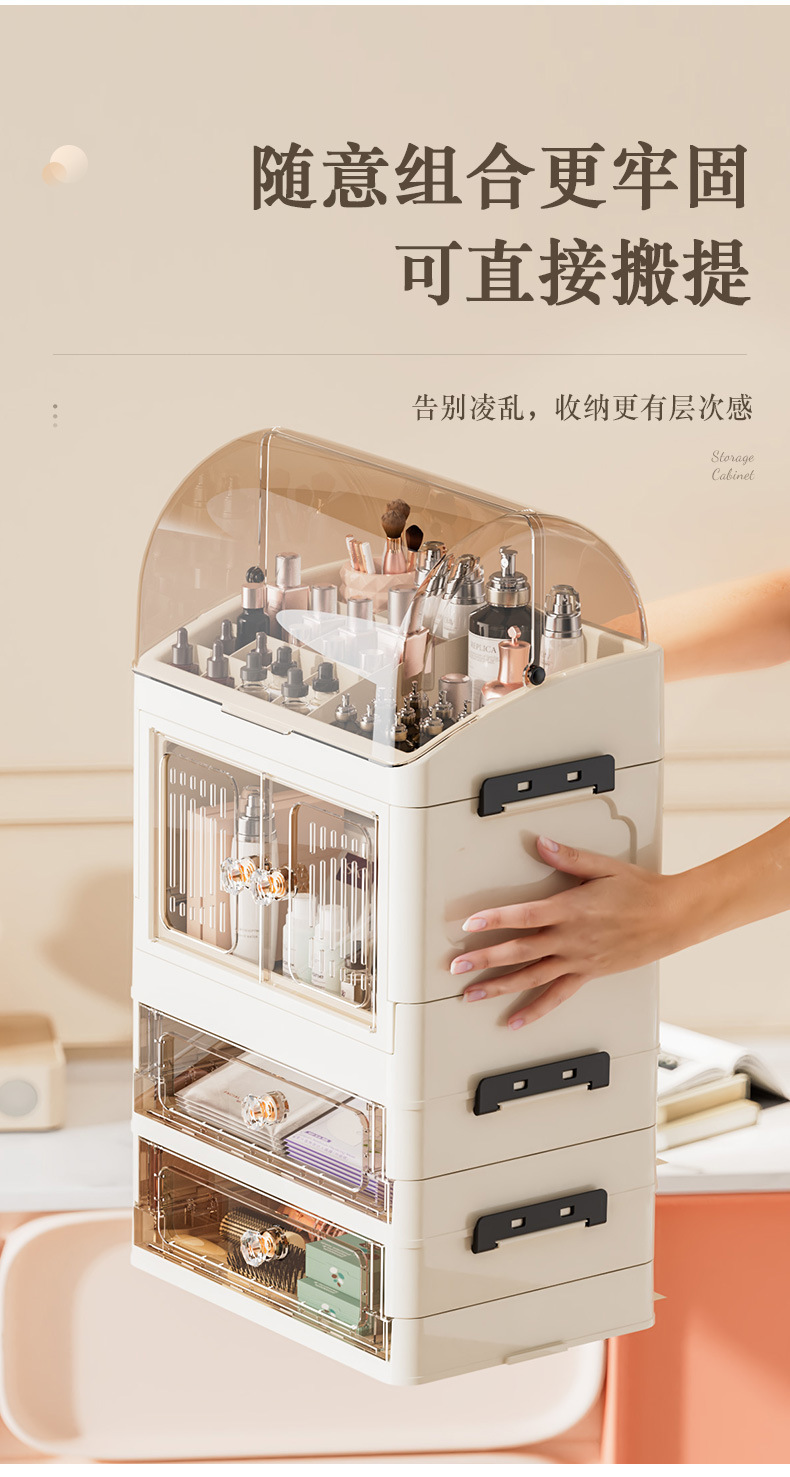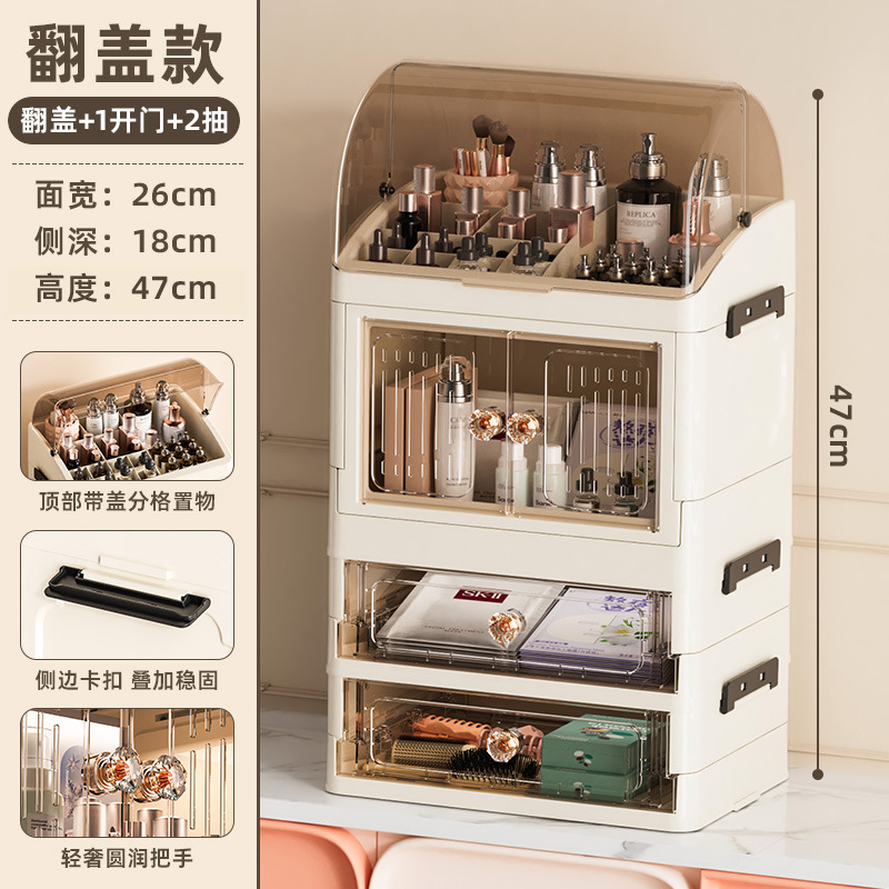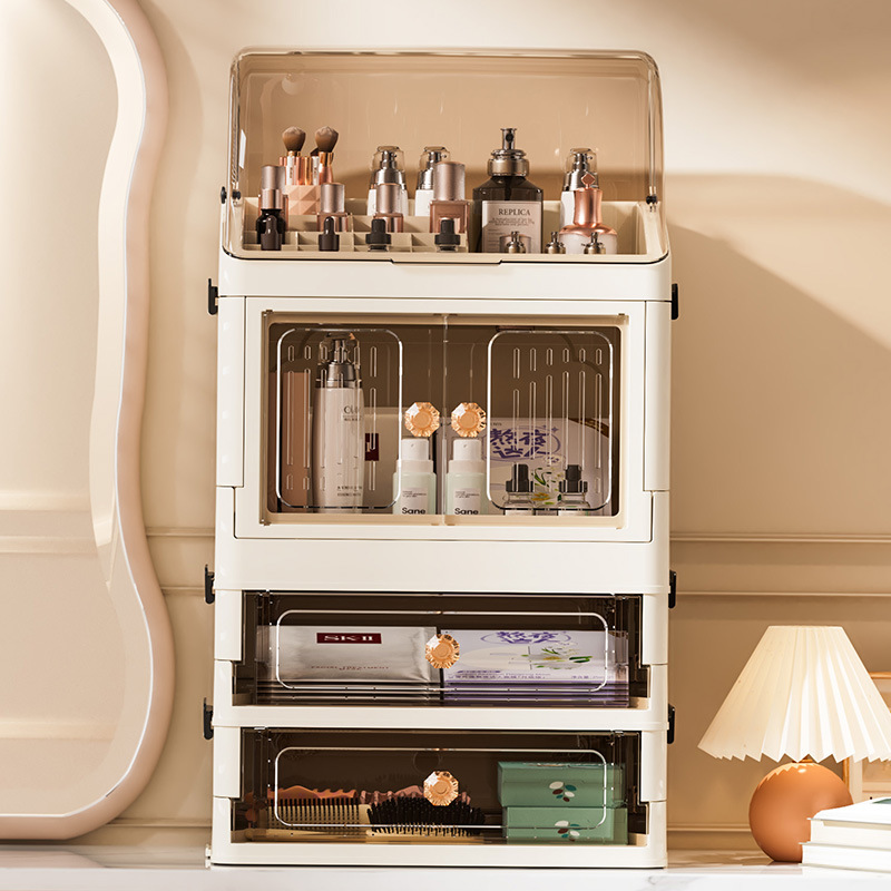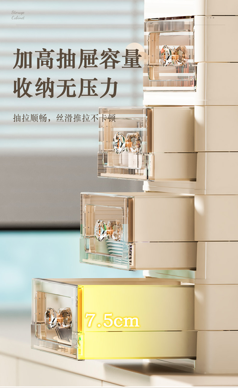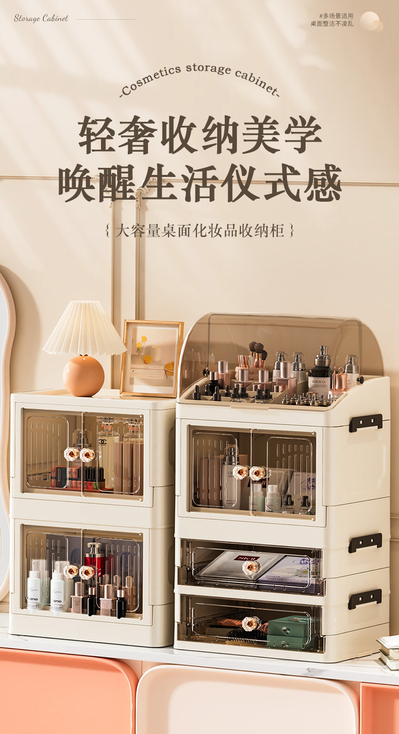 折叠透明抽屉式收纳盒化妆品面膜收纳柜盒子桌面梳妆台防尘置物架