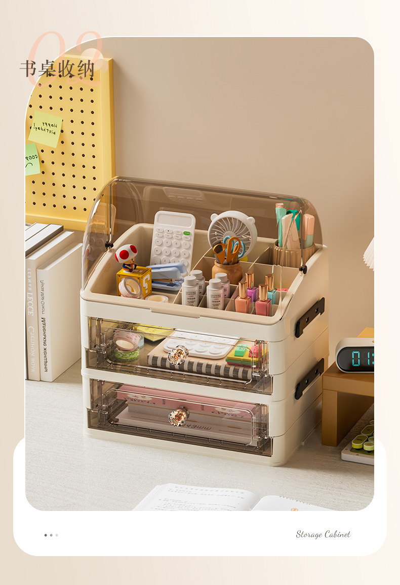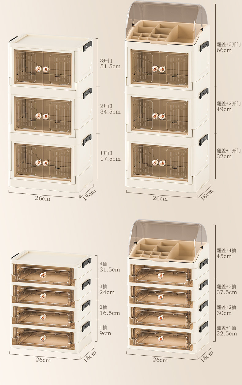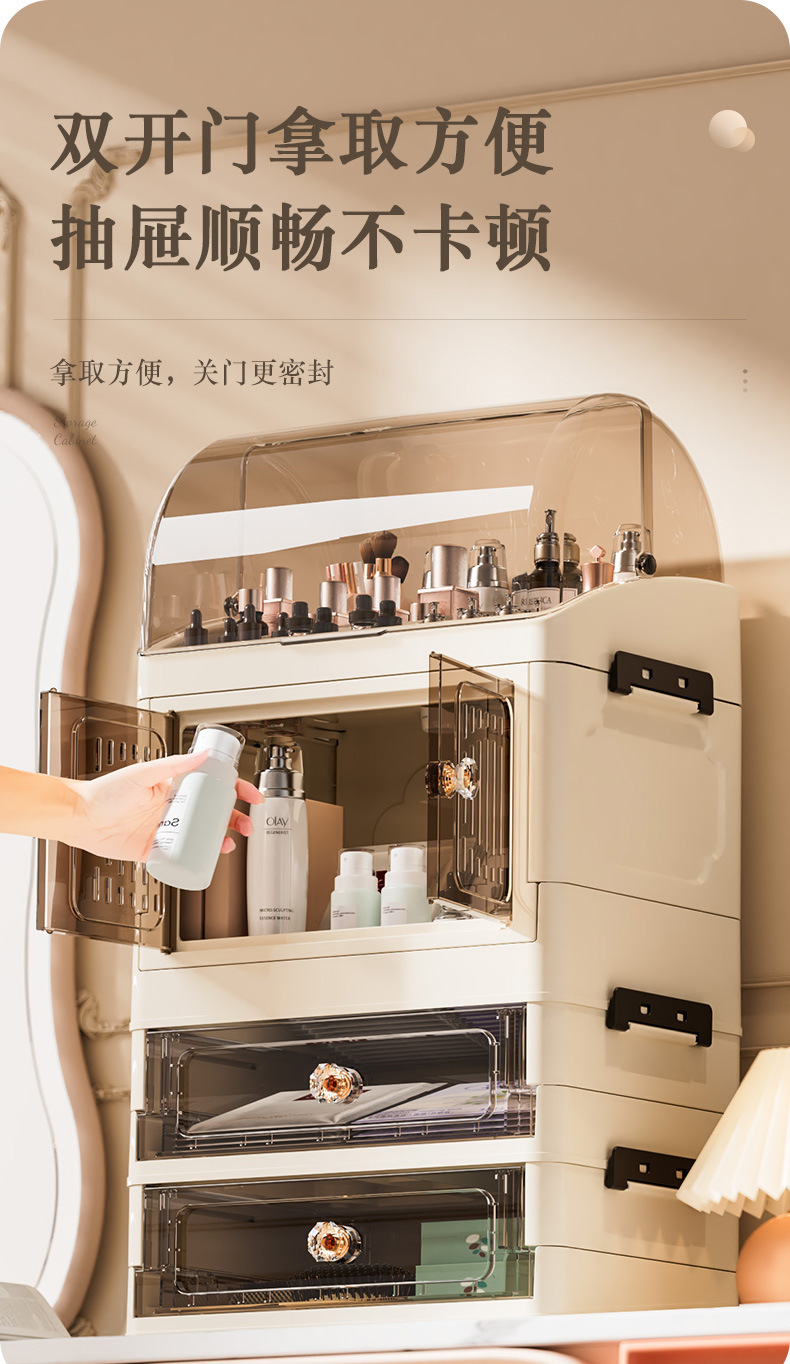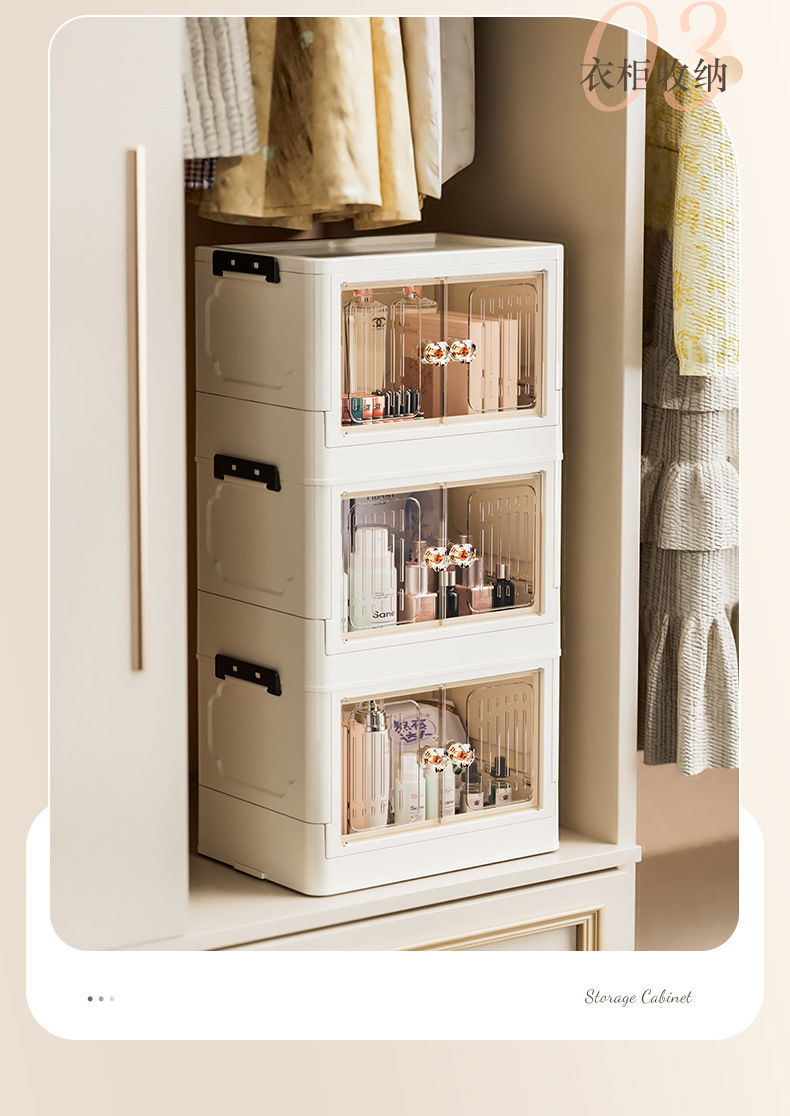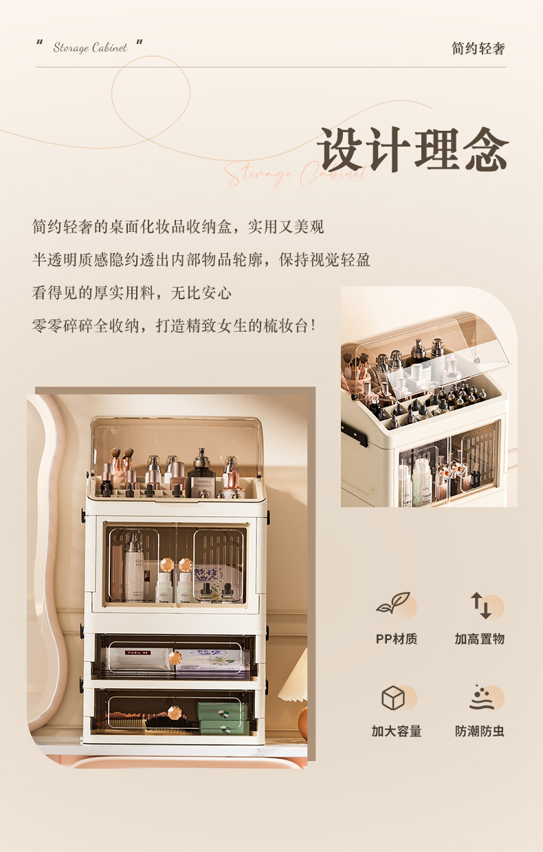 折叠透明抽屉式收纳盒化妆品面膜收纳柜盒子桌面梳妆台防尘置物架
