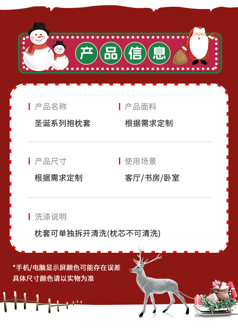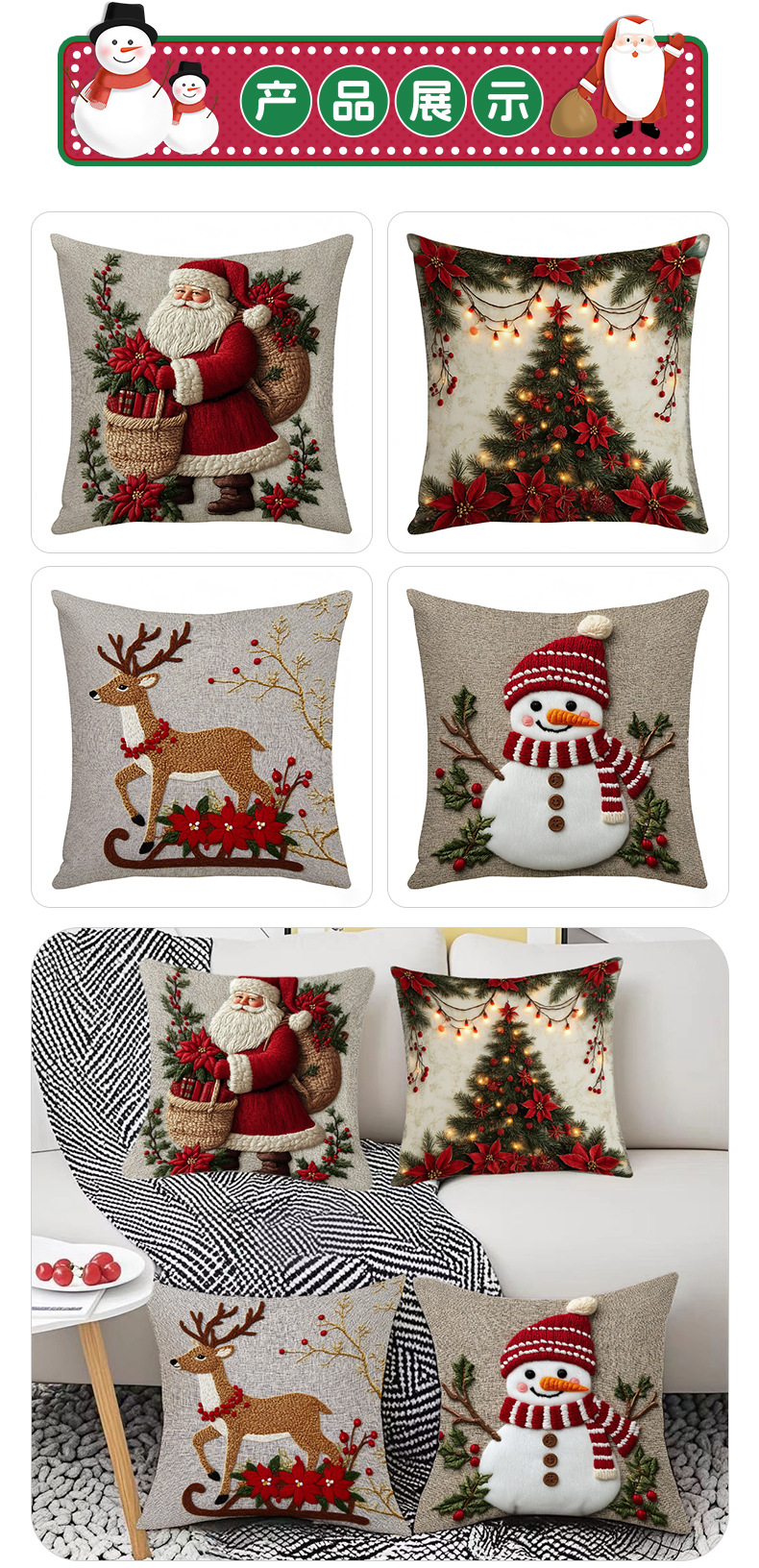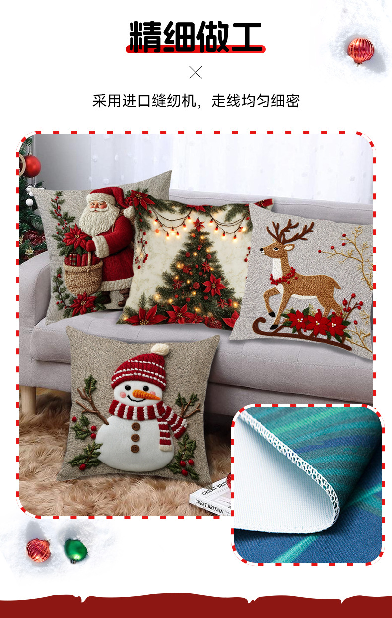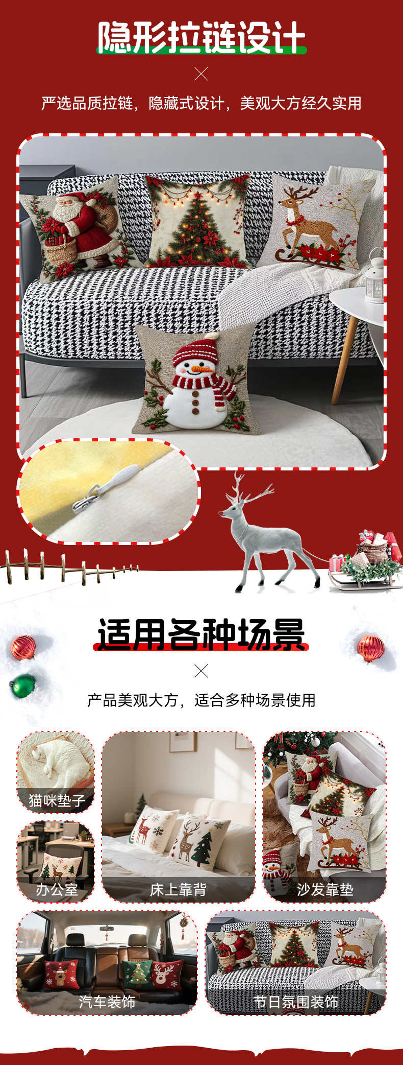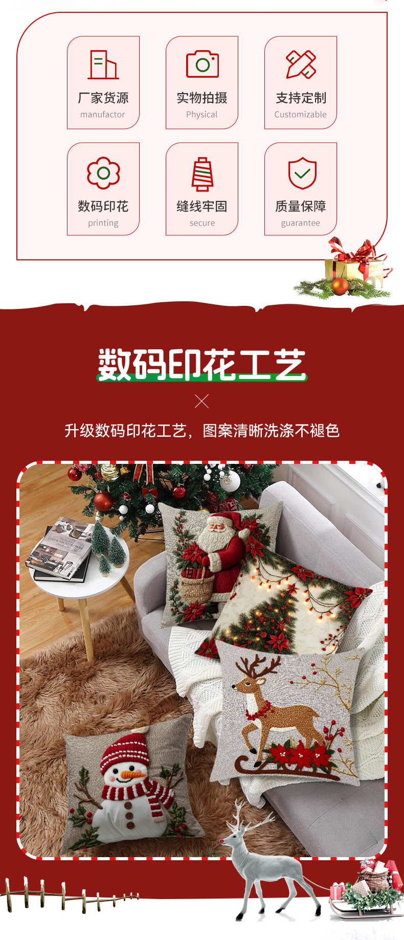 毛绒卡通雪人圣诞老人麋鹿立体抱枕套圣诞节装饰沙发靠枕靠枕套
