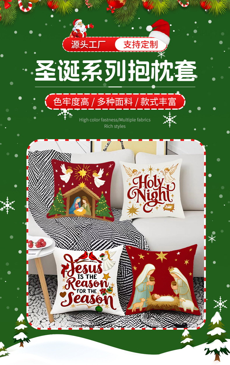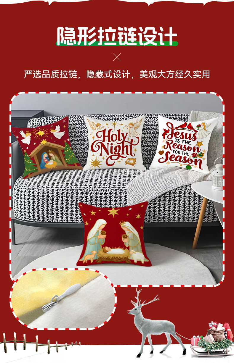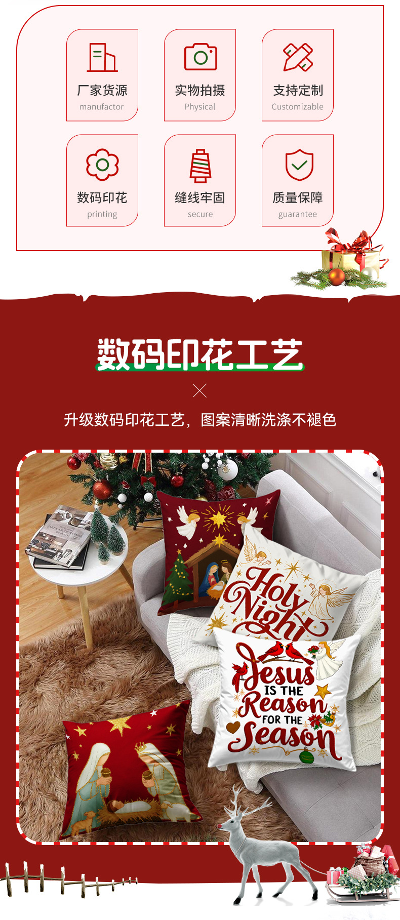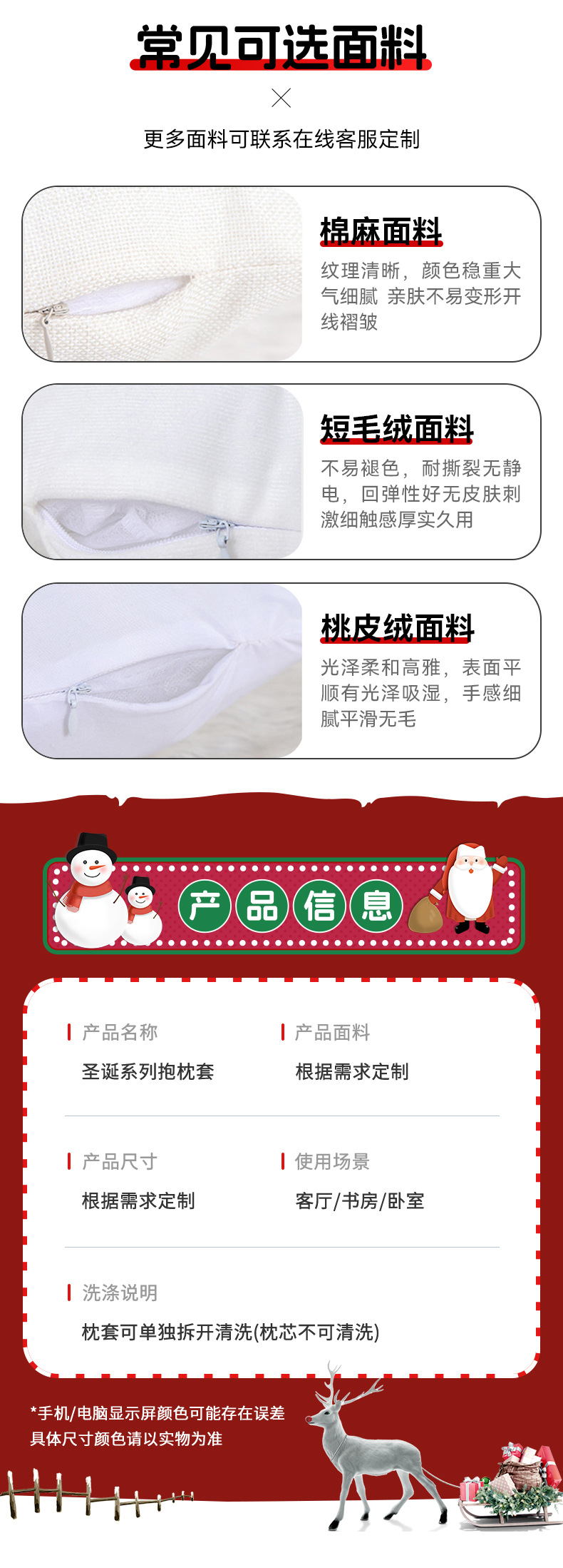 跨境聚家新款圣诞节节日氛围亚麻卡通印花客厅卧室靠枕套数码印花