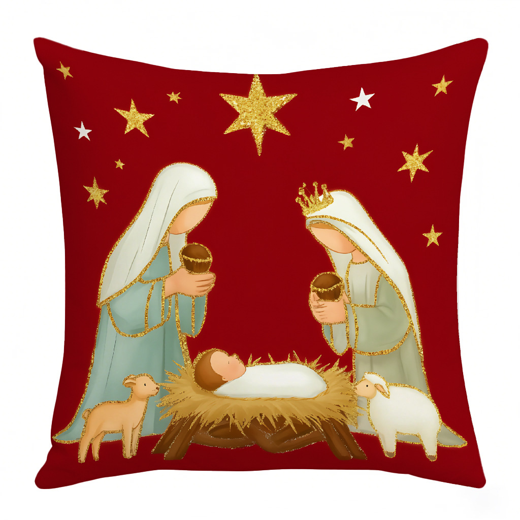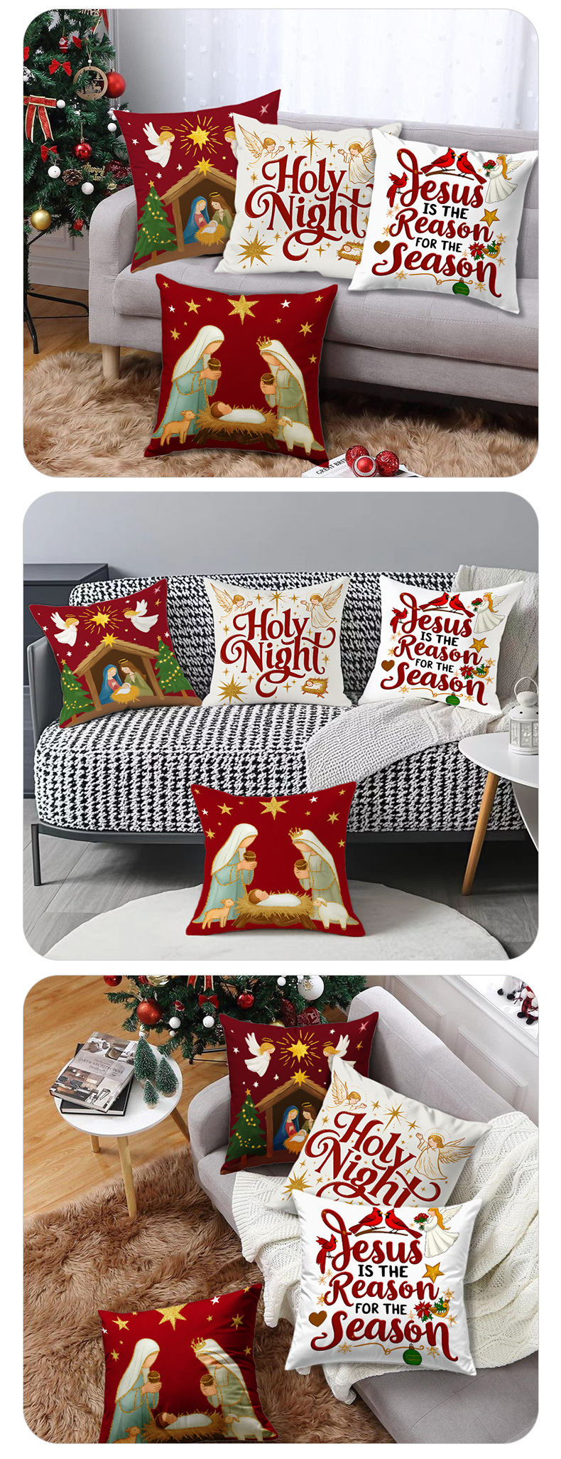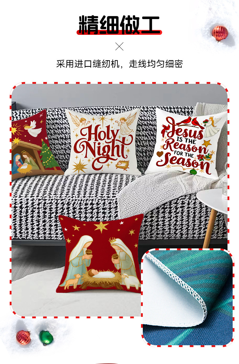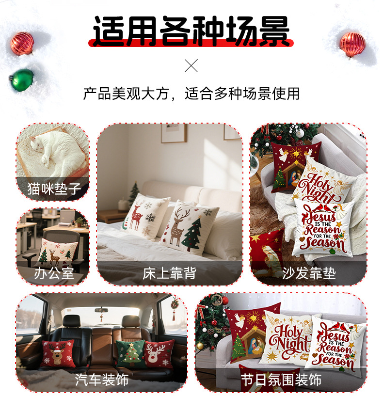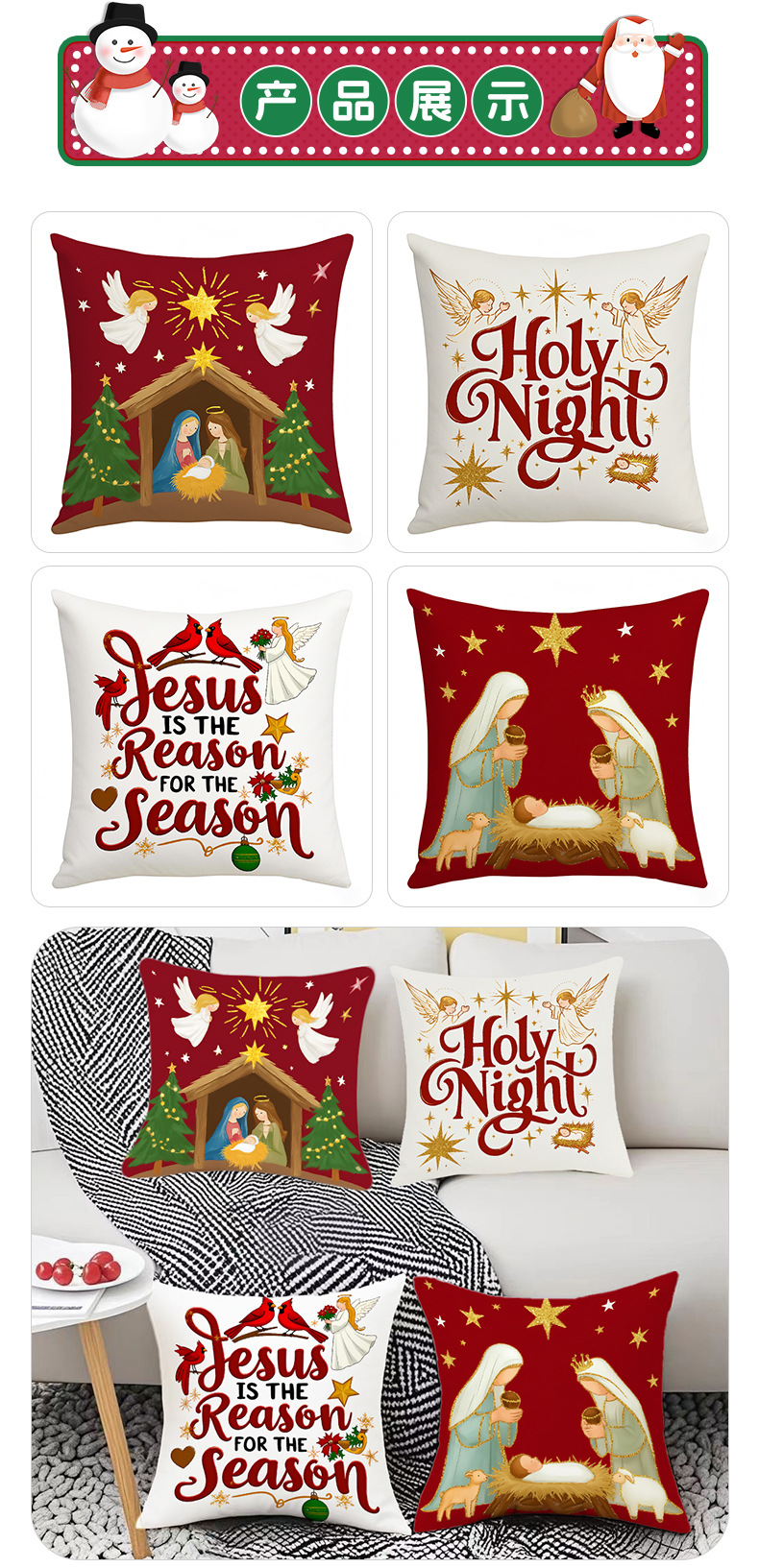 跨境聚家新款圣诞节节日氛围亚麻卡通印花客厅卧室靠枕套数码印花