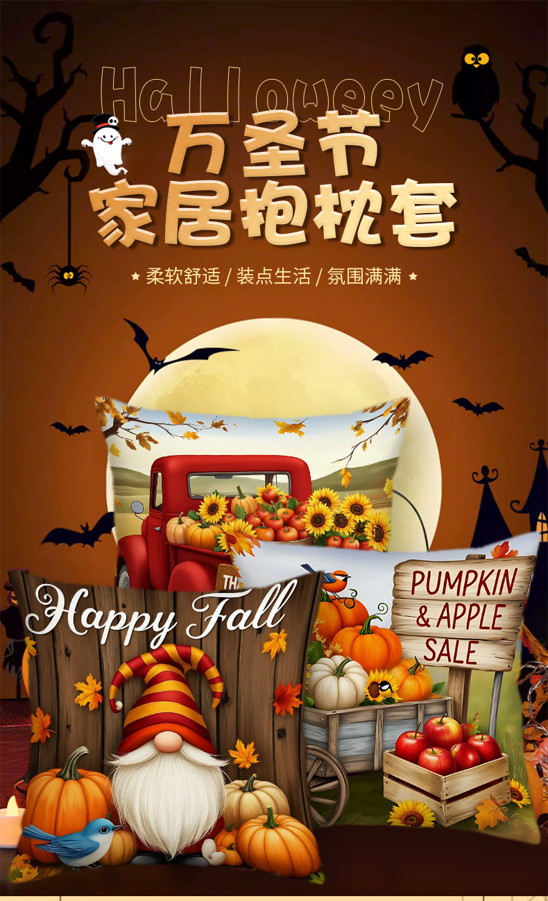 亚马逊万圣夜派对搞怪抱枕套家居靠垫套客厅沙发抱枕床头靠枕套