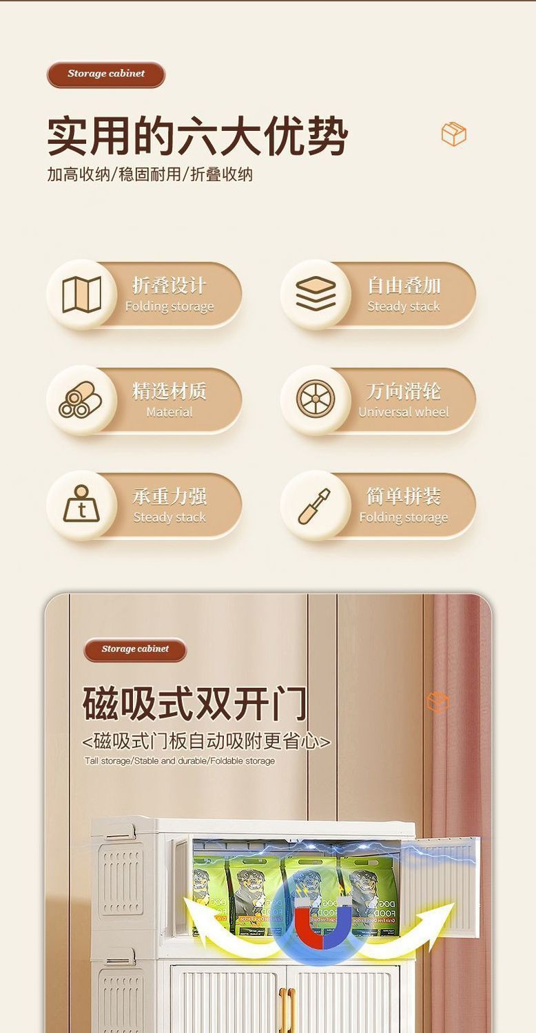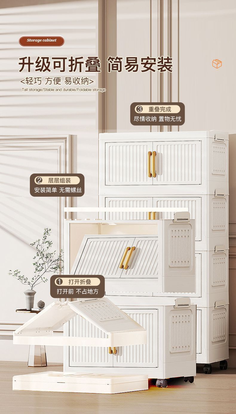 免安装衣物零食收纳柜折叠收纳柜子塑料多层储物柜卧室客厅置物柜
