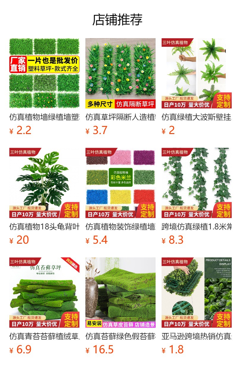 亚马逊植物墙 仿真绿植7叉塑料花春草 绿植饰品隔断插花园艺装饰