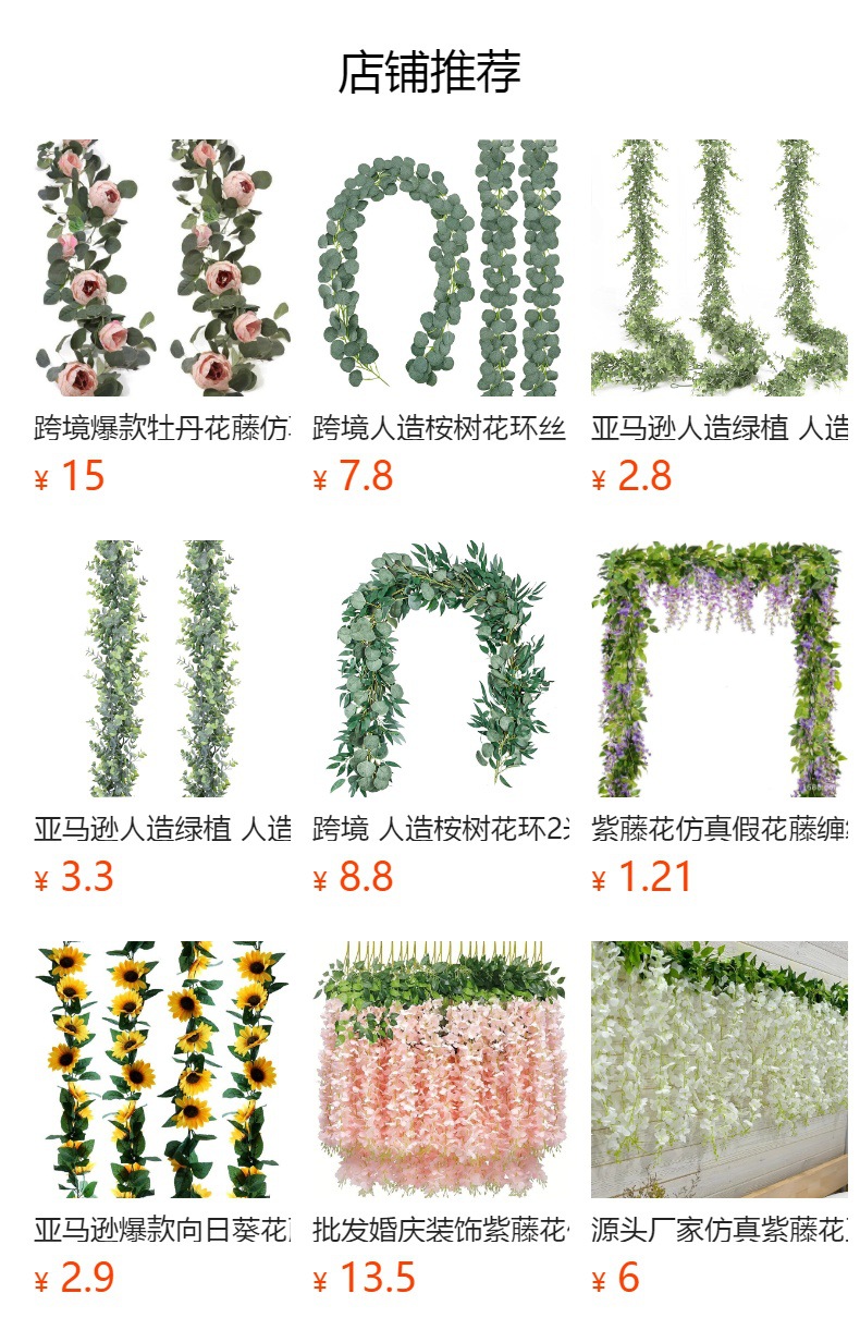 跨境热销仿真玫瑰花藤拱门装饰假花藤条藤蔓空调管道遮挡仿真藤条