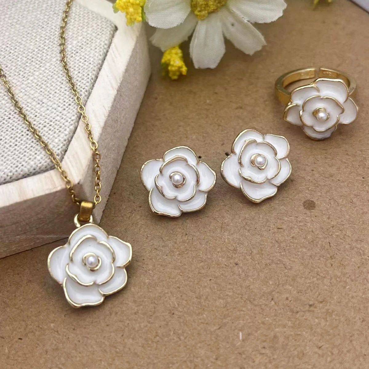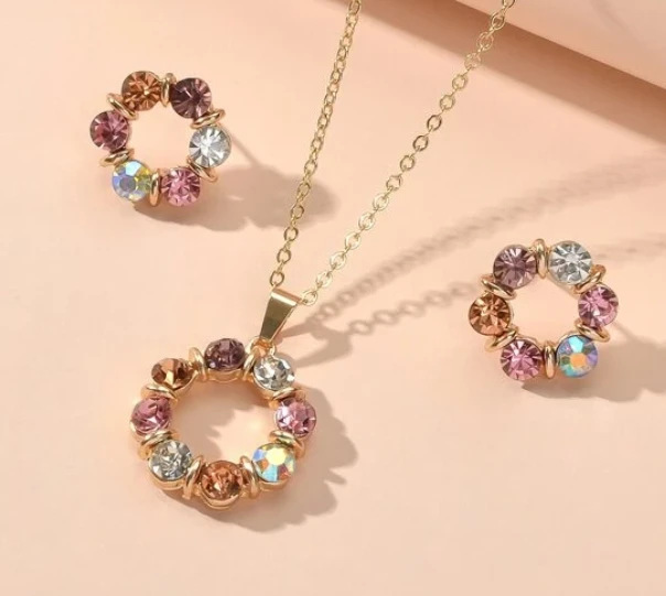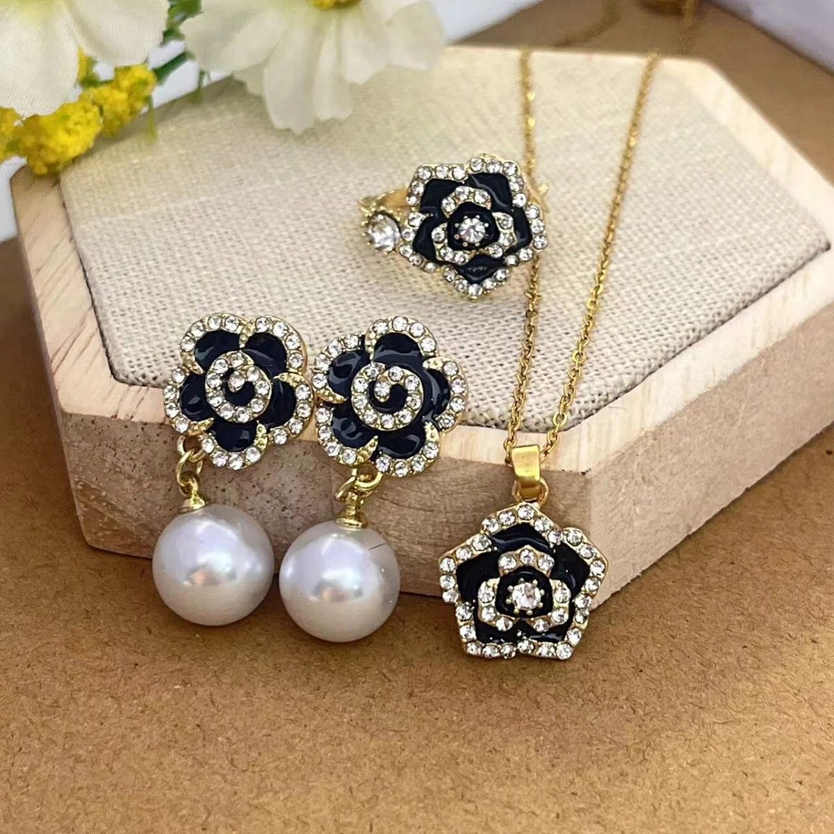 欧美爆款精美水滴手镯时尚电镀项链耳钩戒指套装外贸饰品四件套