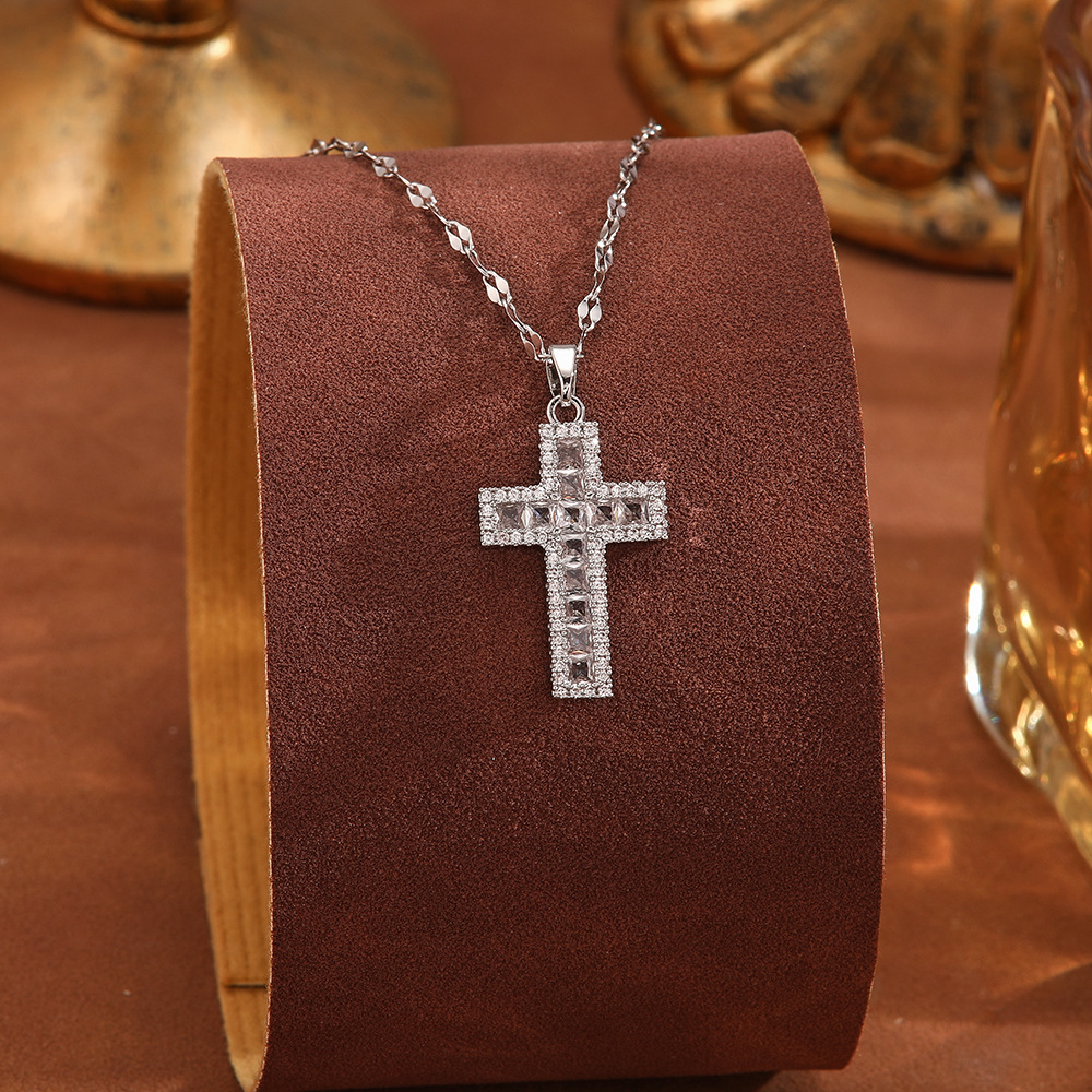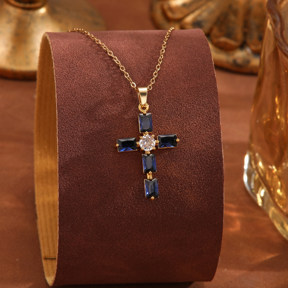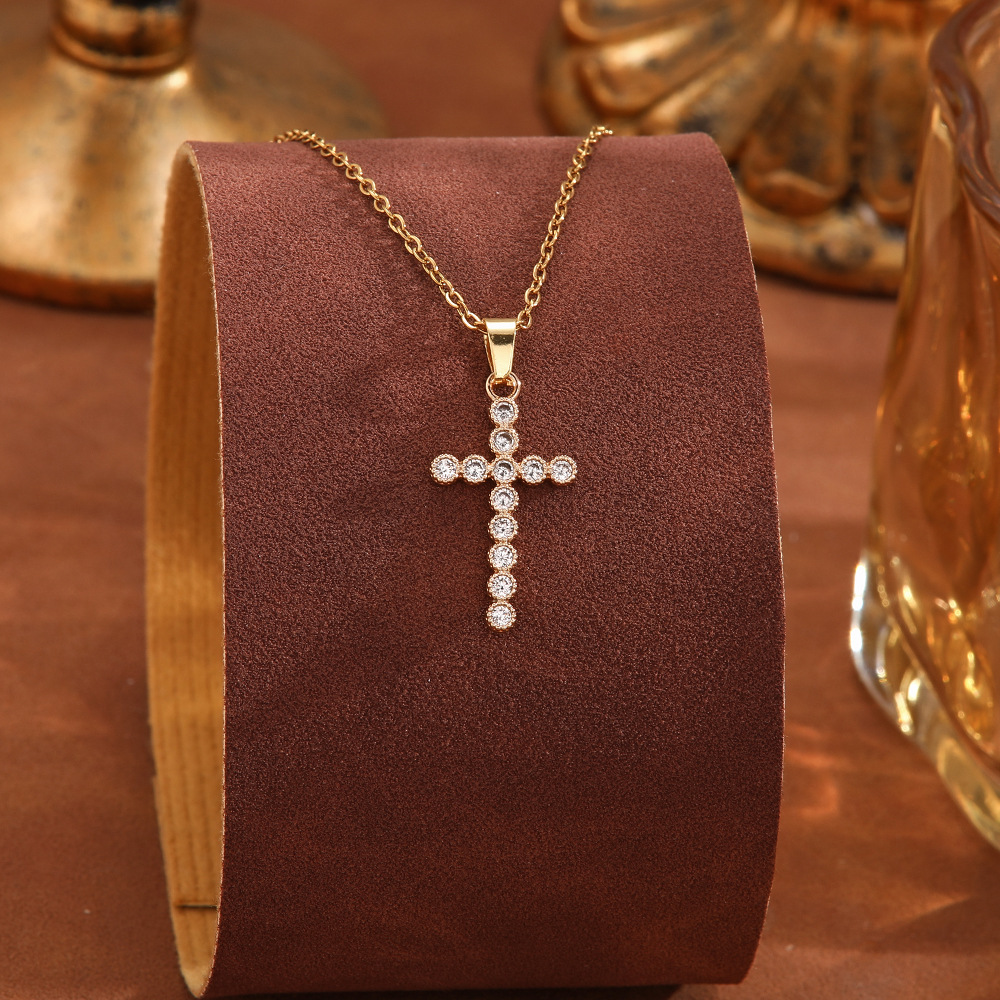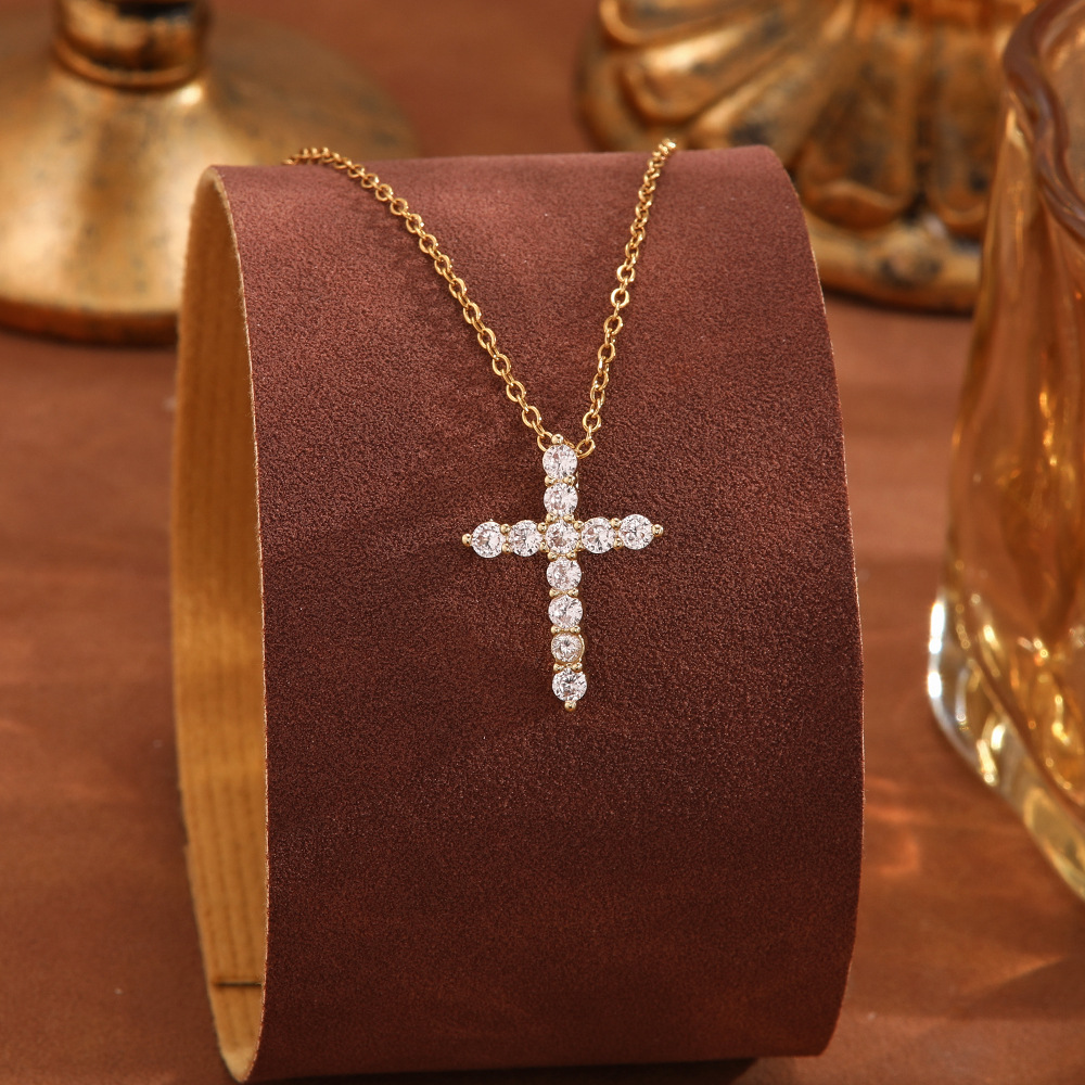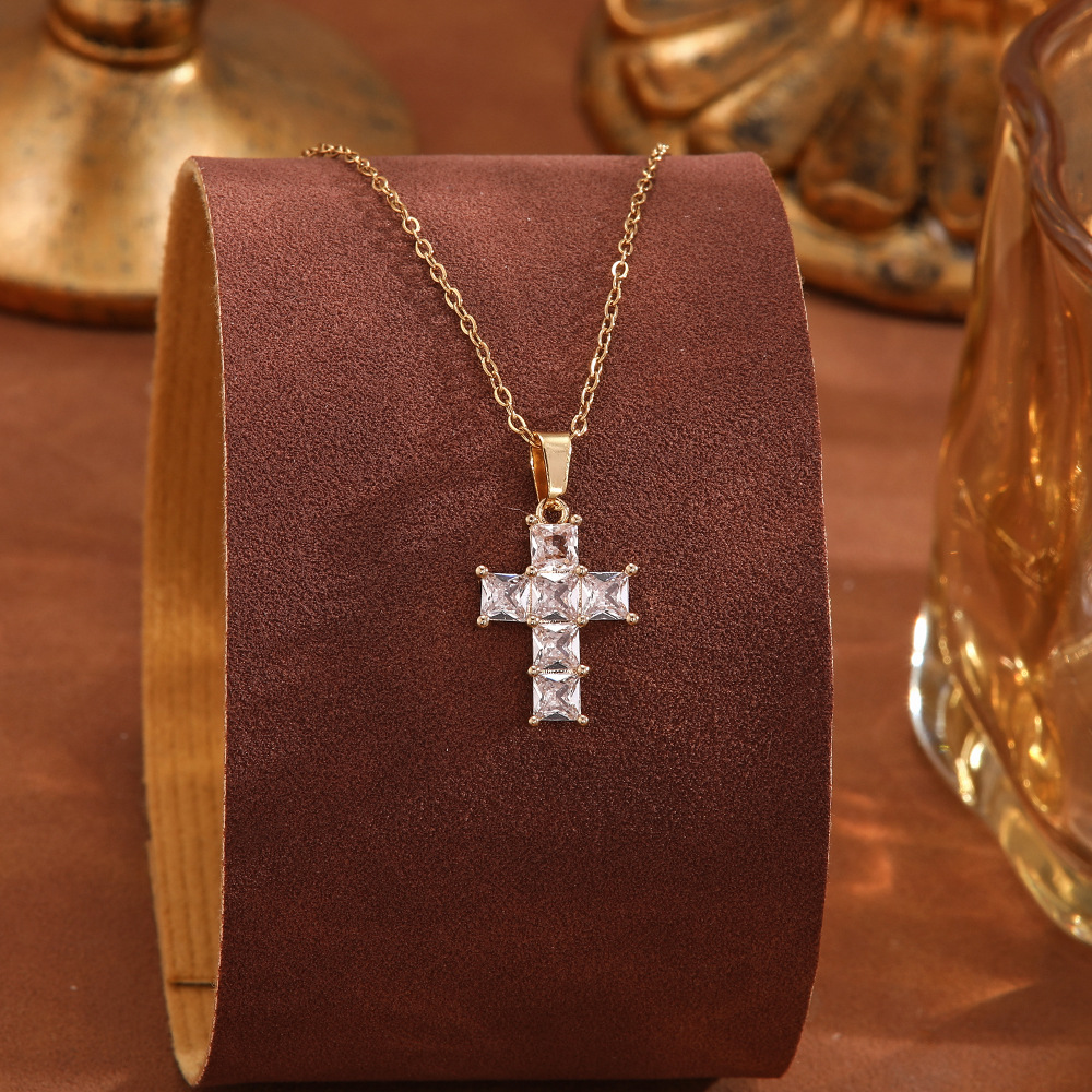 跨境锆石钛钢十字架项链锁骨链小众设计轻奢18k金吊坠项链配饰女
