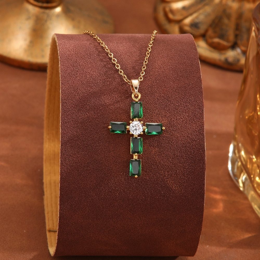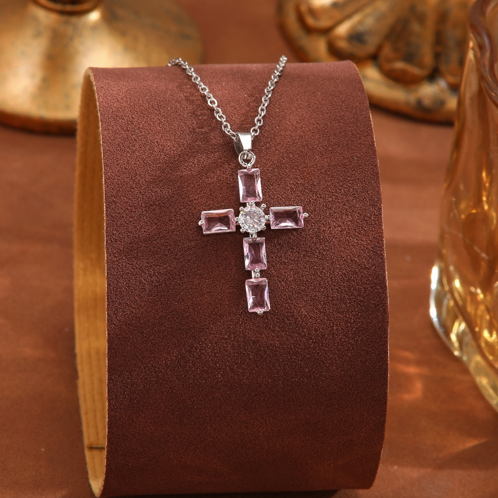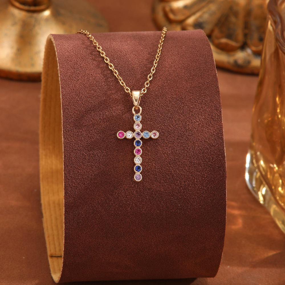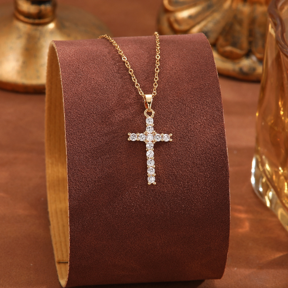 跨境锆石钛钢十字架项链锁骨链小众设计轻奢18k金吊坠项链配饰女
