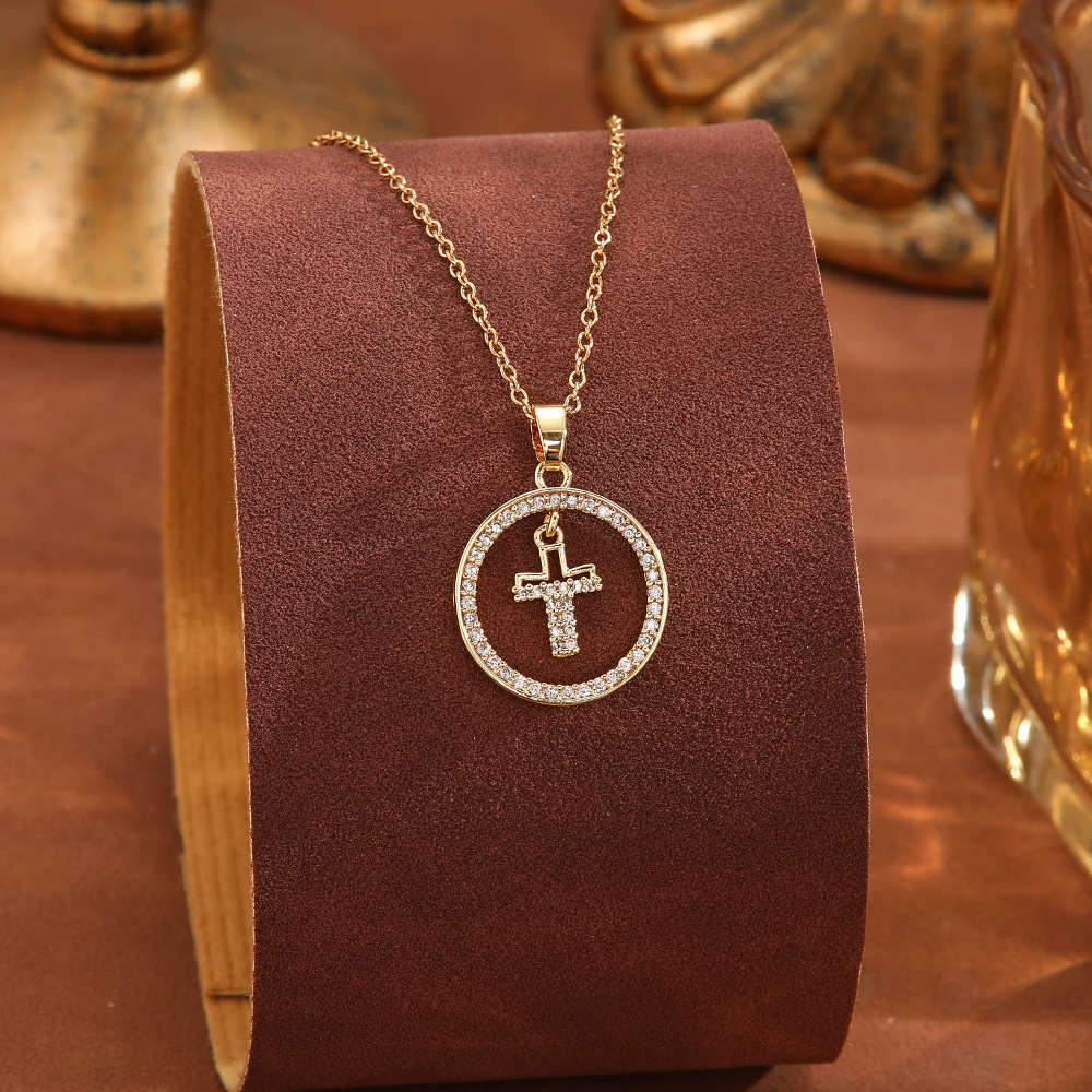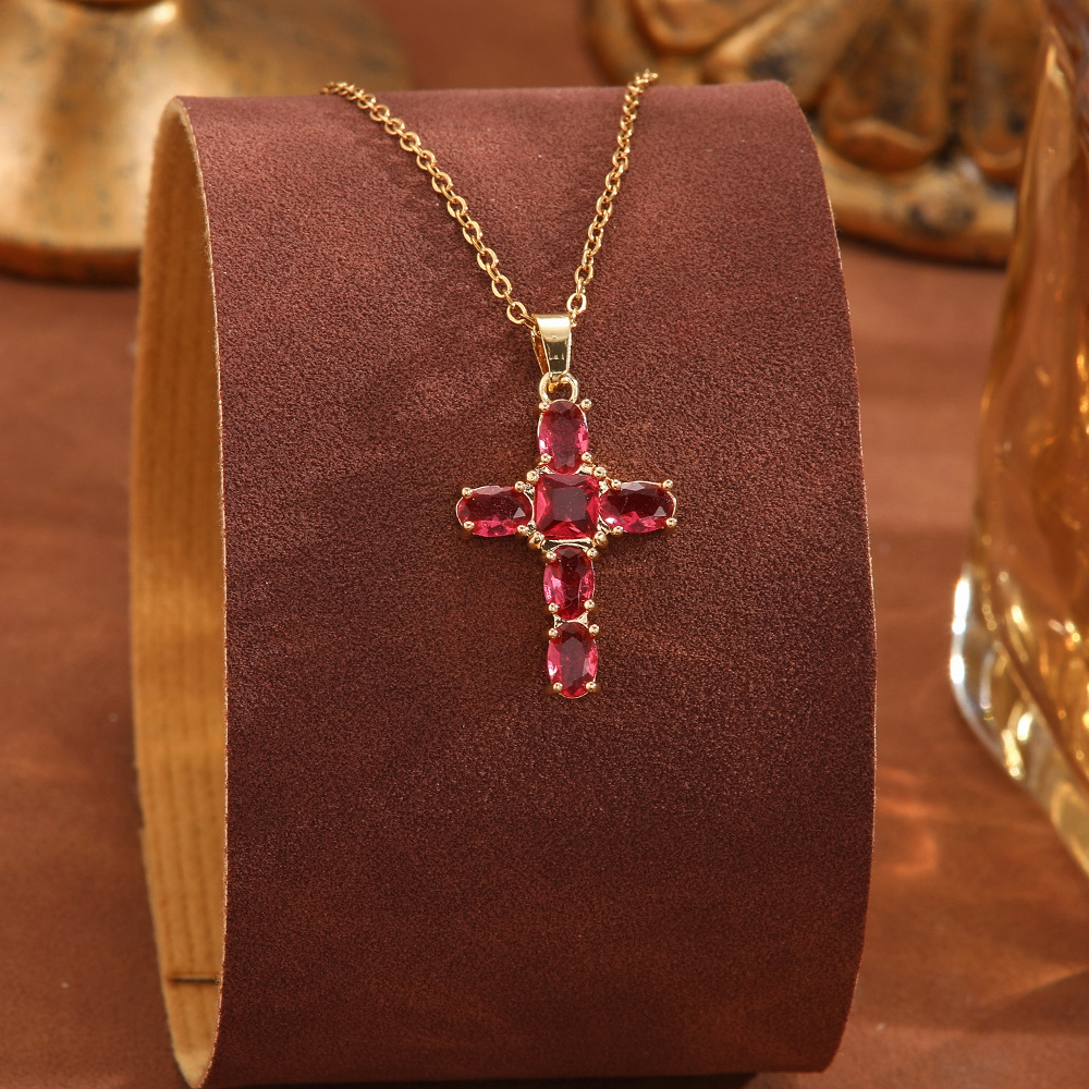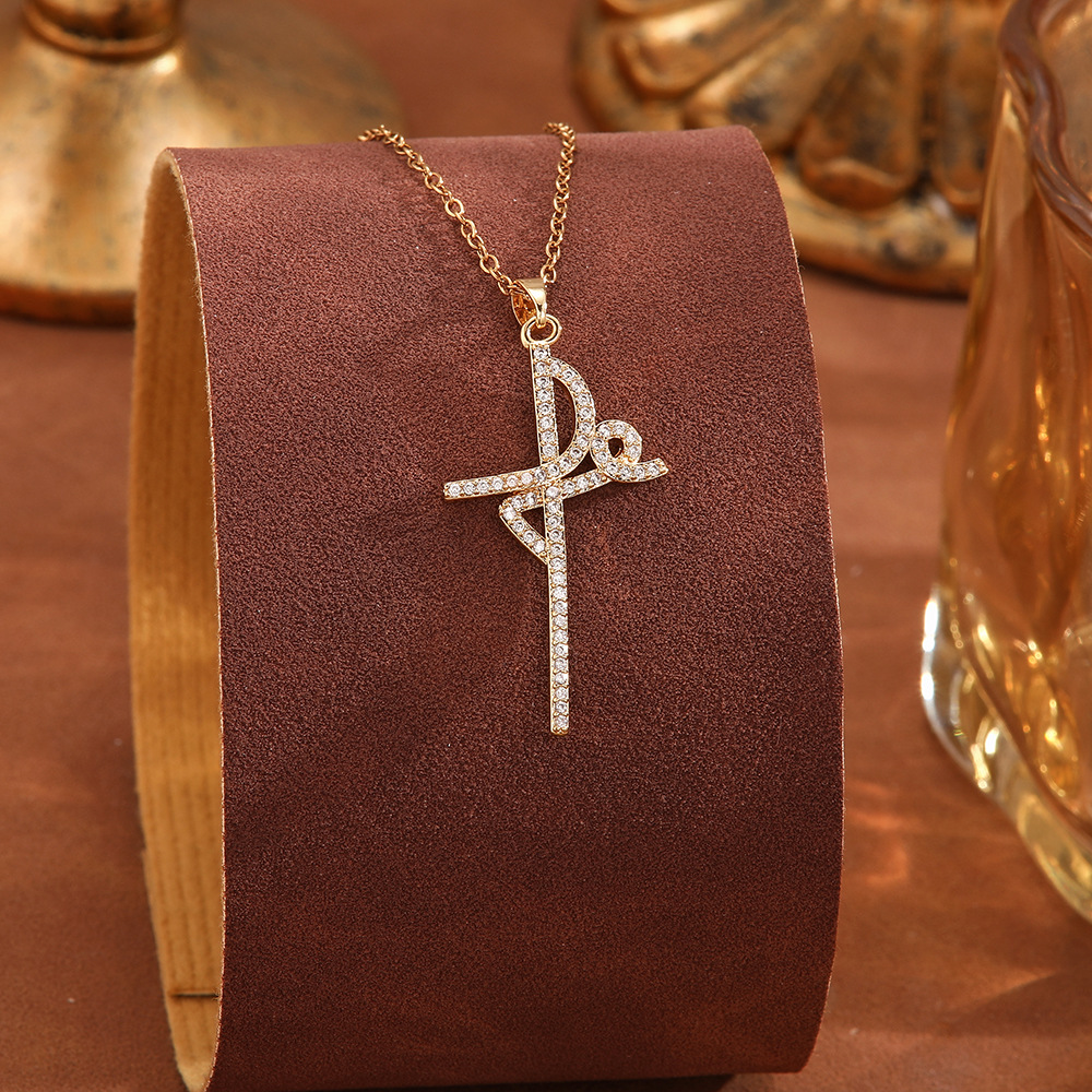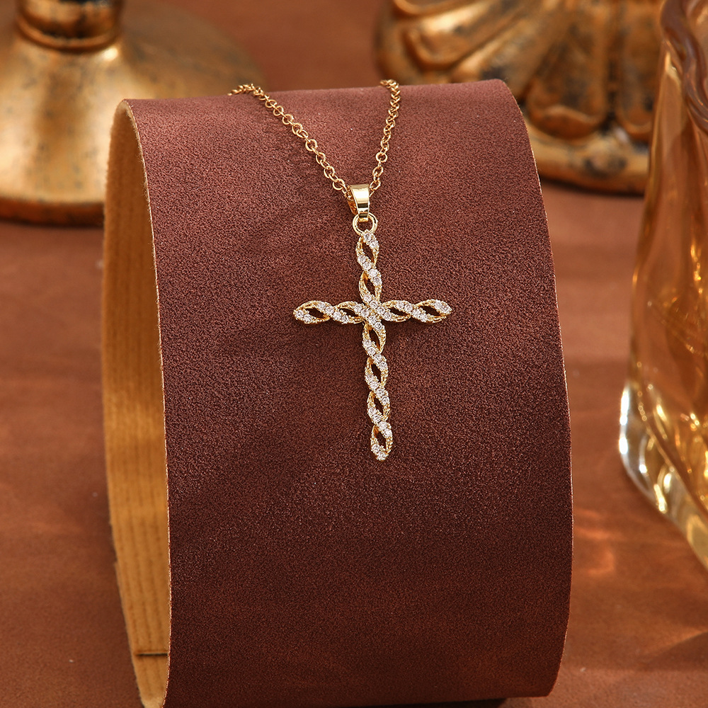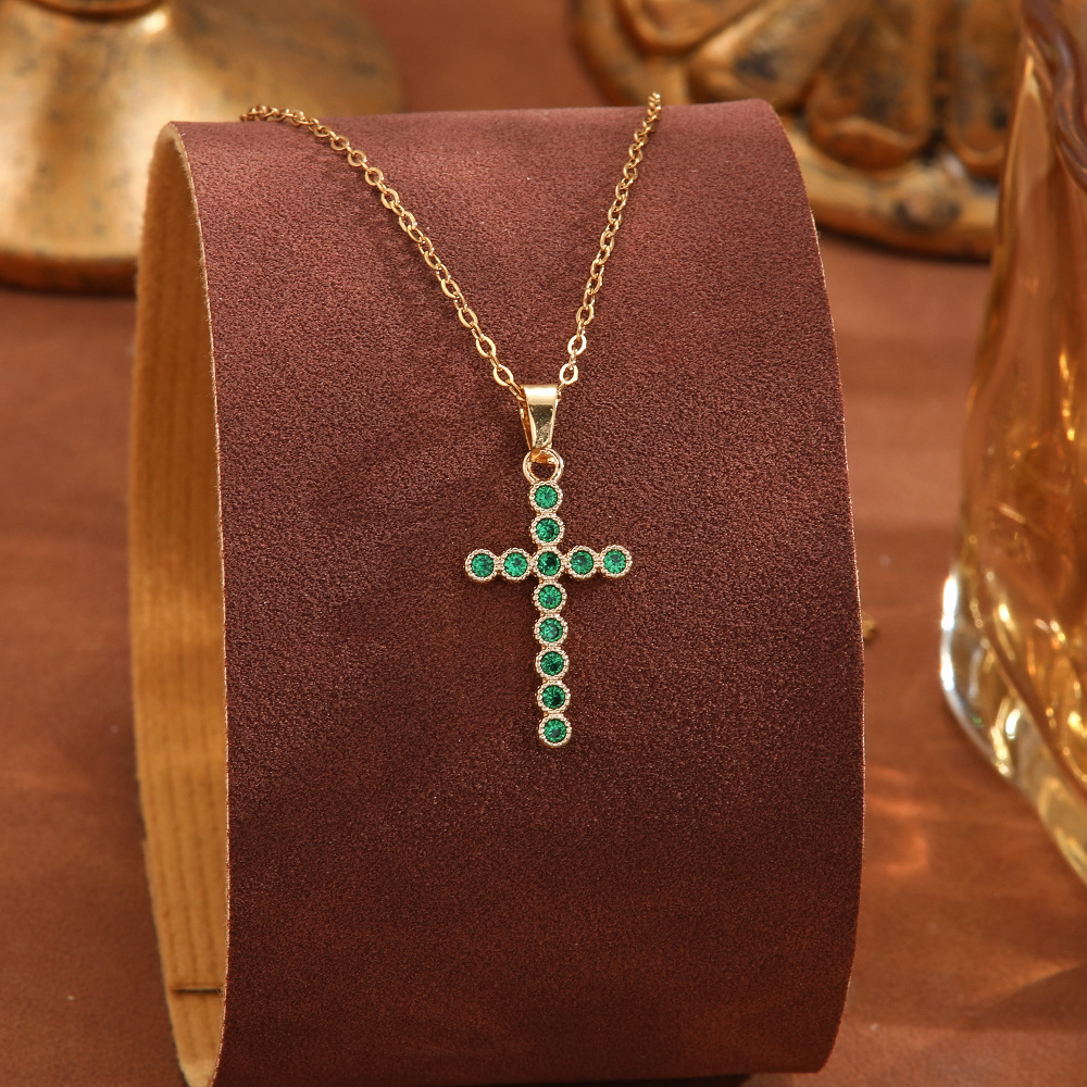 跨境锆石钛钢十字架项链锁骨链小众设计轻奢18k金吊坠项链配饰女